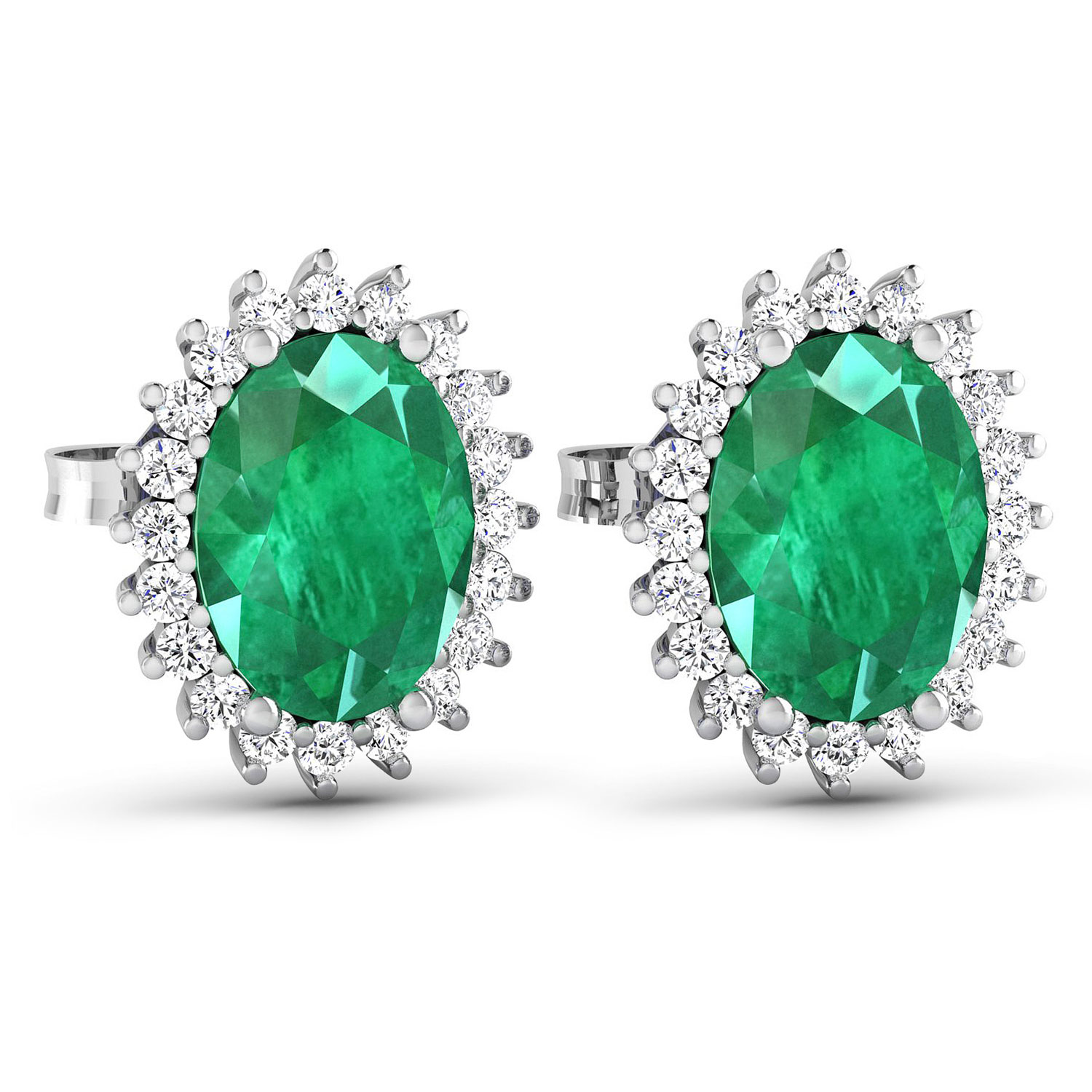 14 karat white gold 2.40 carats total weight Each emerald is over 1.00 carat! .26 carats total weight round, brilliant-cut I-J color, I2-I3 clarity diamonds in the halos. The earrings are approximately 6/16" in diameter and attach to the earlobe with posts and friction backs. This item is eligible for appraisal by an independent appraiser (with qualifying credentials from GIA) without affiliation to Bidfair Fine Jewelry, at a discounted rate. Please contact Bidfair Fine Jewelry for more information on appraisals. This is a brand new item, with approved from the manufacturer for sale to the public, by auction. It is in excellent condition, but may have fine scratches from shipping or transportation. Admin: Q741/27gge