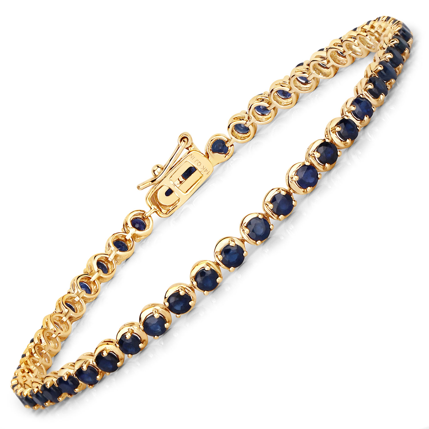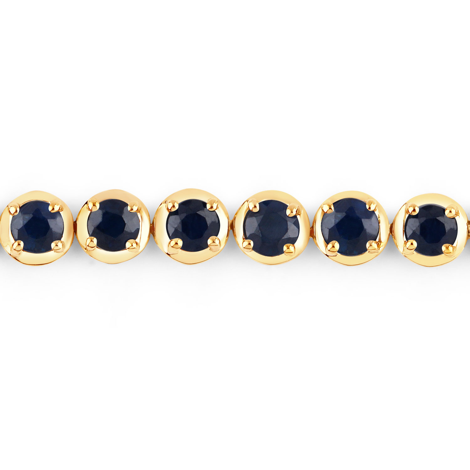 This is a dainty looking bracelet, but don’t be fooled! It is stronger than it looks, and heavier at nearly 6 grams. It is made in 14 karat yellow gold and set with 3.26 carats total weight of round, faceted, prong-set, genuine, midnight blue sapphires. Each sapphire is on individually hinged links. The bracelet is approximately 3.5mm wide and 7" long with a hidden box clasp and safety clip. This bracelet can be shortened, if needed. Please contact Bidfair Fine Jewelry for details. This item is eligible for appraisal by an independent appraiser (with qualifying credentials from GIA) without affiliation to Bidfair Fine Jewelry, at a discounted rate. Please contact Bidfair Fine Jewelry for more information on appraisals. This is a brand new item, with approved from the manufacturer for sale to the public, by auction. It is in excellent condition, but may have fine scratches from shipping or transportation. Admin: Q741/39gil