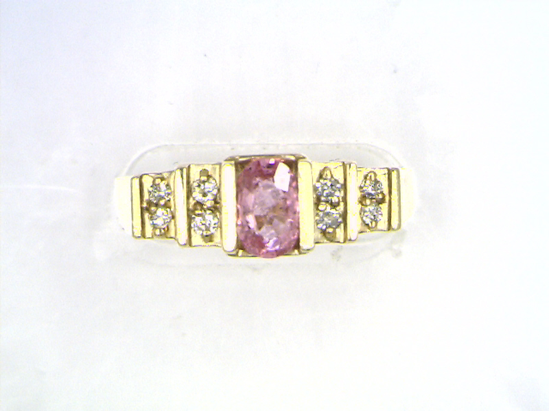 This is a 14 karat yellow gold ring that offers a tension-mounted .60 carat oval-cut, genuine pink sapphire and .16 carats of round, brilliant-cut, H-I color, SI2-I1 clarity, tension-mounted diamonds on the stepped shoulders. The ring is approximately 6.25mm wide at the top with polished shoulders that taper to the shank. The ring is US size 7.5 and can be sized for an additional charge. Additionally, it is eligible for appraisal at a discounted rate, from an independent appraiser (with qualifying credentials from GIA) with no affiliation to Bidfair Fine Jewelry. Please contact Bidfair Fine Jewelry for more information on appraisals and sizing. This is a brand new item with manufacturer’s approval to sale in a public auction. It is in excellent condition, but may have fine scratches from shipping or storage. Admin: G11241/8itt
