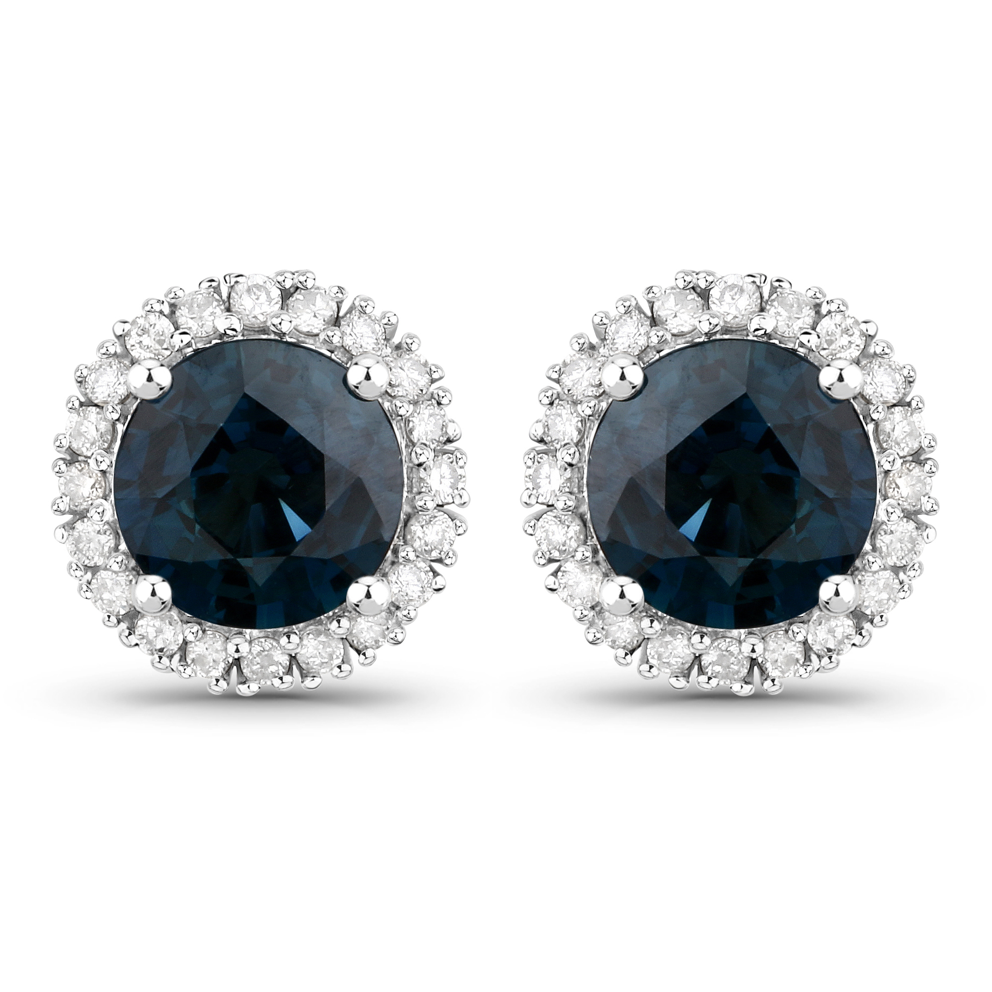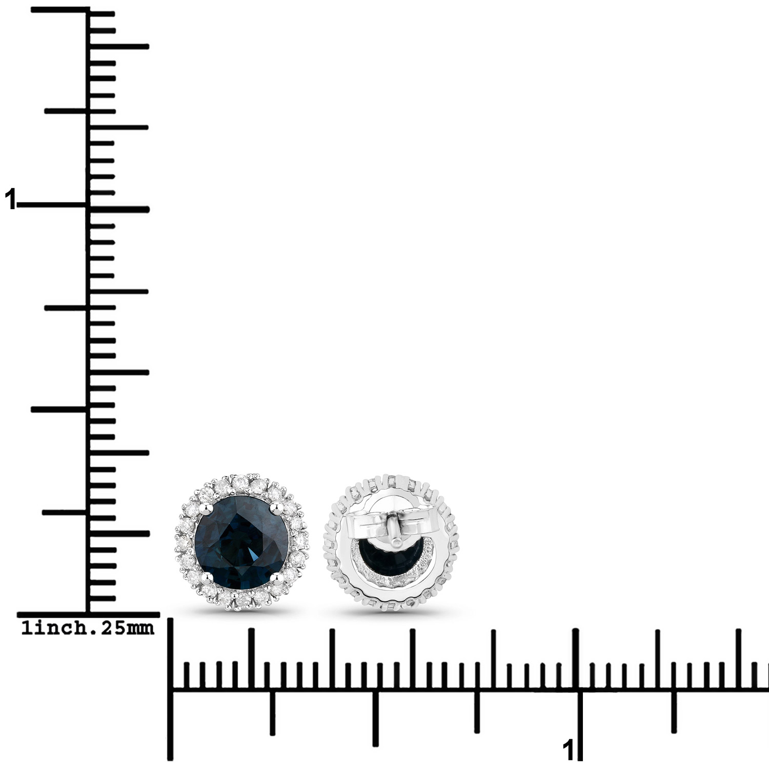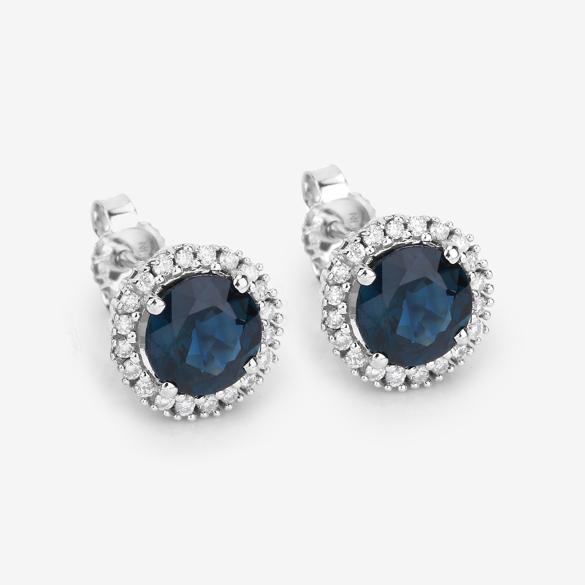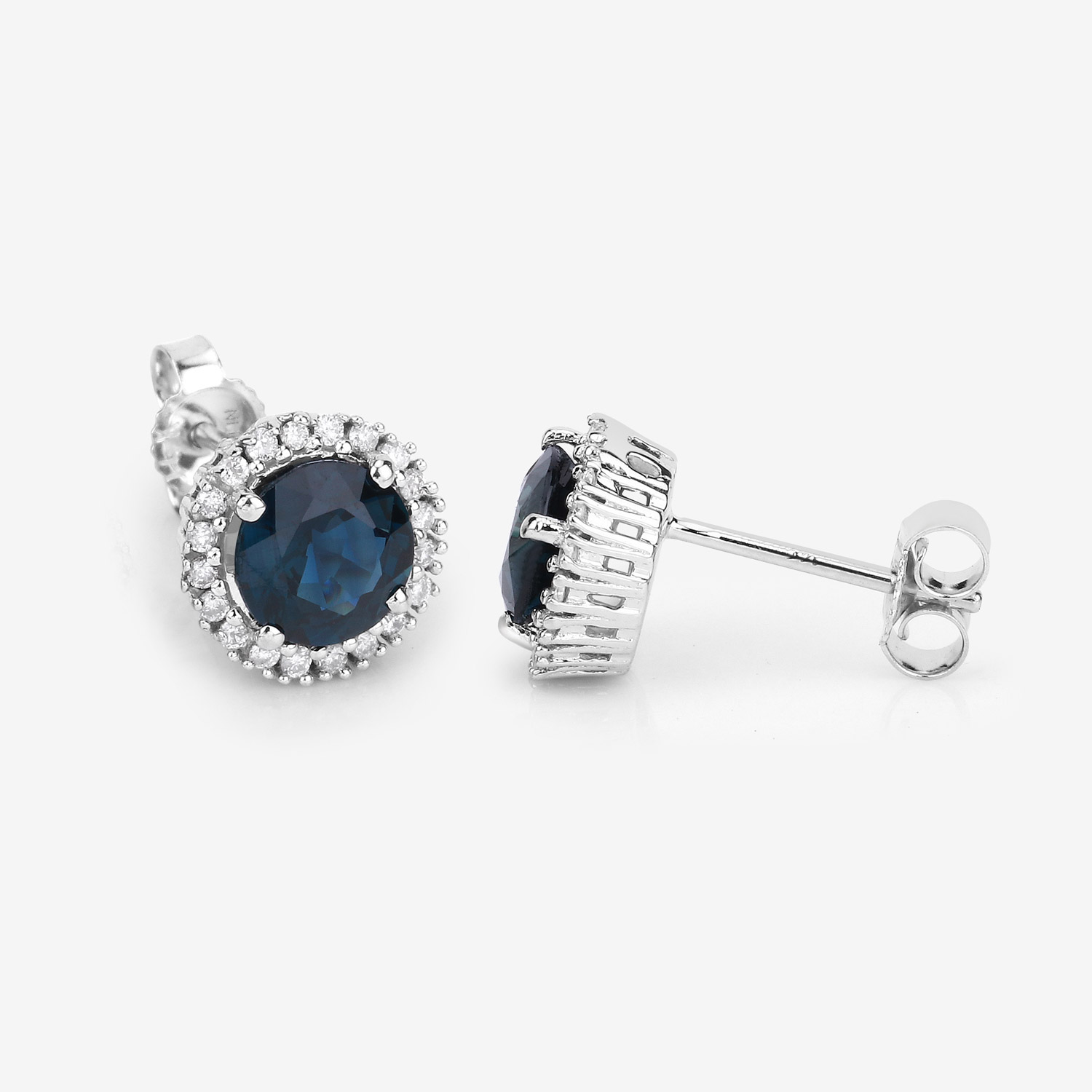 14 karat white gold 2.00 carats total weight Each sapphire is approximately 1.00 carat! .18 carats total weight round, brilliant-cut, H-I color, I1 clarity diamonds in the halos. The earrings are approximately 5/16" and attach to the earlobe with posts and friction backs. This item is eligible for appraisal by an independent appraiser (with qualifying credentials from GIA) without affiliation to Bidfair Fine Jewelry, at a discounted rate. Please contact Bidfair Fine Jewelry for more information on appraisals. This is a brand new item, with approved from the manufacturer for sale to the public, by auction. It is in excellent condition, but may have fine scratches from shipping or transportation. Admin:Q741/26ggh