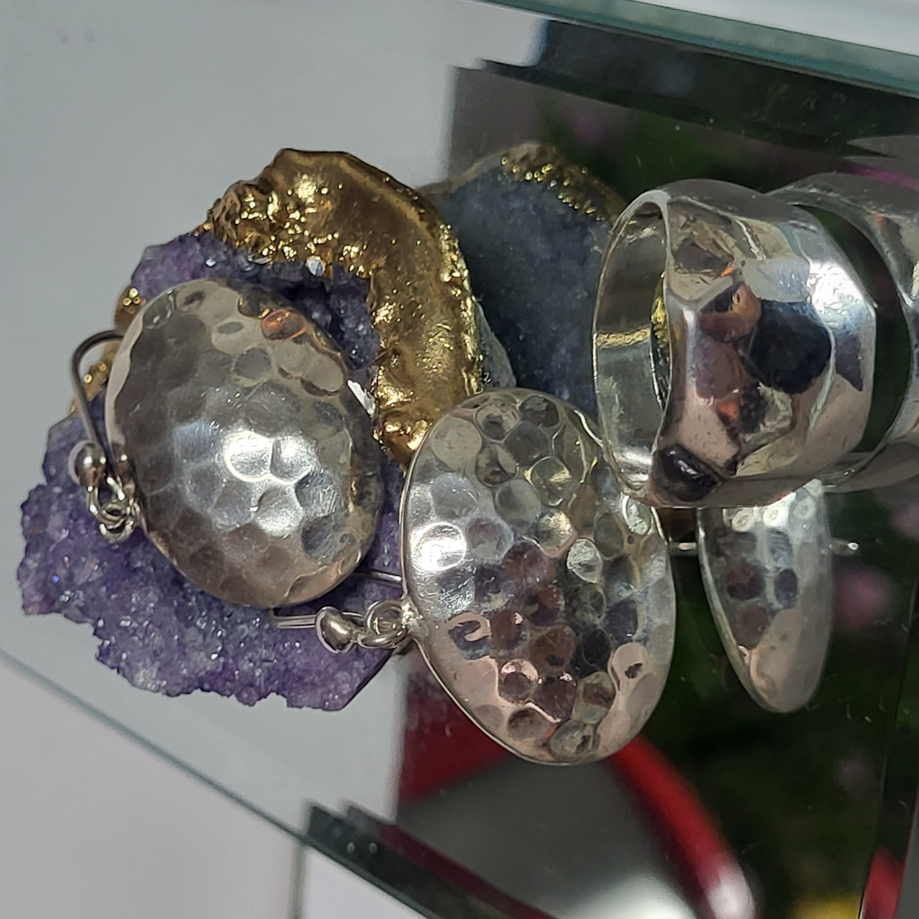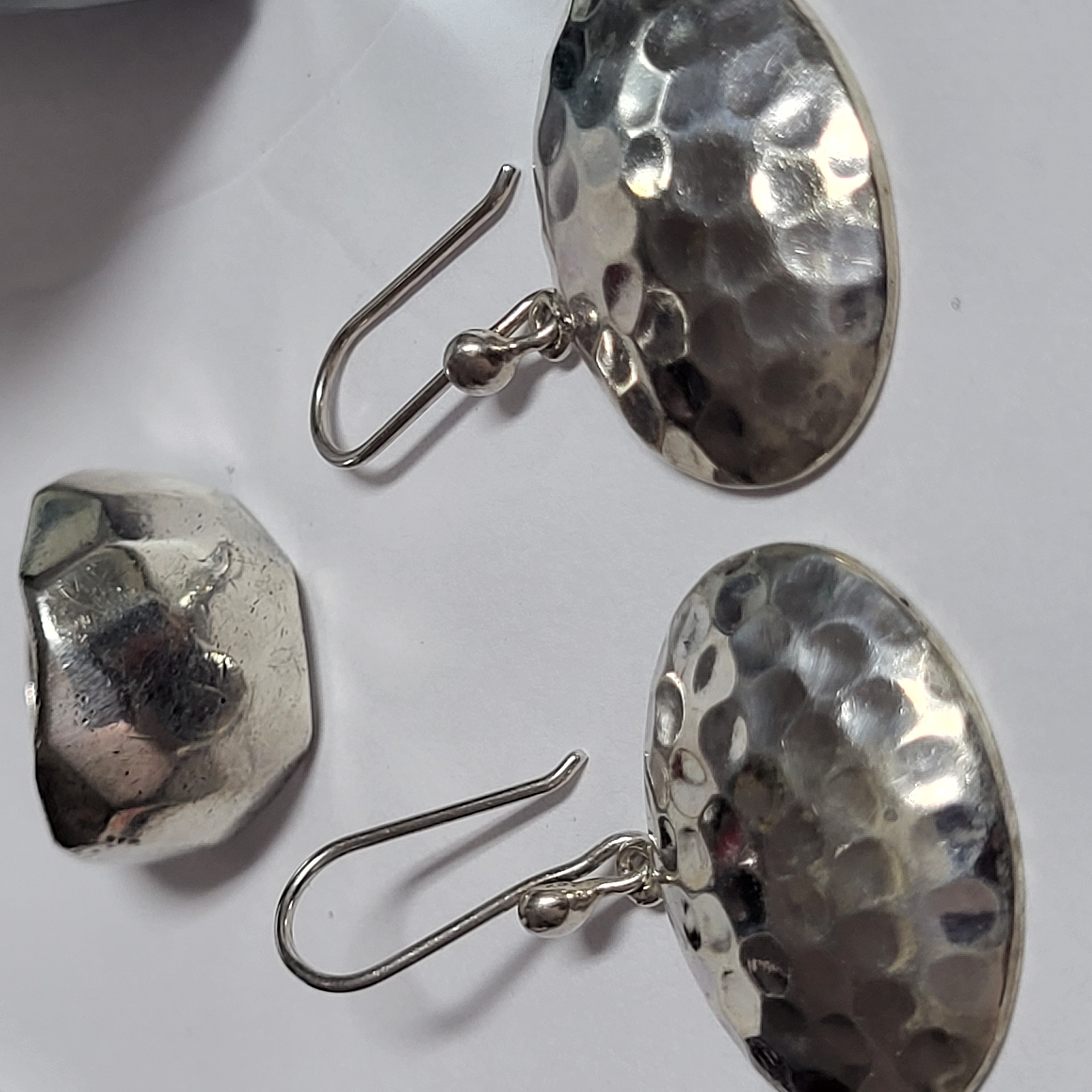 High-content sterling silver, 95% as opposed to 92.5% silver, was used to craft these lovely **ILARIA hammered earrings. They are of Peruvian origin and attach to the earlobe with durable sterling silver hooks that hang approximately 1.5". The hammered oval discs measure approximately 1 1/8" x 14/16" and the pair of earrings weigh 12.39 grams. "The ILARIA reputation has grown all over the world, becoming the reference point when it comes to Peruvian jewelry. Each piece ILARIA produces is entirely handmade by our magnificent craftsmen and goes through a rigorous quality control. Only after passing all the control stages, the jewel is sealed with the ILARIA logo."*