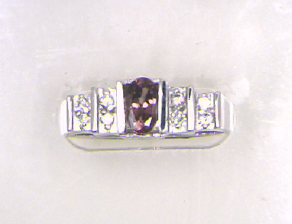 This is a 14 karat white gold ring that features an approximate .55 carat oval-cut, tension-set, natural and genuine COLOR-CHANGING garnet with approximately .16 carats total weight of round, brilliant-cut, H, SI2-I1 clarity diamonds on the stepped shoulders that taper to an approximate 2.5mm shank. This ring is US size 7 and can be sized for an additional charge. This item is eligible for appraisal at a discounted rate, from an independent appraiser (with qualifying credentials from GIA) with no affiliation to Bidfair Fine Jewelry. Please contact Bidfair Fine Jewelry for more information on appraisals and sizing. This is a brand new item with manufacturer’s approval to sale in a public auction. It is in excellent condition, but may have fine scratches from shipping or storage. Admin: G11241/6irt