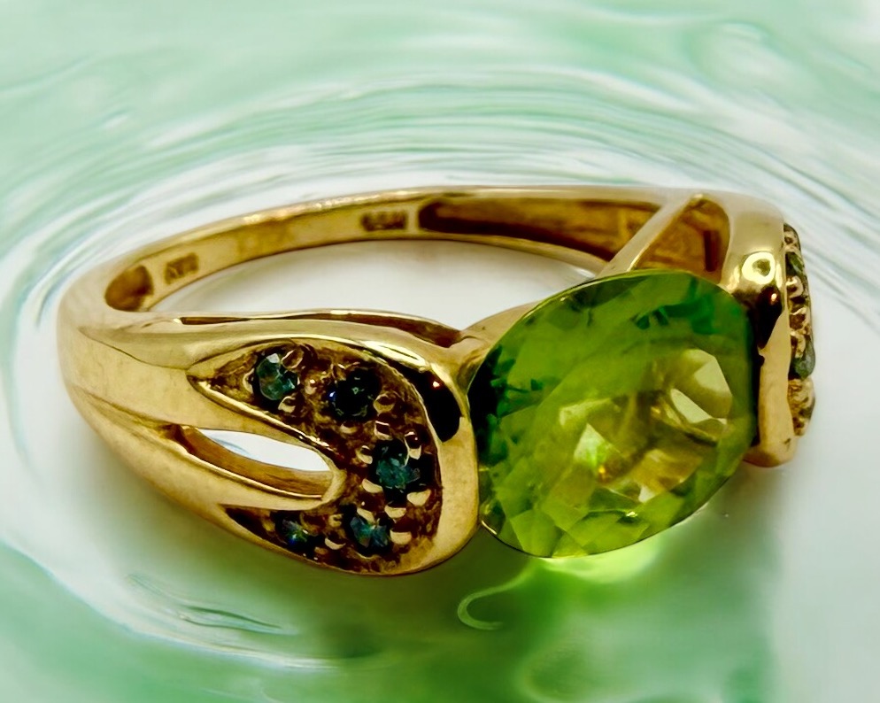 14K Yellow 3.93g Peridot/2.50 CT Yellow-Green Unknown .10ctw/Blue-SI2 7