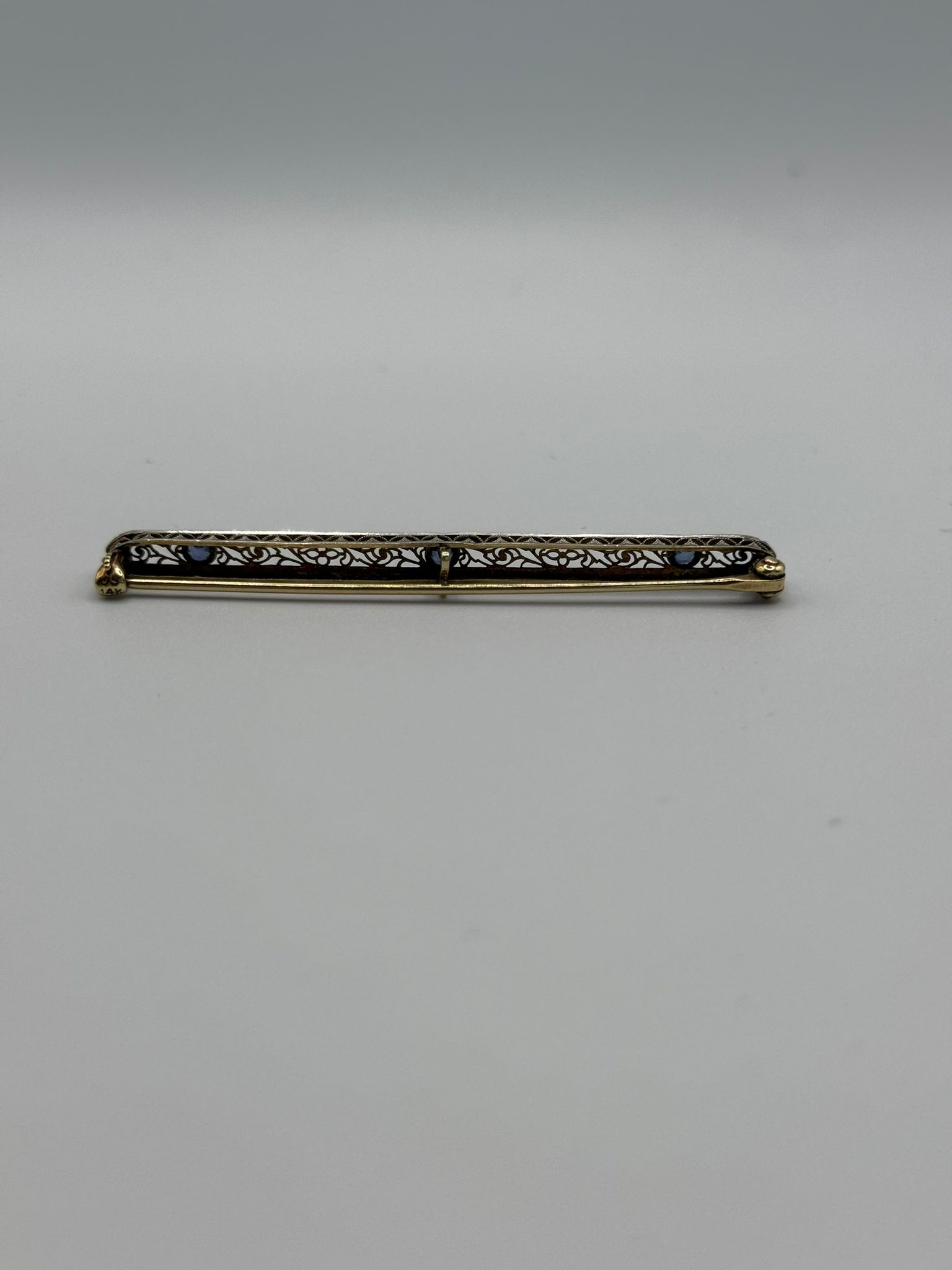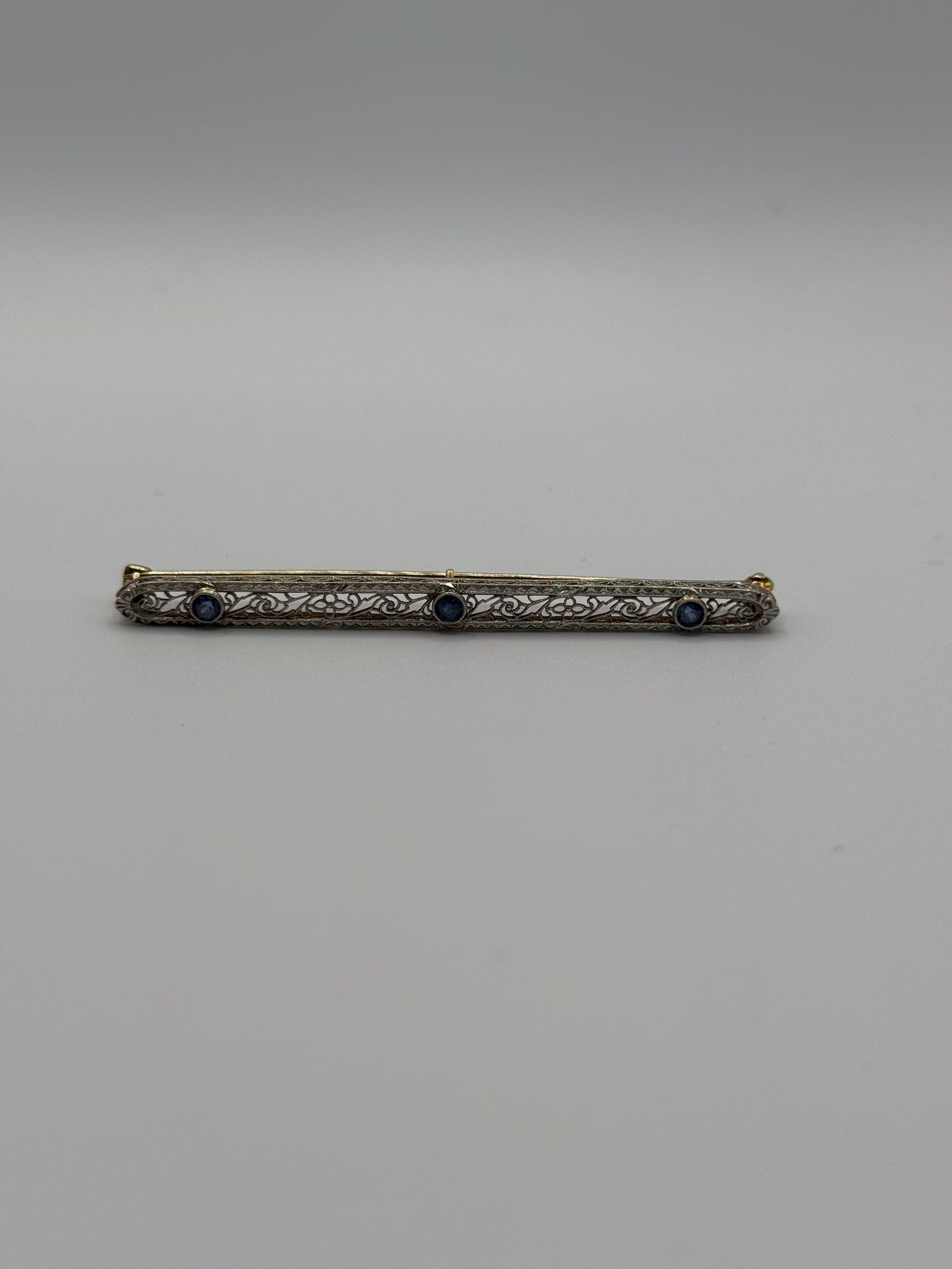 White gold bar pin/brooches became popular during the Art-Deco era (1920-1930’s) following a period that favored platinum, which became scarce, due to its use in the war.