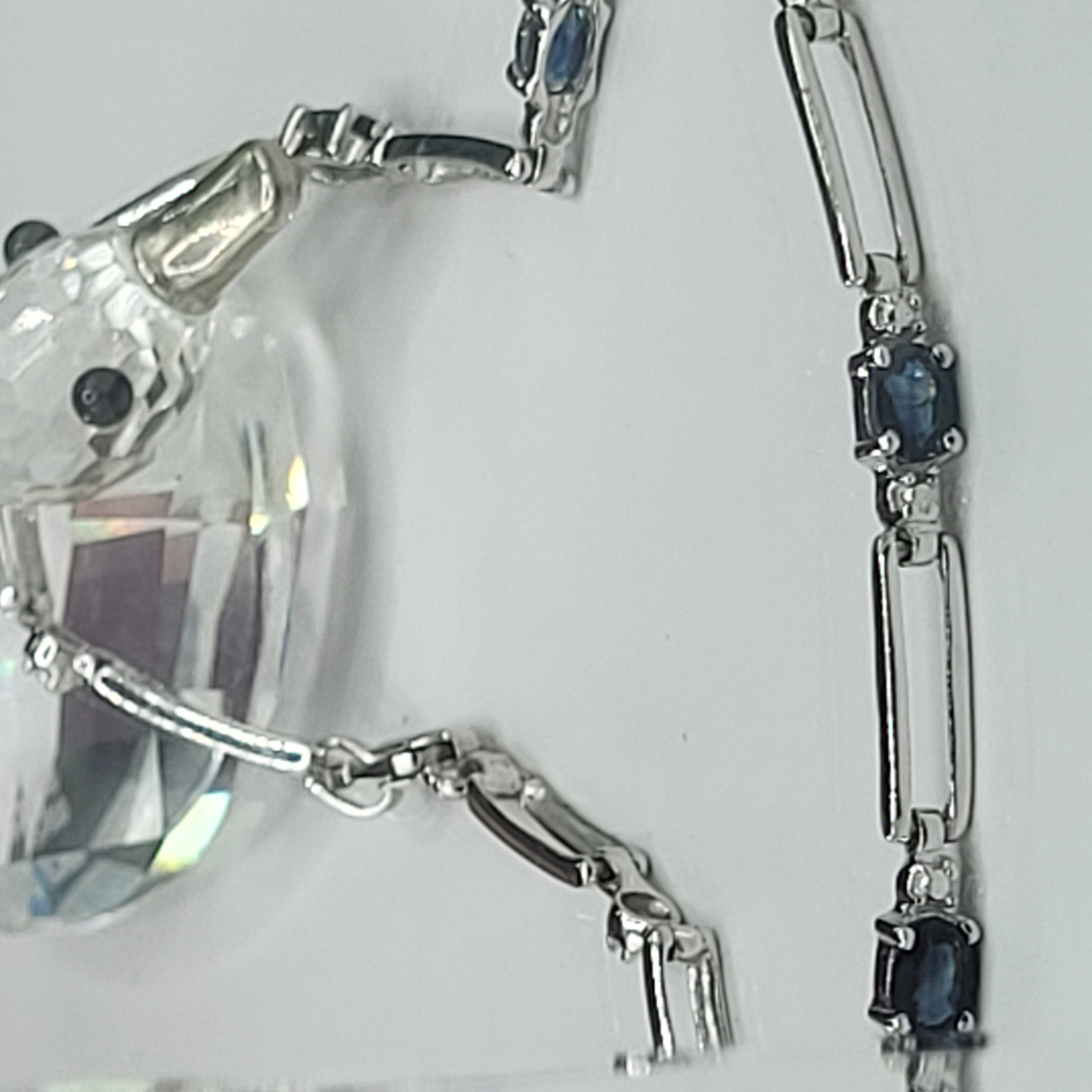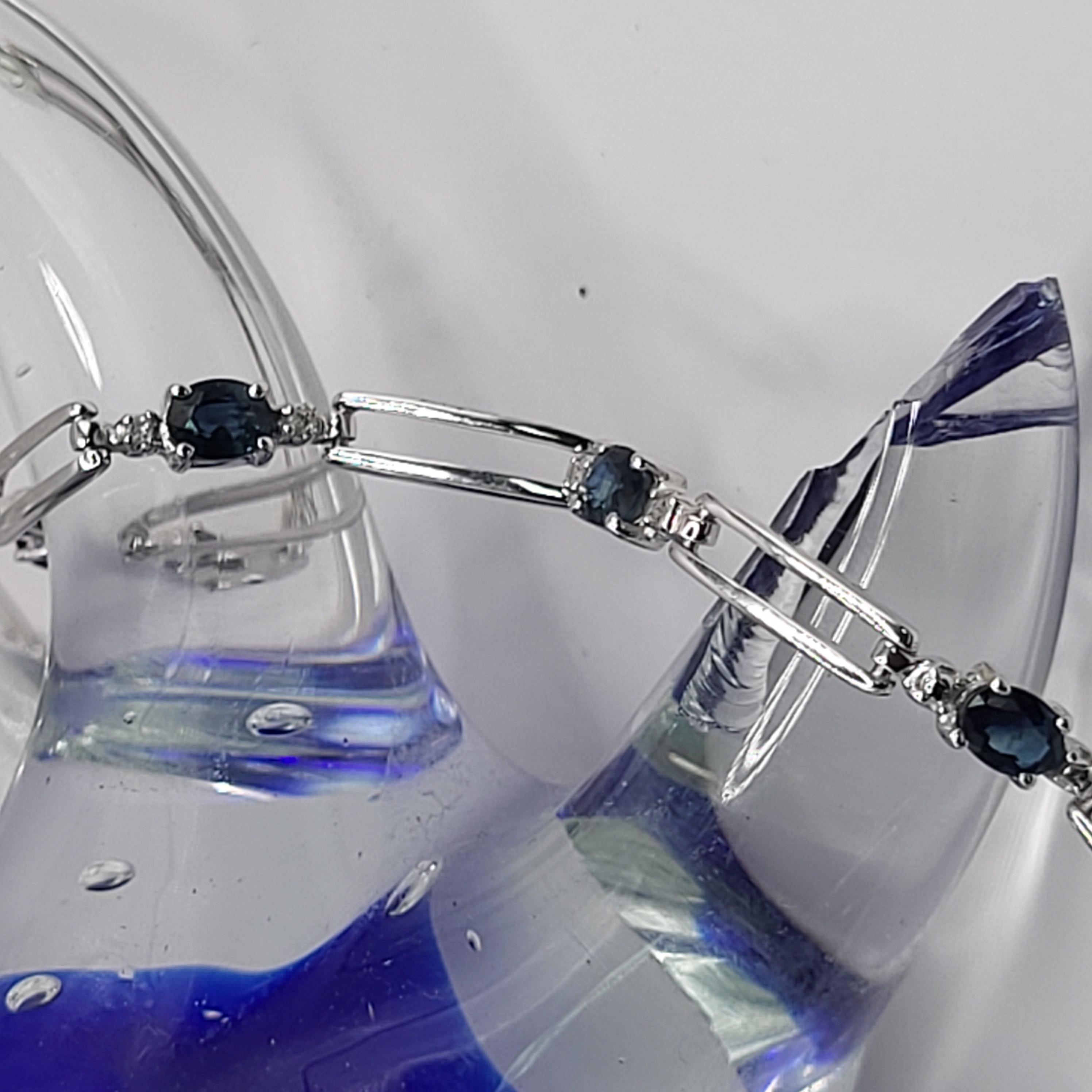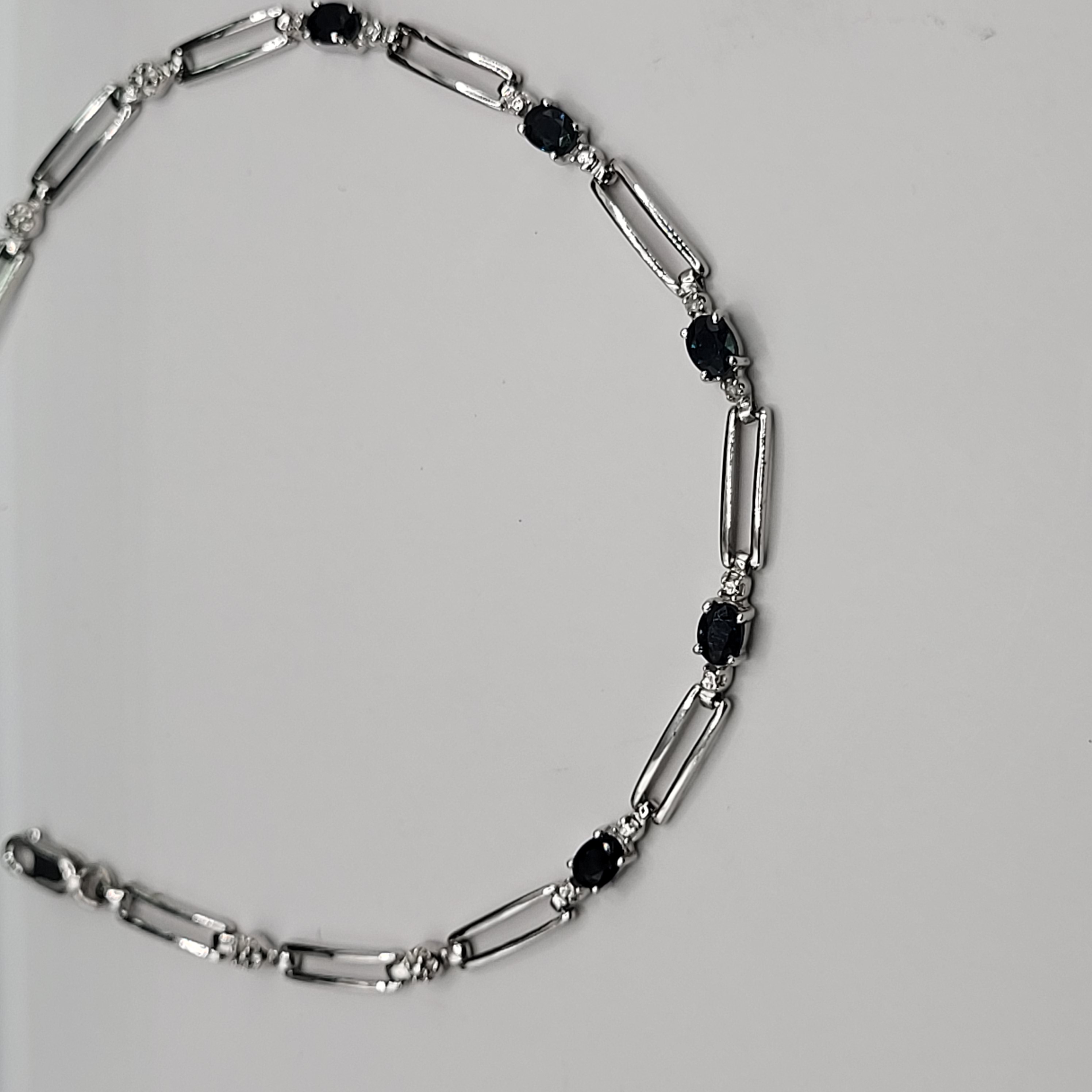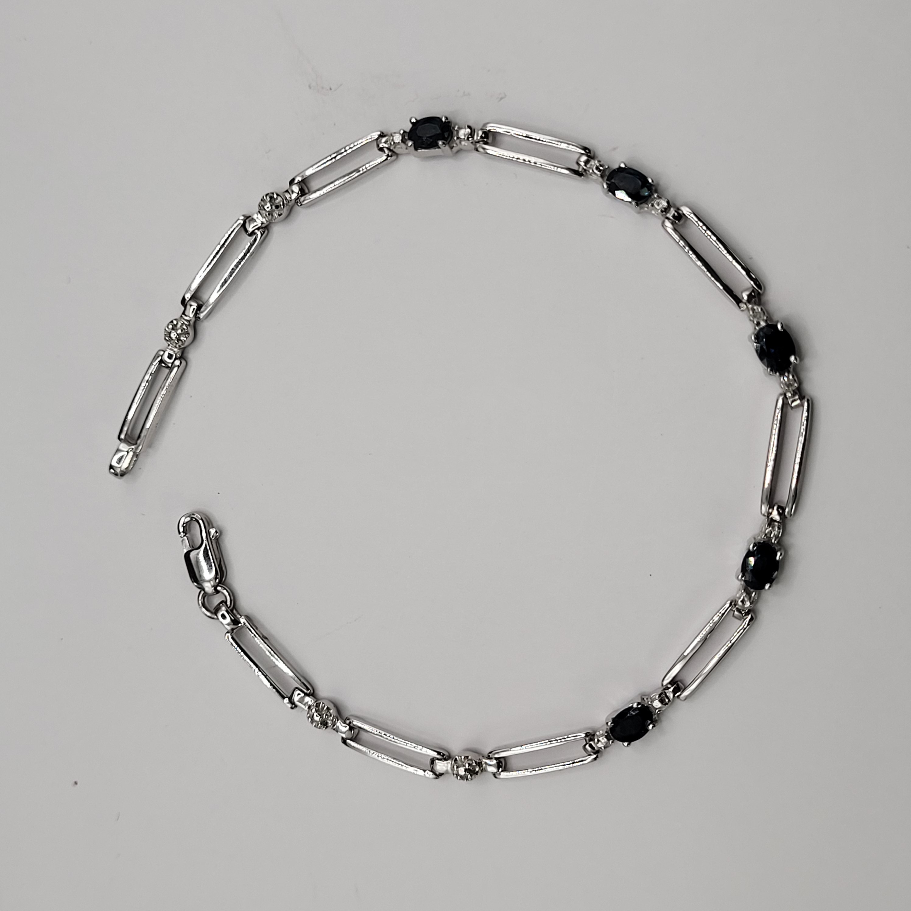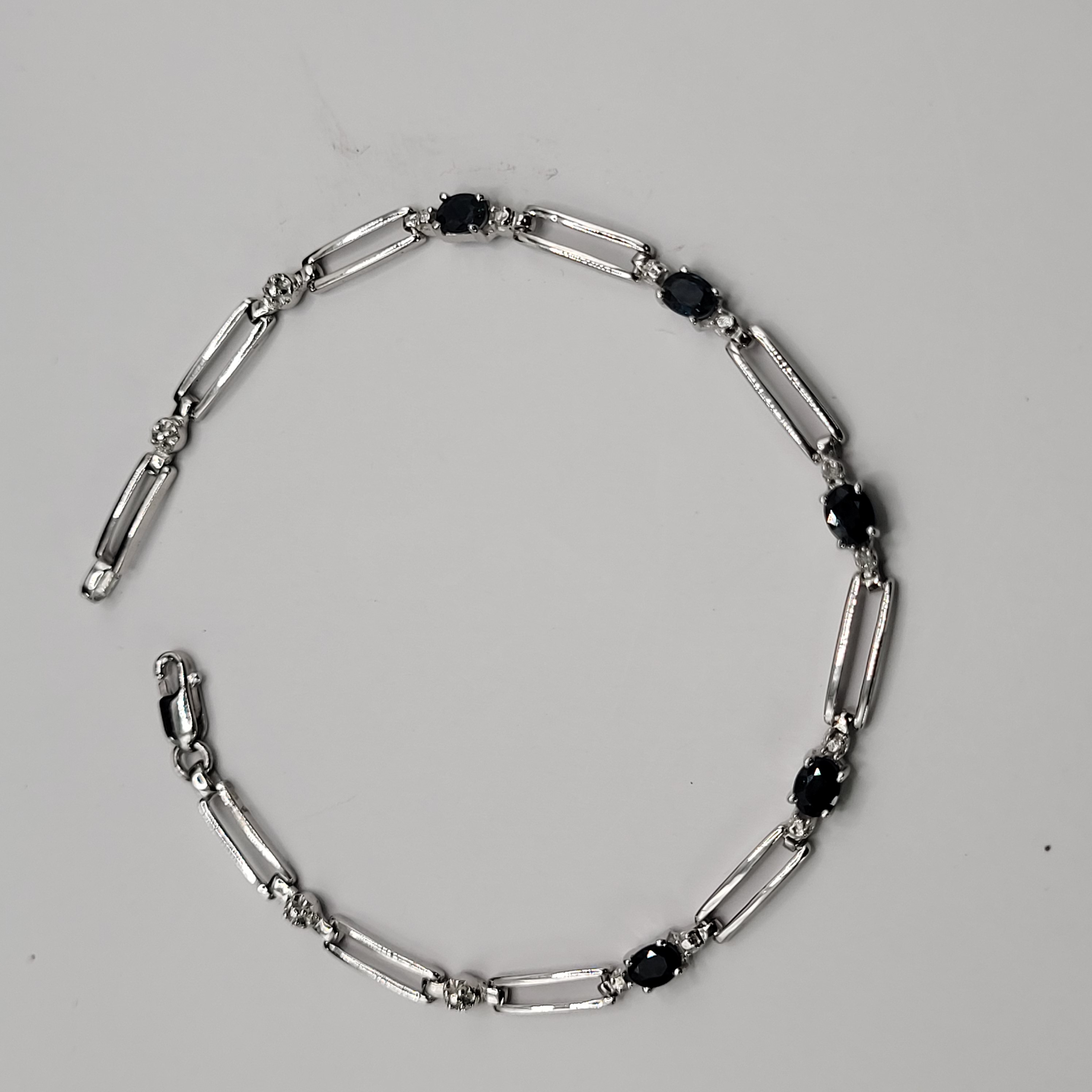 14KY bracelet with approximately 1.25CTW oval-cut, prong-set, genuine midnight blue sapphires and approximately .01ctw round, faceted accent diamonds. App 7" with a lobster clasp.