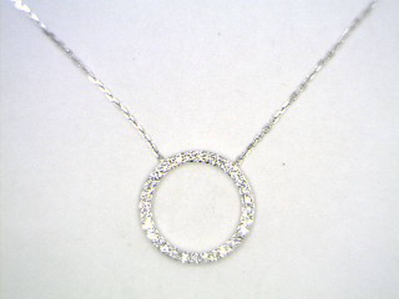 This is a minimalists delight! It is an 18 karat white gold necklace with the iconic "circle of life" set with .25 carats of round, brilliant-cut, G-H, SI1-SI2 diamonds, on a fine link chain and spring ring. The chain is approximately 17.5" long and adjustable. The circle is approximately 3/4" diameter and STATIC. This is a brand new item with manufacturer’s approval to sale in a public auction. It is in excellent condition, but may have fine scratches from shipping or storage. -**Beads on adjustable necklaces are sometimes filled with silicon in order to let the chain pass through easily. The temperature and chemicals in a jewelry cleaner CAN damage the silicon, so avoid letting the bead get into an ultrasonic, or other cleaning devices! – This item is eligible for appraisal at a discounted rate, from an independent appraiser (with qualifying credentials from GIA) with no affiliation to Bidfair Fine Jewelry. Please contact Bidfair Fine Jewelry for more information on appraisals and sizing.