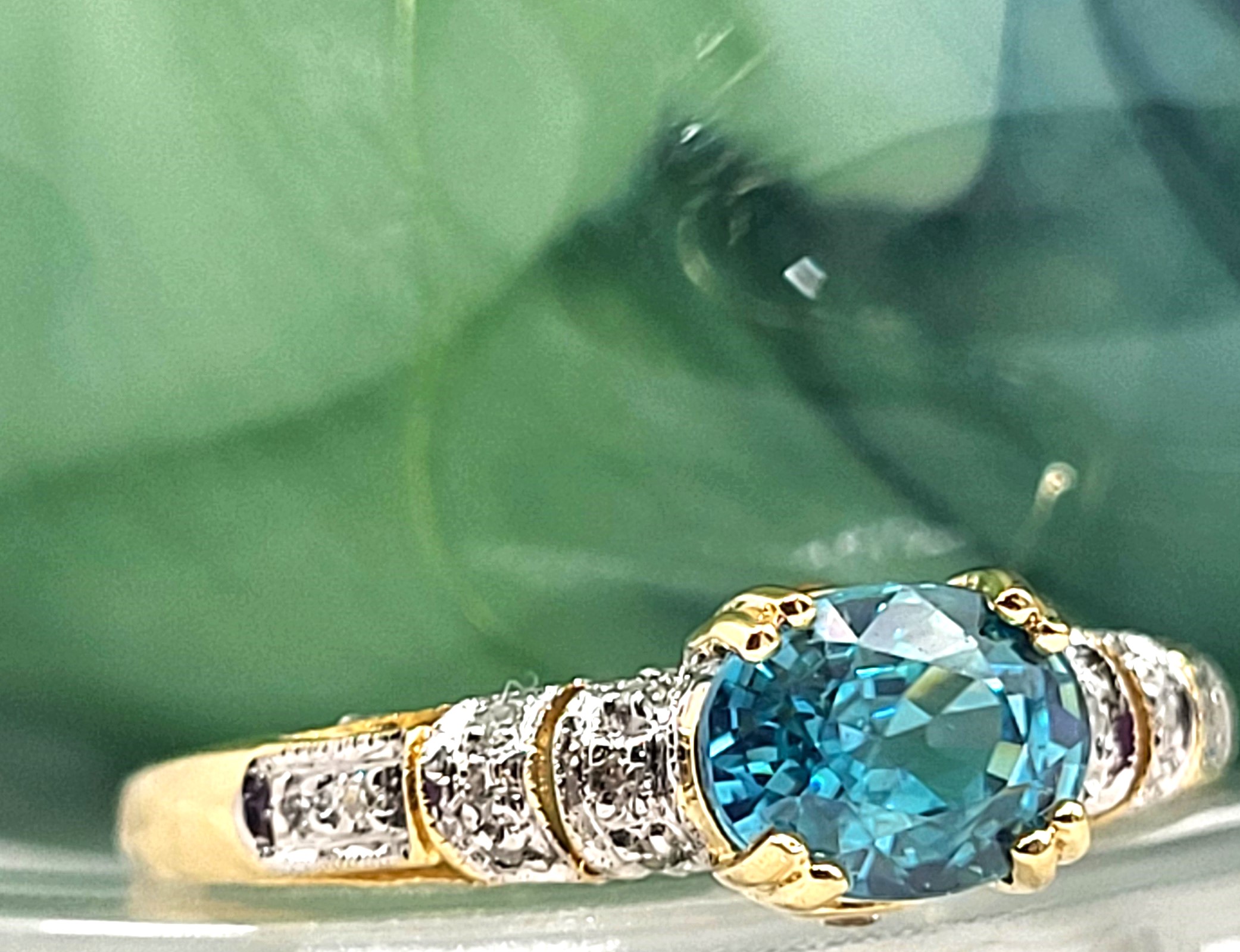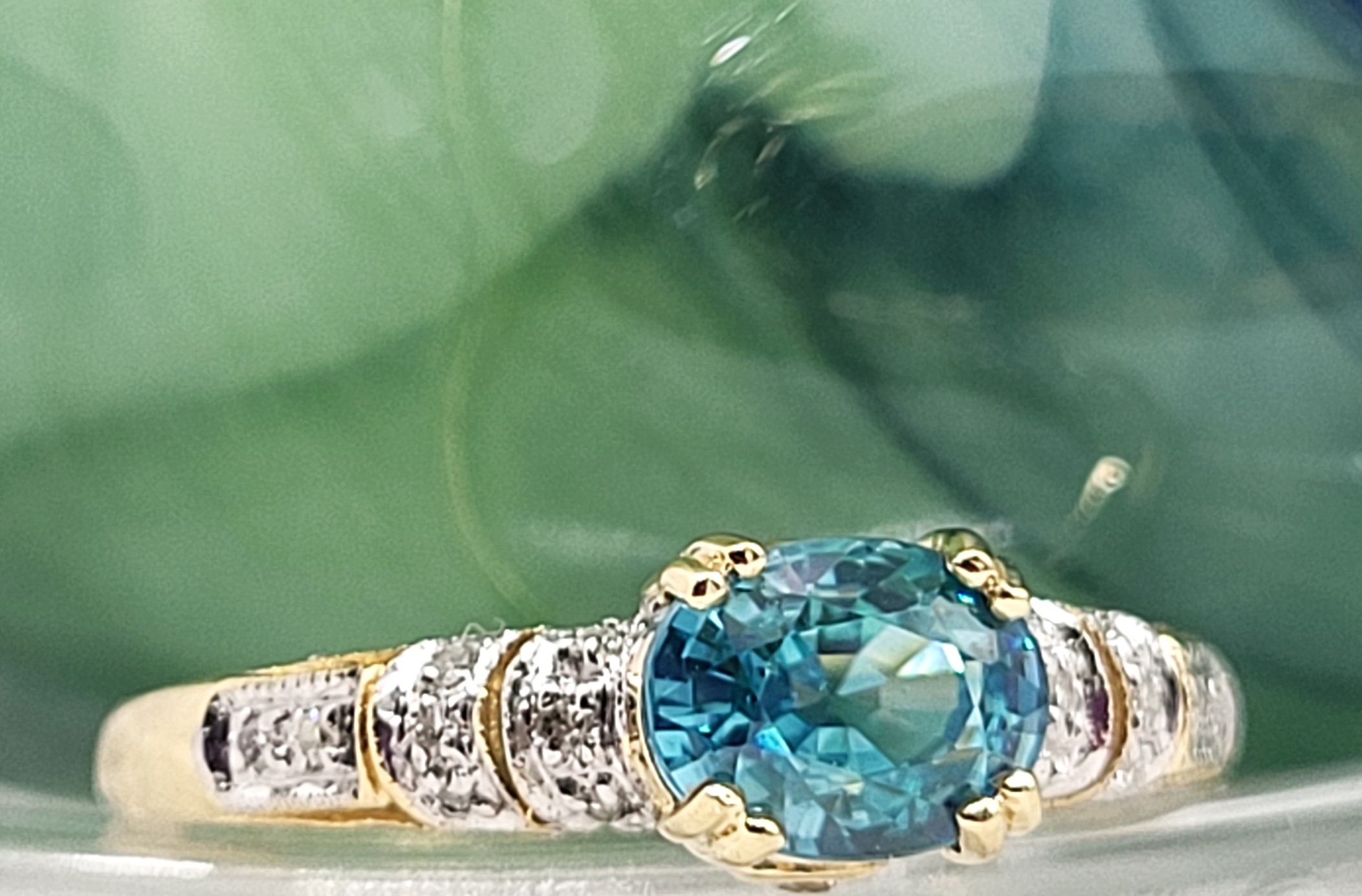 Heavenly Blue Zircon with Teal Overtones Ring with Diamond Shoulders