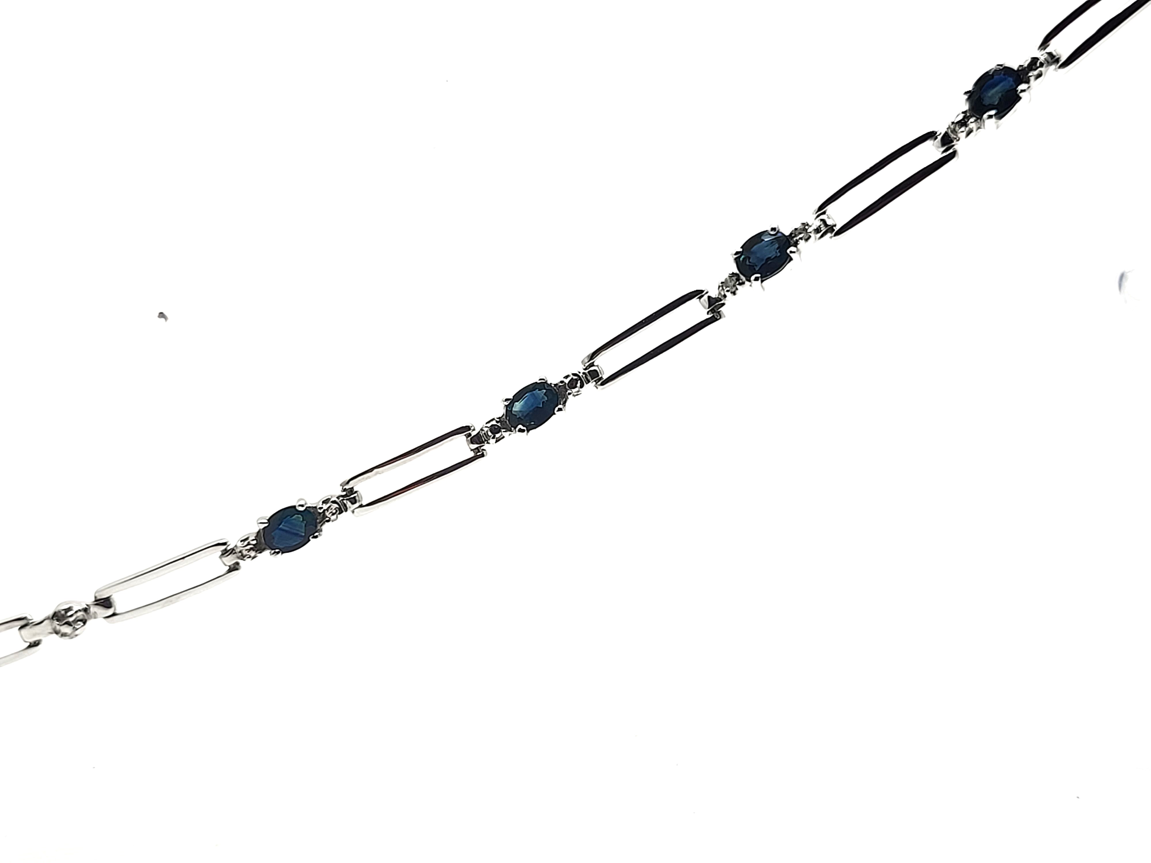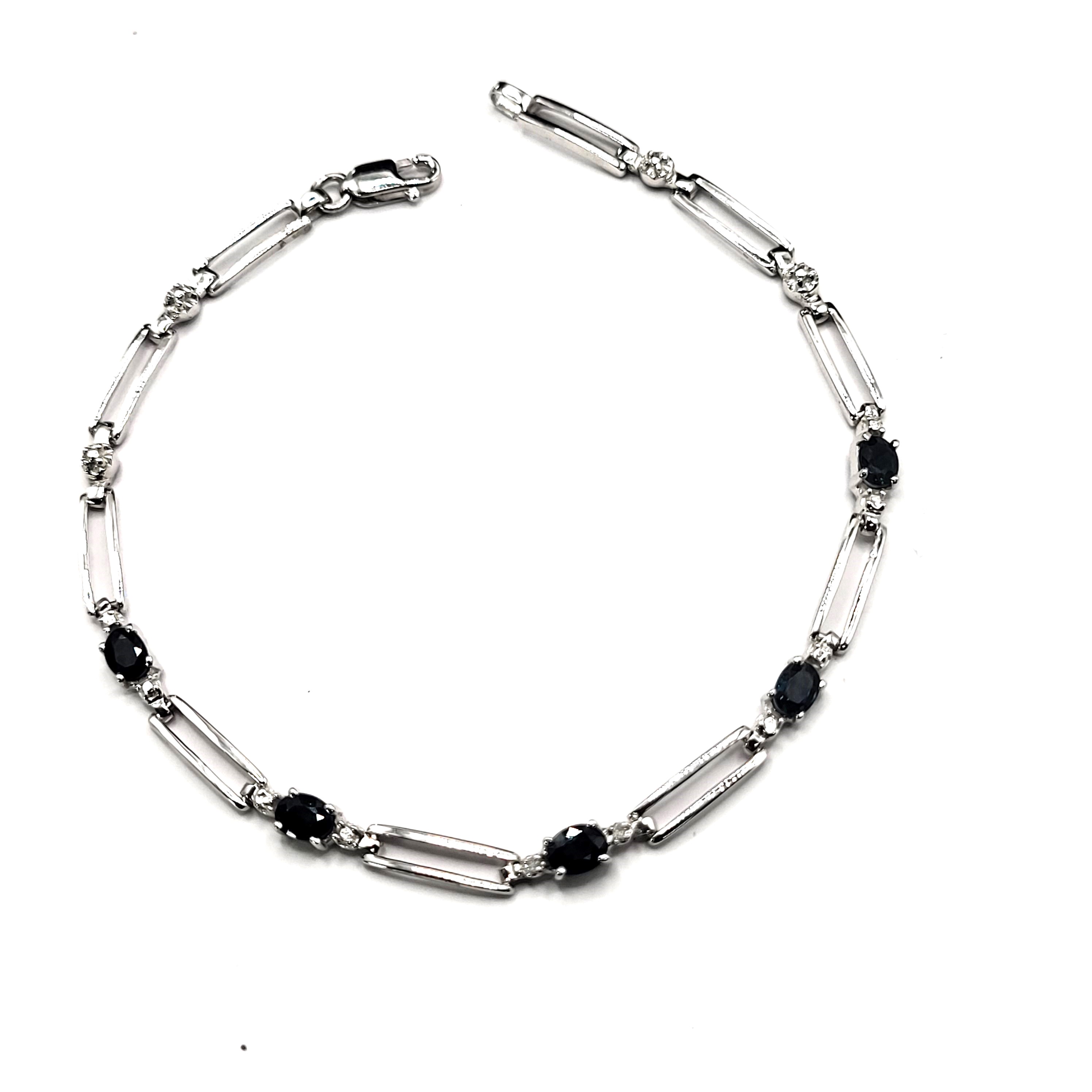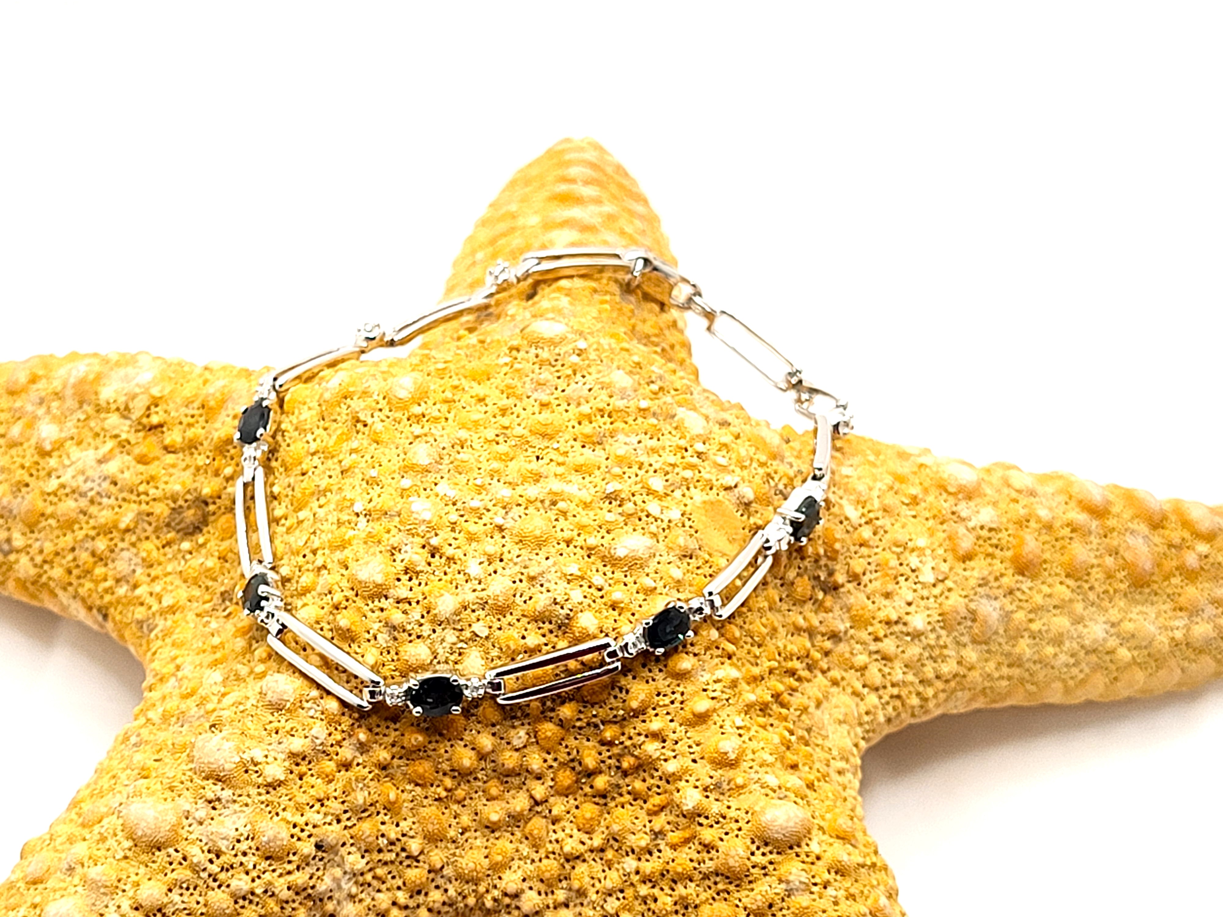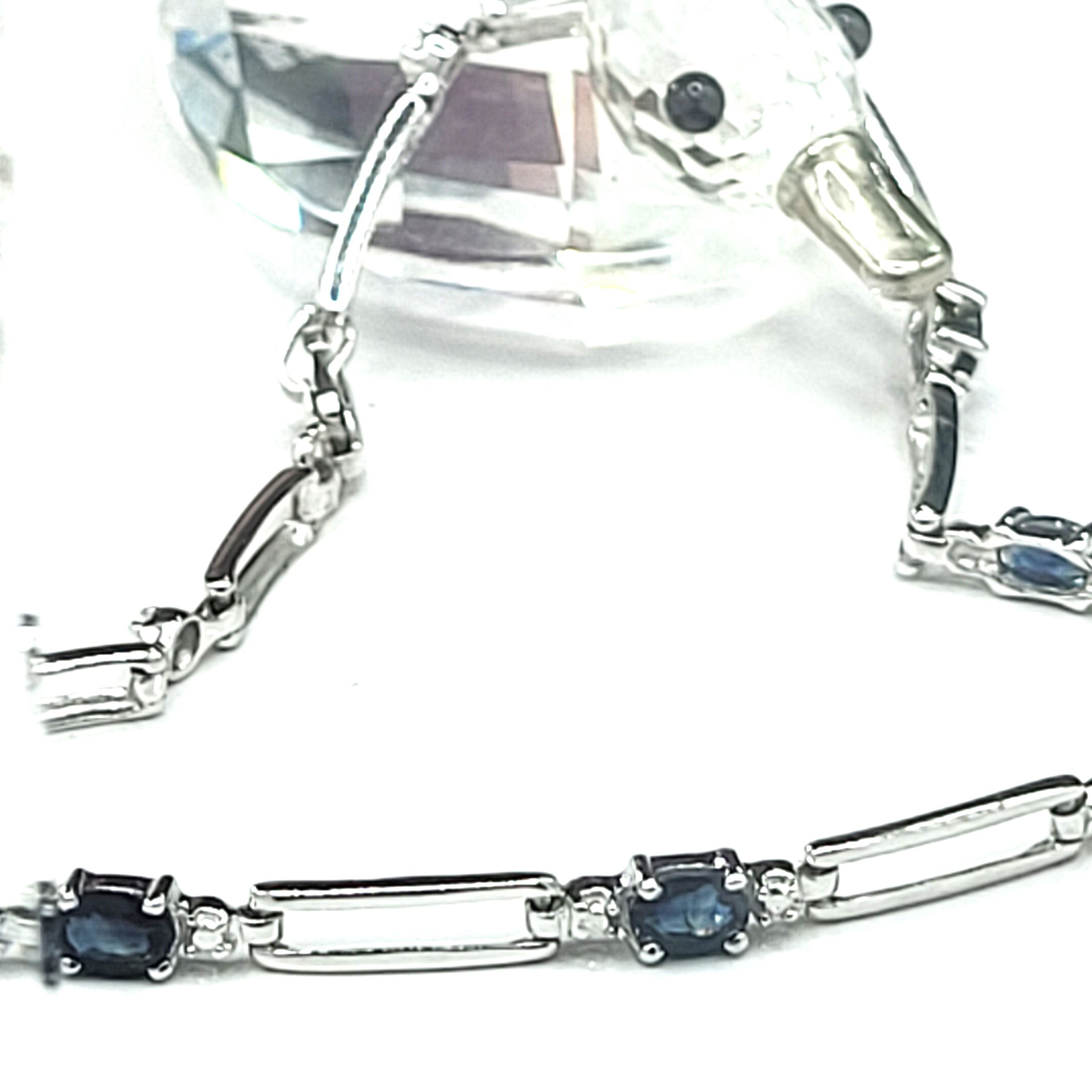 14KY bracelet with approximately 1.25CTW oval-cut, prong-set, genuine midnight blue sapphires and approximately .01ctw round, faceted accent diamonds. App 7" with a lobster clasp.