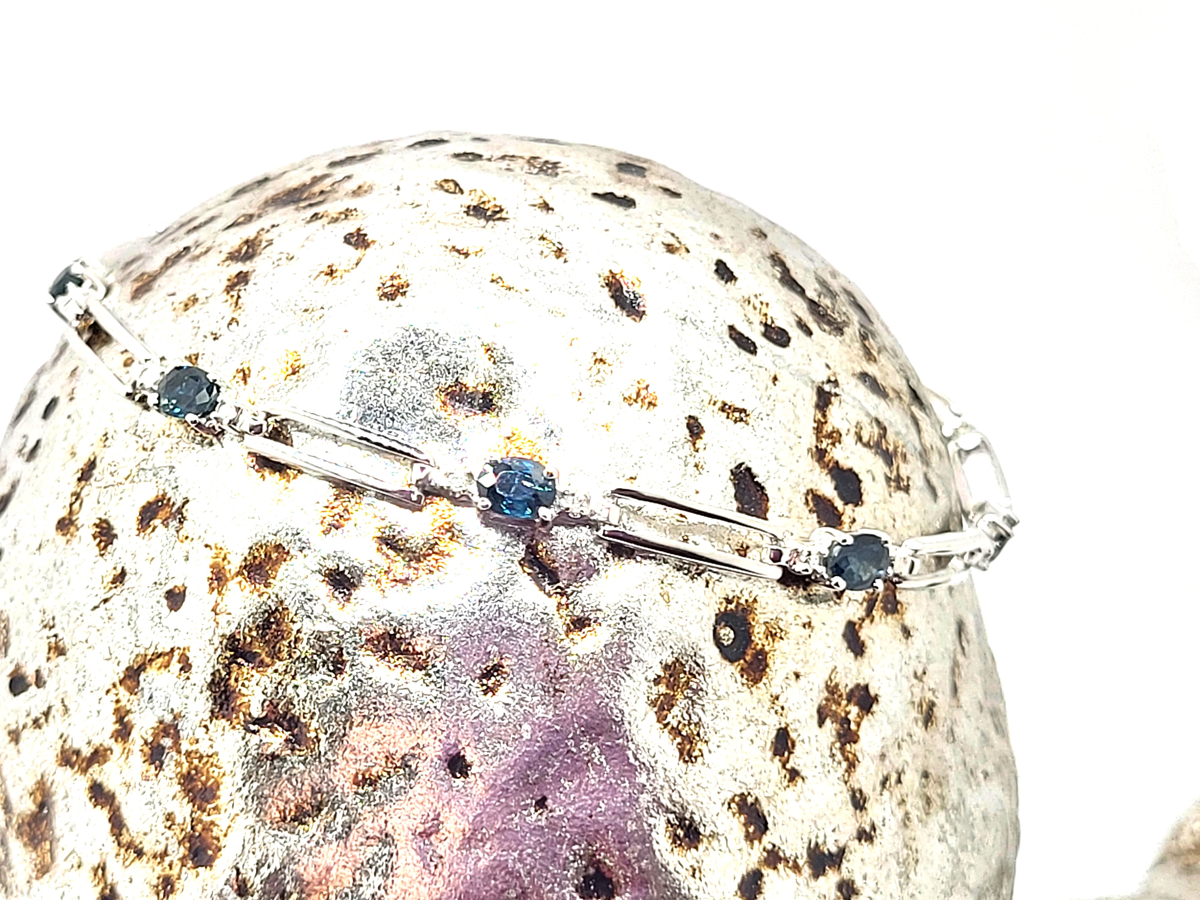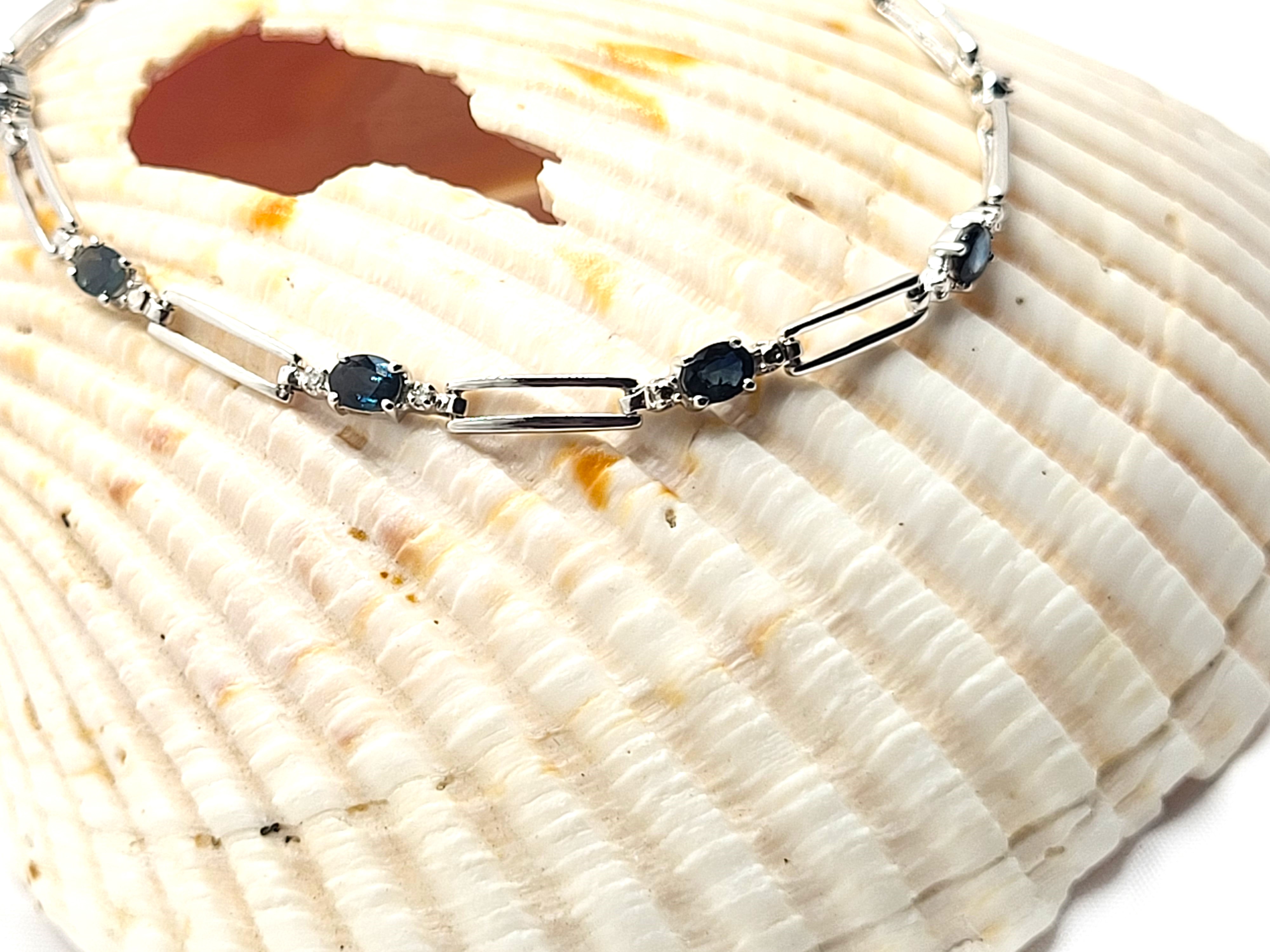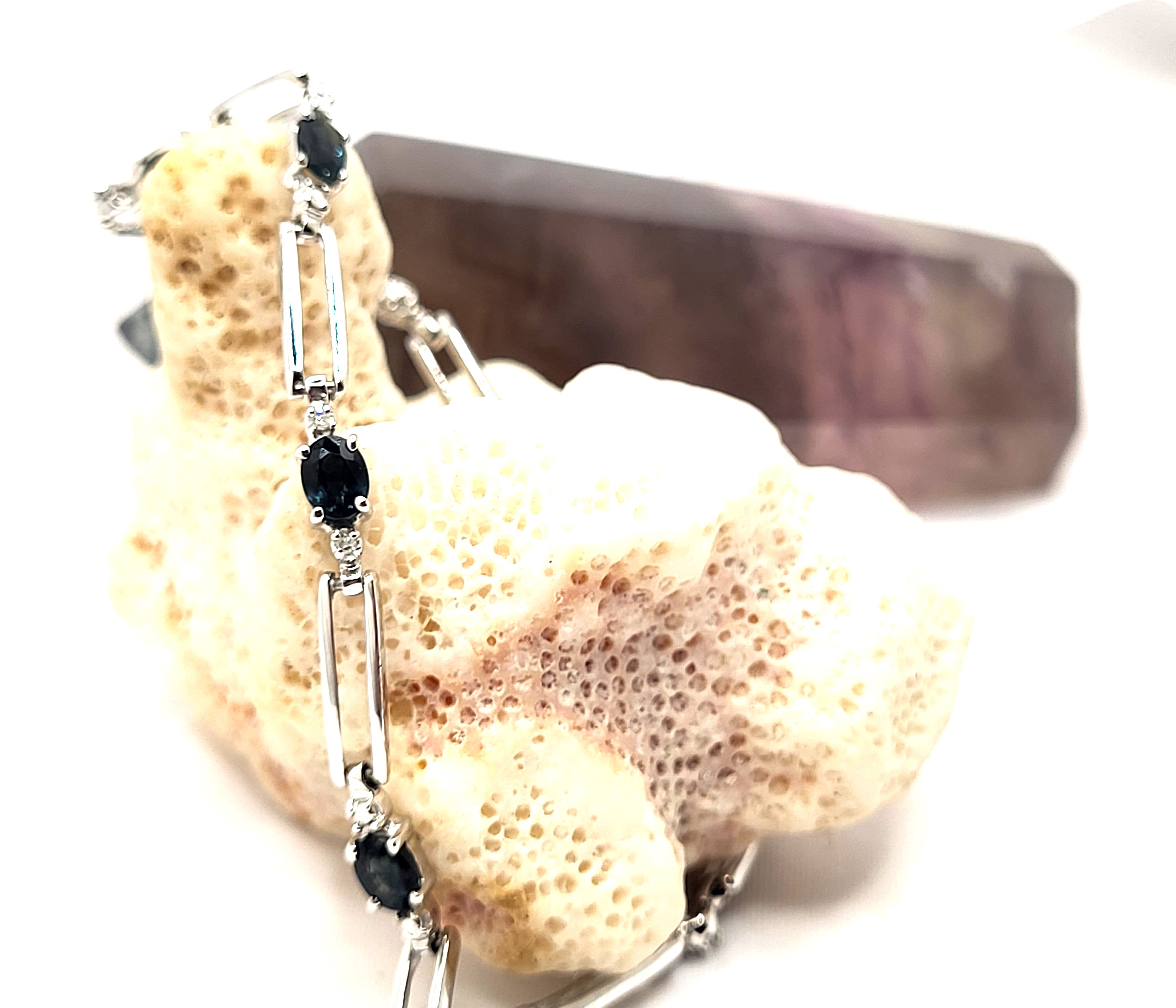 14KY bracelet with approximately 1.25CTW oval-cut, prong-set, genuine midnight blue sapphires and approximately .01ctw round, faceted accent diamonds. App 7" with a lobster clasp.