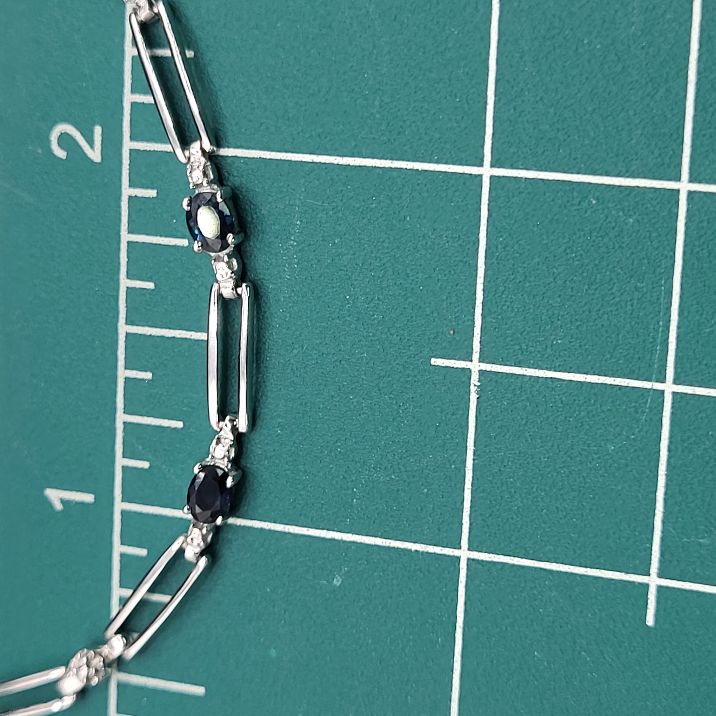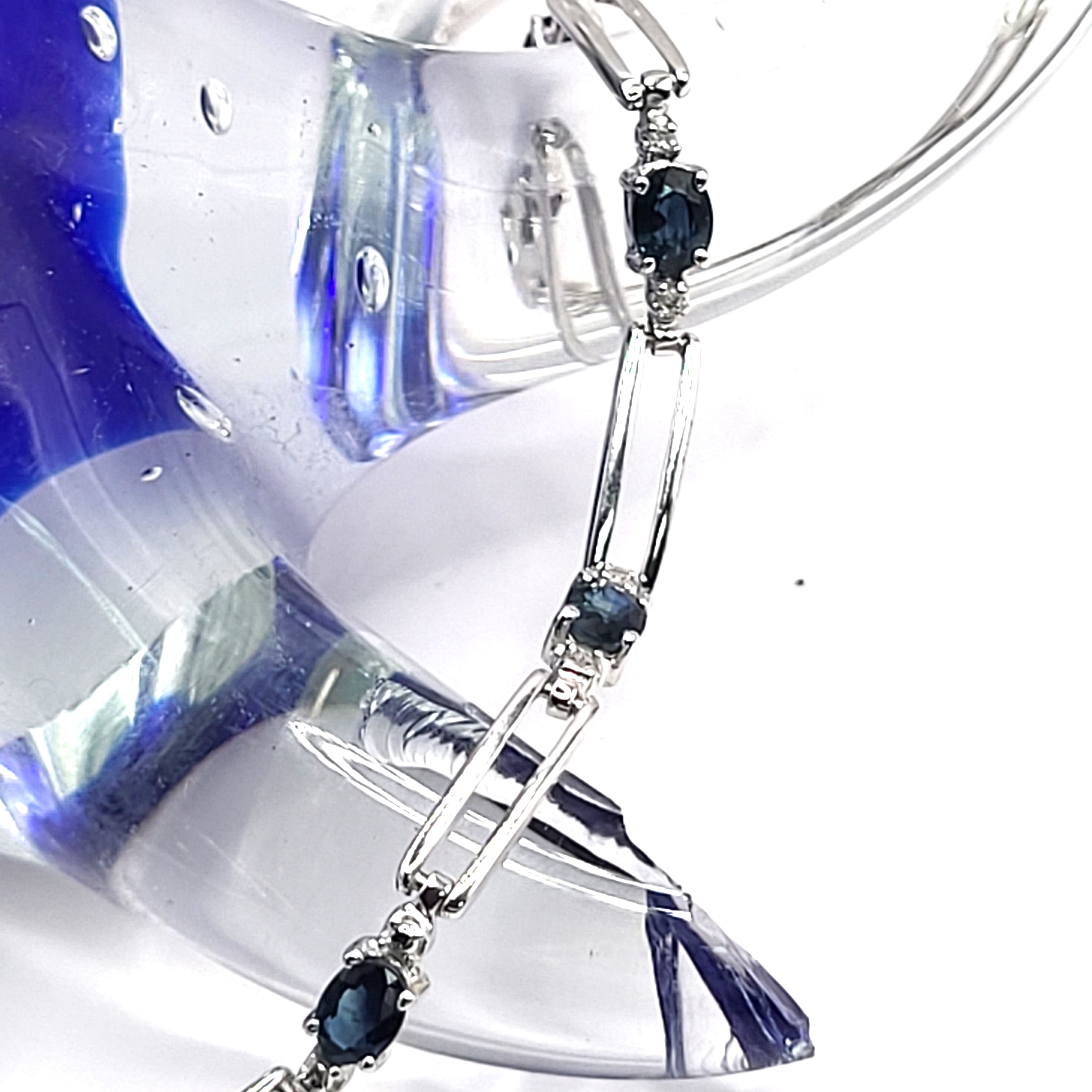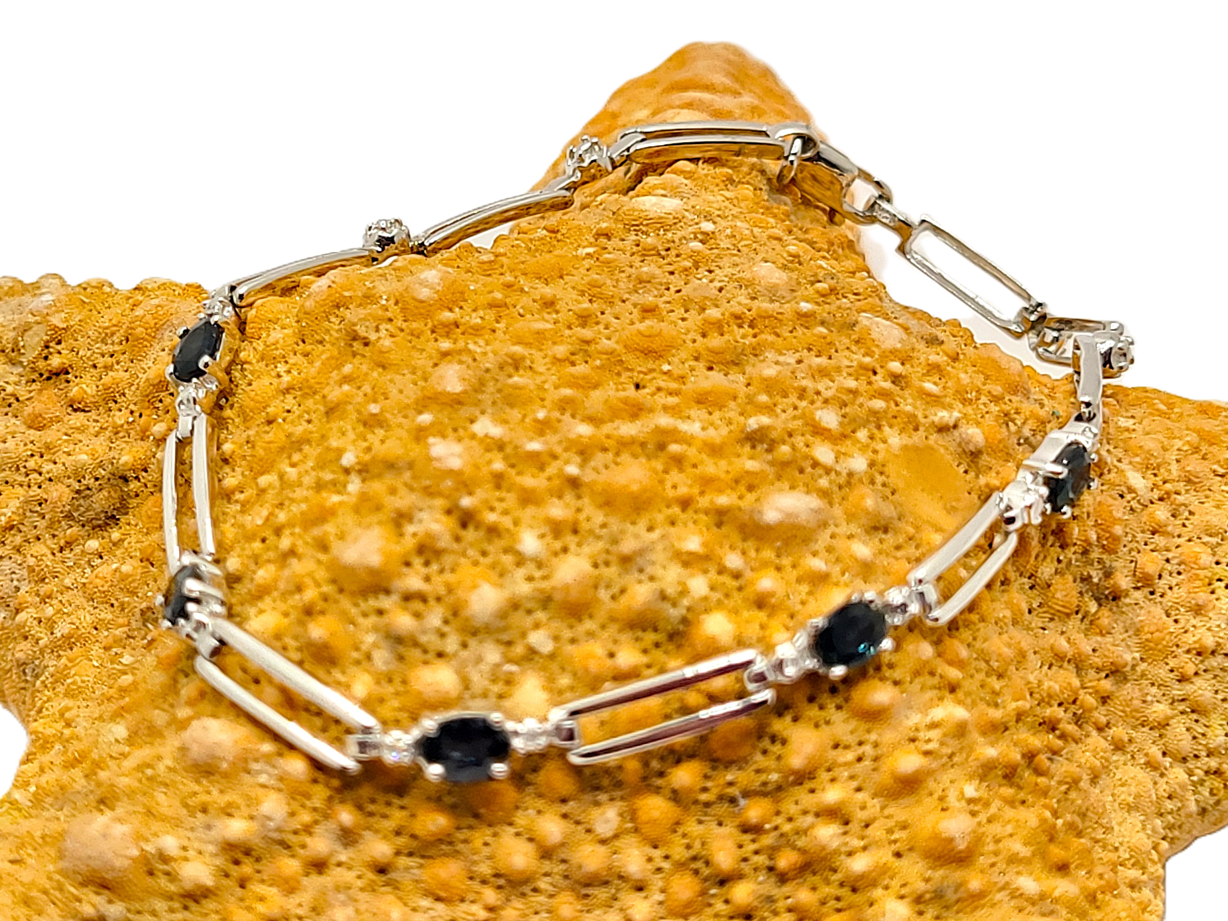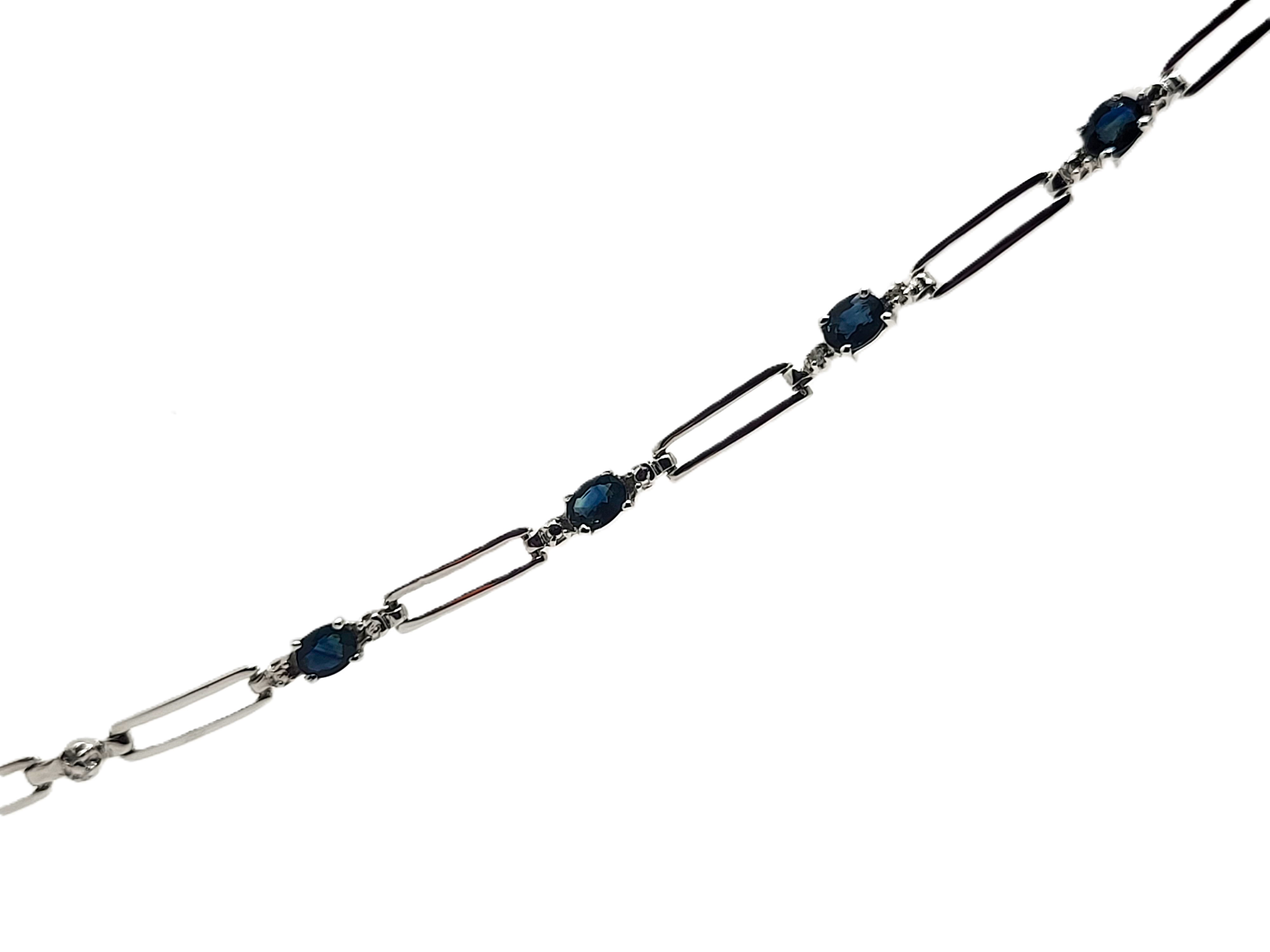 14KY bracelet with approximately 1.25CTW oval-cut, prong-set, genuine midnight blue sapphires and approximately .01ctw round, faceted accent diamonds. App 7" with a lobster clasp.