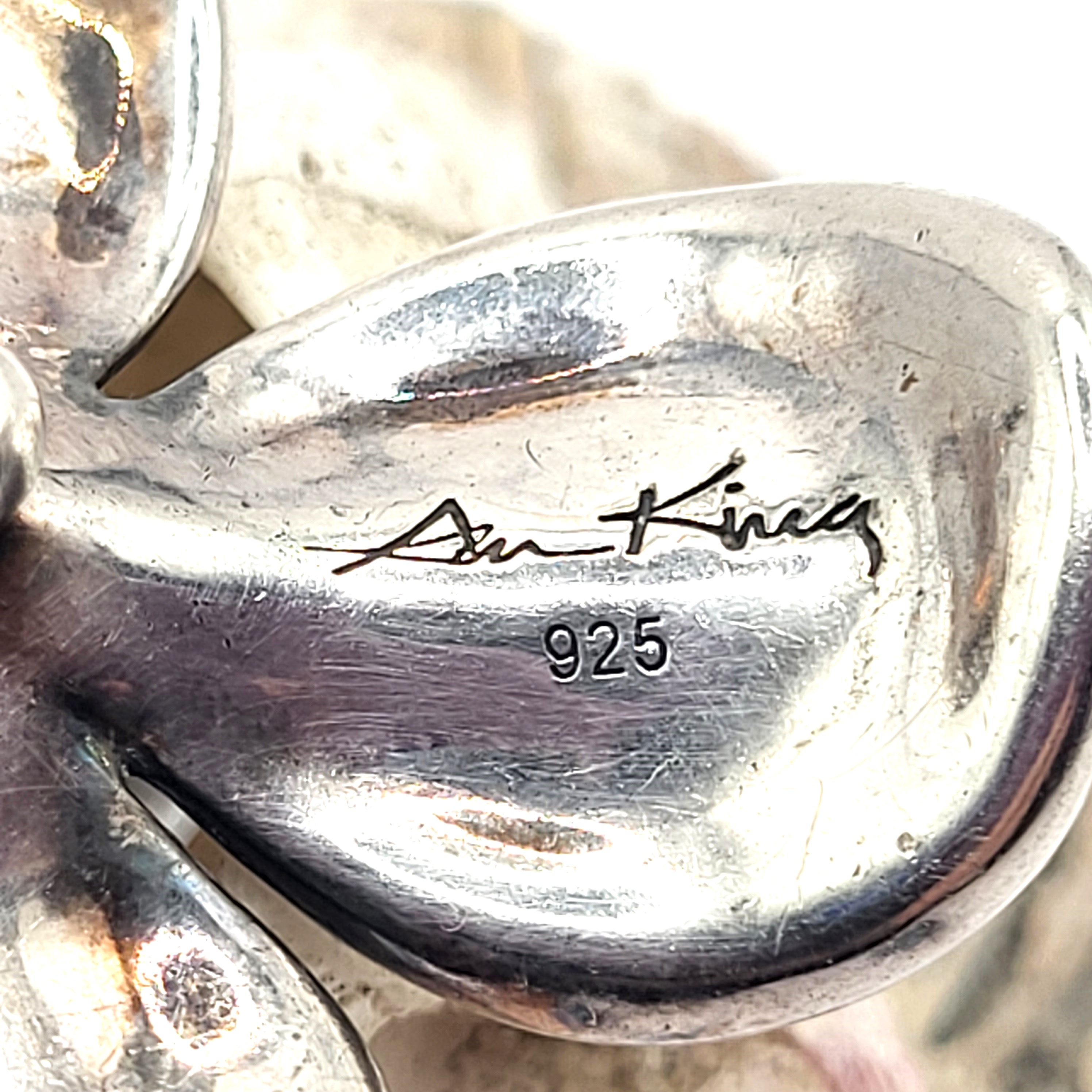 15.06 grams freshwater pearl has a beautiful sheen that picks up on the surrounding colors. The pendant is approximately 1.75" long and 1.50" wide, it is 3-dimensional, and has a large, carabiner-syle bail, to also serve as an enhancer. This pendant bears the signature hallmark of Ann King, an award-winning jewelry designer. Admin: F1226/19d-hhh