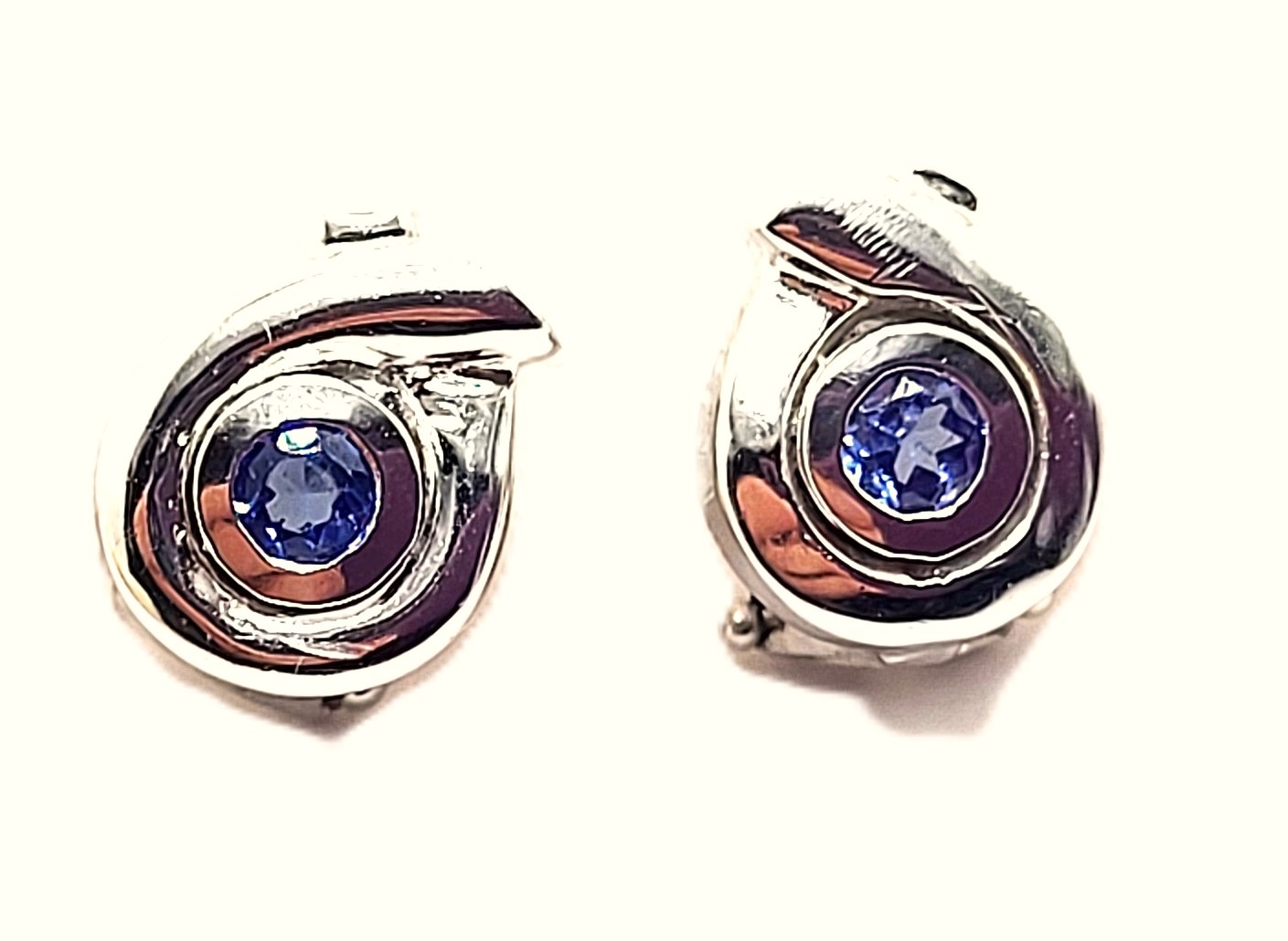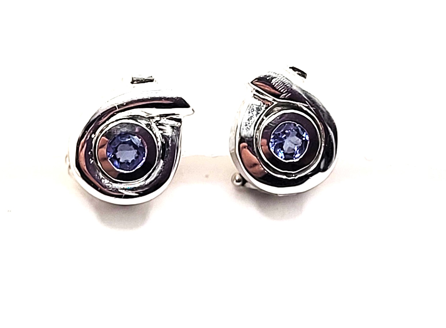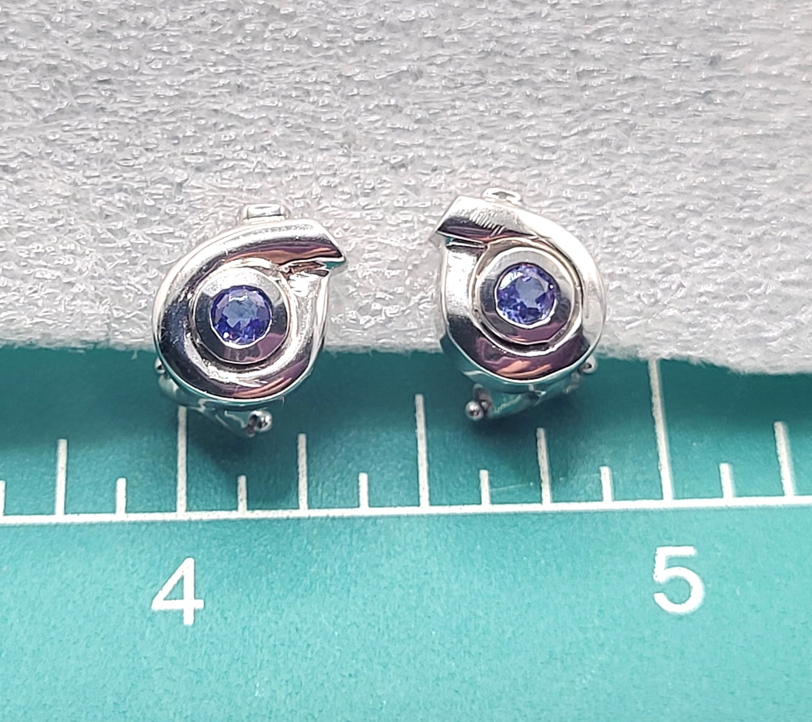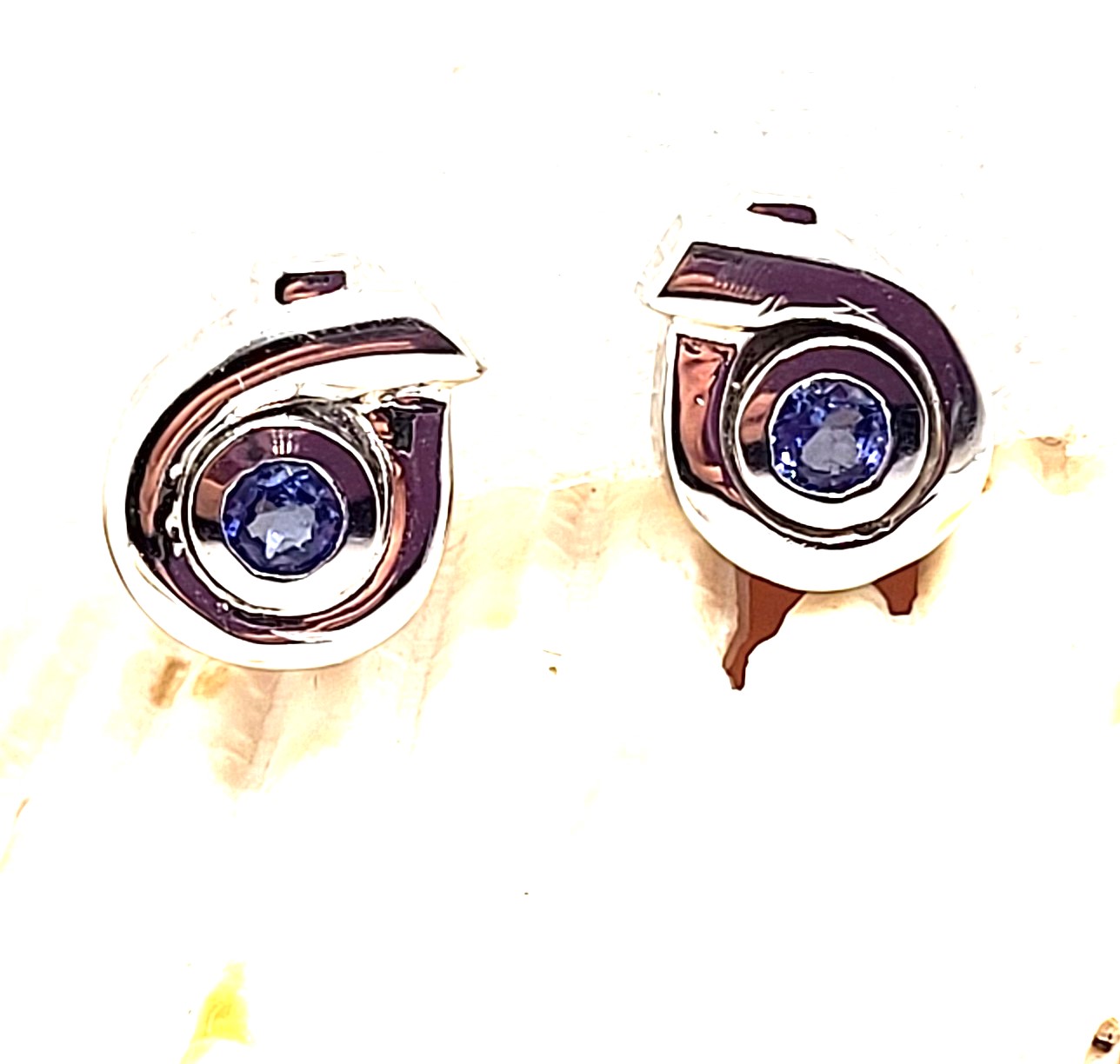 This pair of earrings have "stand-out beauty" on their own, but they also carry a compassionate symbol of awareness with the overlapping ribbon design. They are crafted in 14 karat white gold and feature .30 carats total weight of round, faceted, bezel-set, genuine tanzanites. The earrings are approximately 3/8" long and attach to the earlobes with posts and outstanding Omega backs. So, whether you are wearing these earrings for their natural beauty, or to support Alzheimer’s Disorder Awareness, you will certainly love them. They are also eligible for appraisal at a discounted rate, from an independent appraiser (with qualifying credentials from GIA) with no affiliation to Bidfair Fine Jewelry. Please contact Bidfair Fine Jewelry for more information on appraisals. Admin: G11241/27ltt