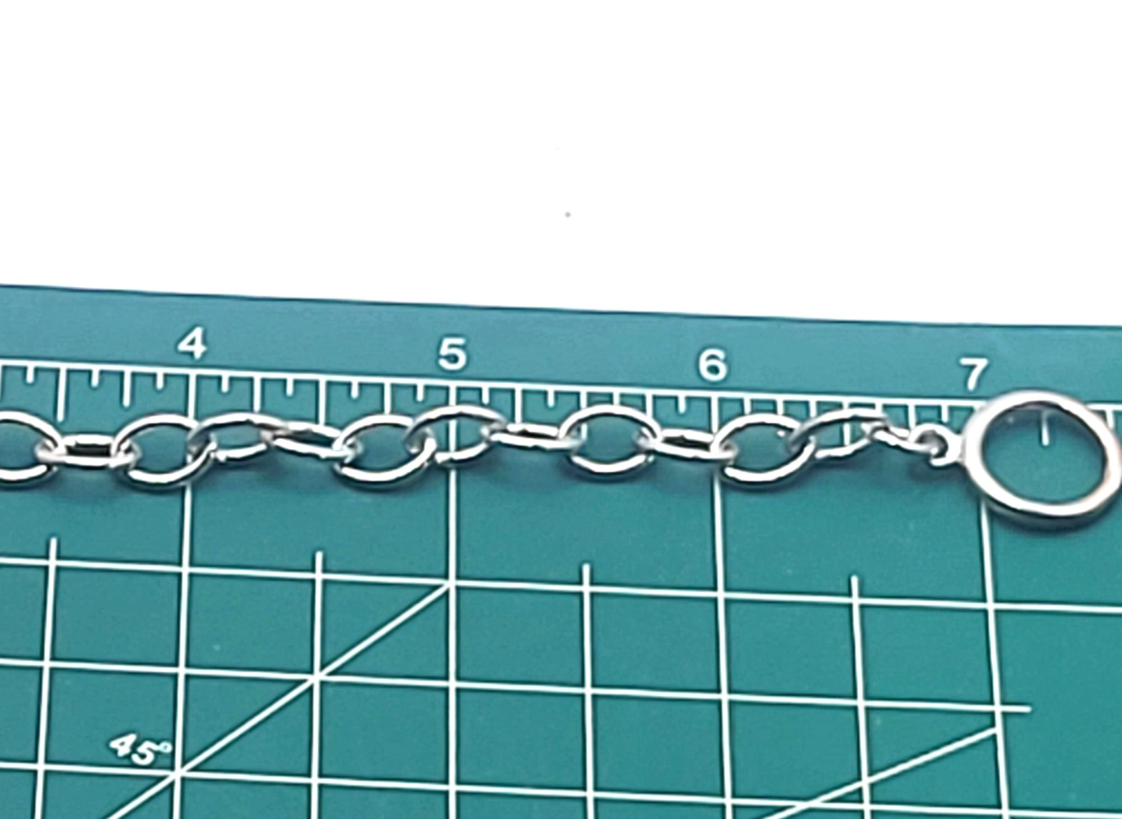 This sterling silver bracelet is approximately 7.5″ long with a rolo link.  It has an approximate 1″ sterling silver shiny, flat heart dangling from the end with a toggle-style clasp.  The bracelet appears to have manufacturer-applied protective tarnish-resistant coating, to keep it shinier for longer!  Auth. Code: 22962/hh