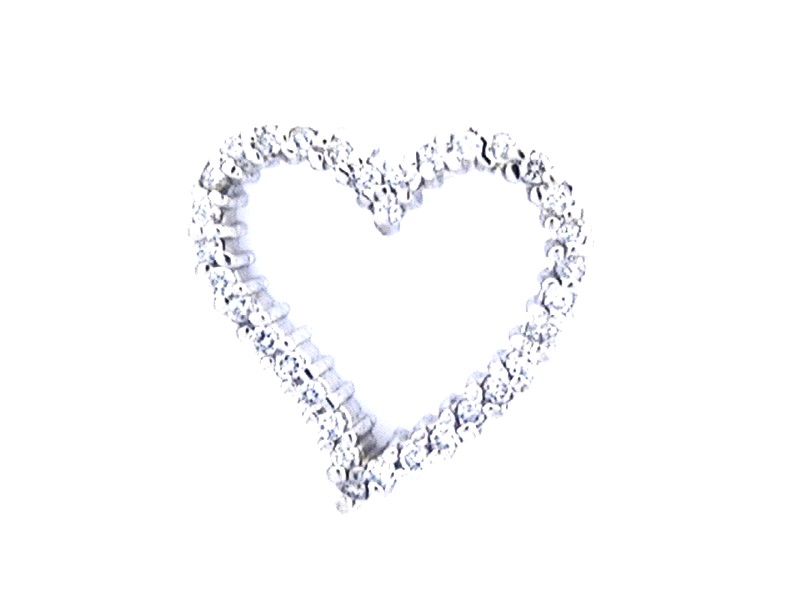 This is a 14 karat white gold heart-shaped pendant, set with .66 carats of round, brilliant-cut, I color, SI2-I1 clarity diamonds and two hidden bails that can accommodate an approximate 2.75mm wide chain. The heart is approximately 3/4" in diameter and has a curved sway and open center. . Admin: G11241/16ett