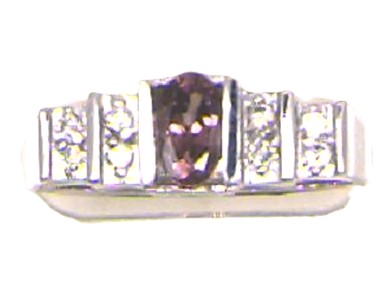 This is a 14 karat white gold ring that features an approximate .55 carat oval-cut, tension-set, natural and genuine COLOR-CHANGING garnet with approximately .16 carats total weight of round, brilliant-cut, H, SI2-I1 clarity diamonds on the stepped shoulders that taper to an approximate 2.5mm shank. This ring is US size 7 and can be sized for an additional charge. This item is eligible for appraisal at a discounted rate, from an independent appraiser (with qualifying credentials from GIA) with no affiliation to Bidfair Fine Jewelry. Please contact Bidfair Fine Jewelry for more information on appraisals and sizing. Admin: G11241/6irt