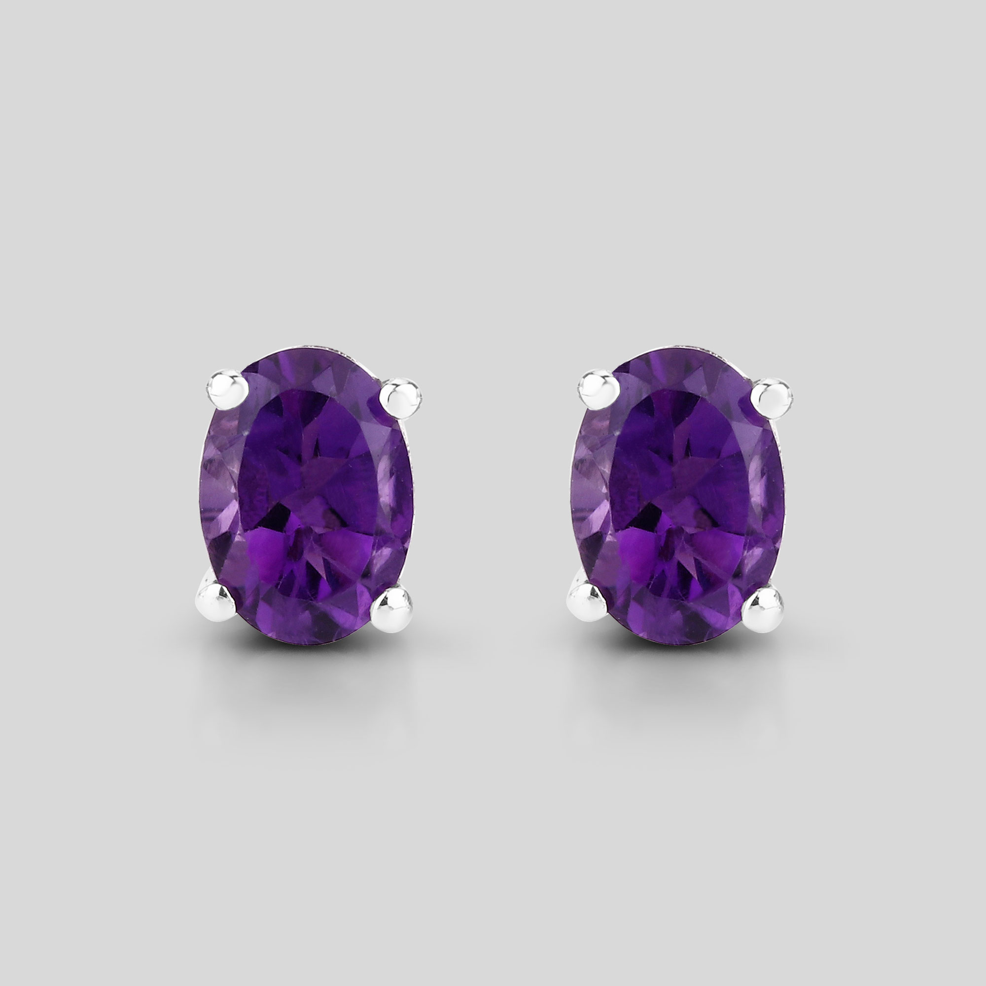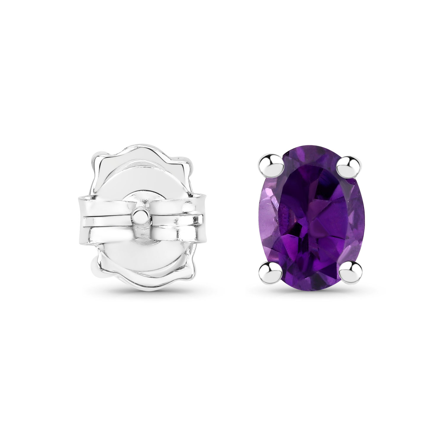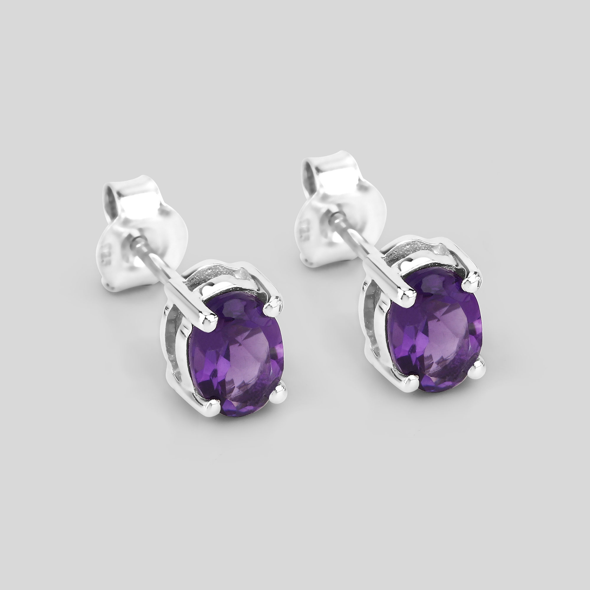 This pair of sterling silver earrings featuring 1.60 carats total weight of oval-cut, prong-set, genuine Amethysts. These are studs earrings that attach to the earlobe with posts and tight friction backs. Admin: 86371/3bg