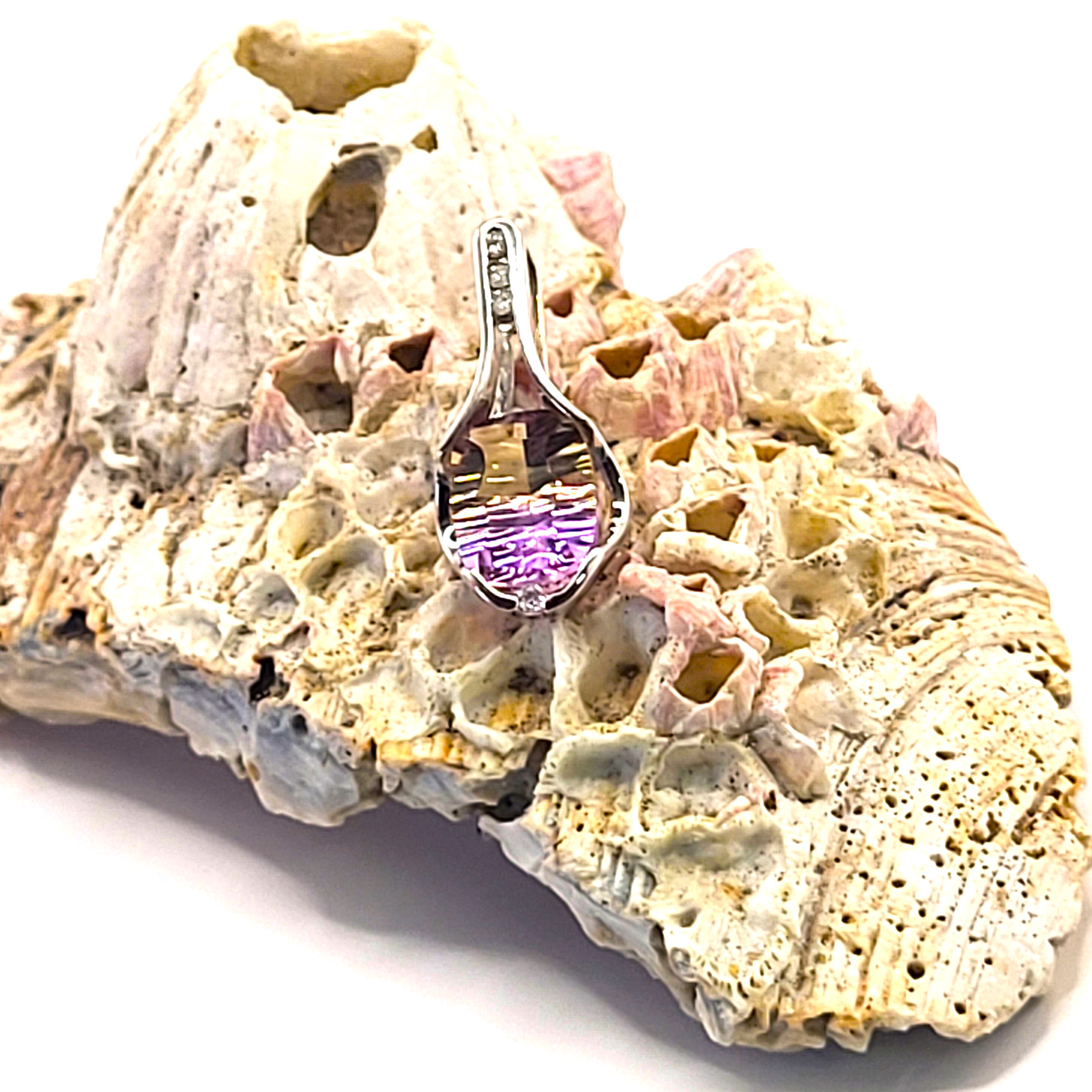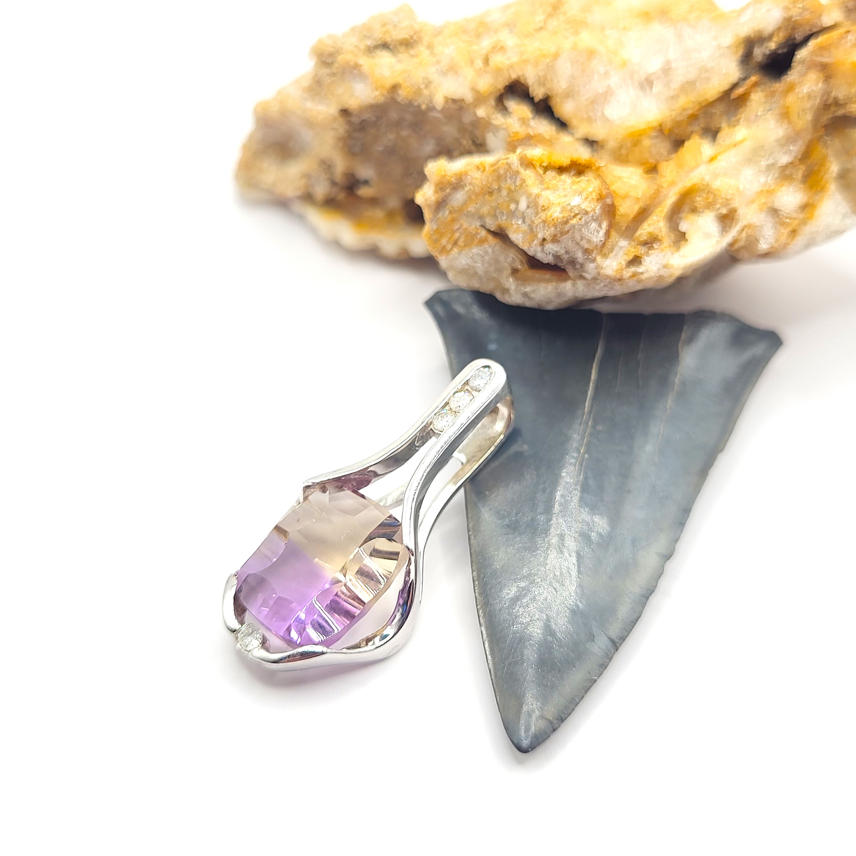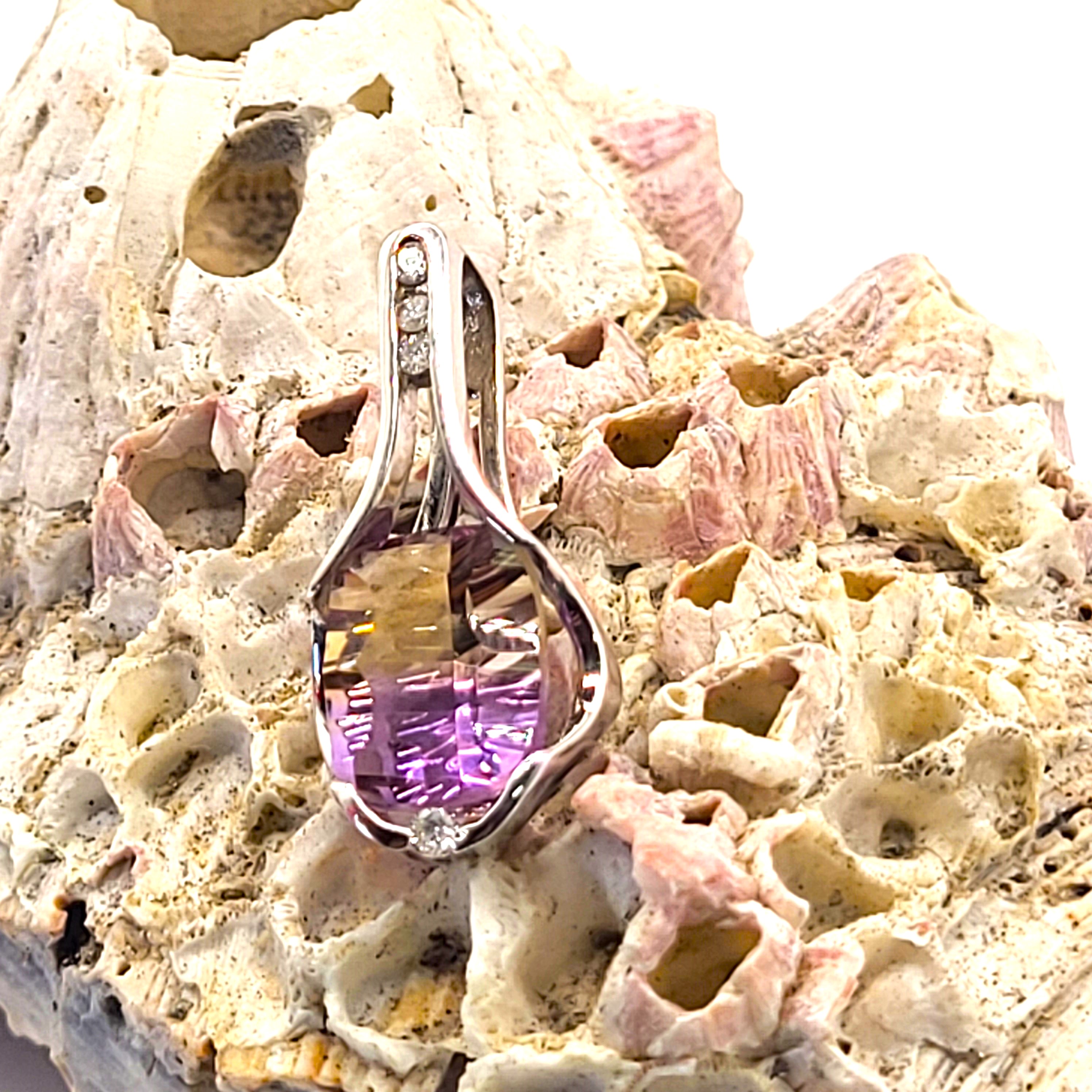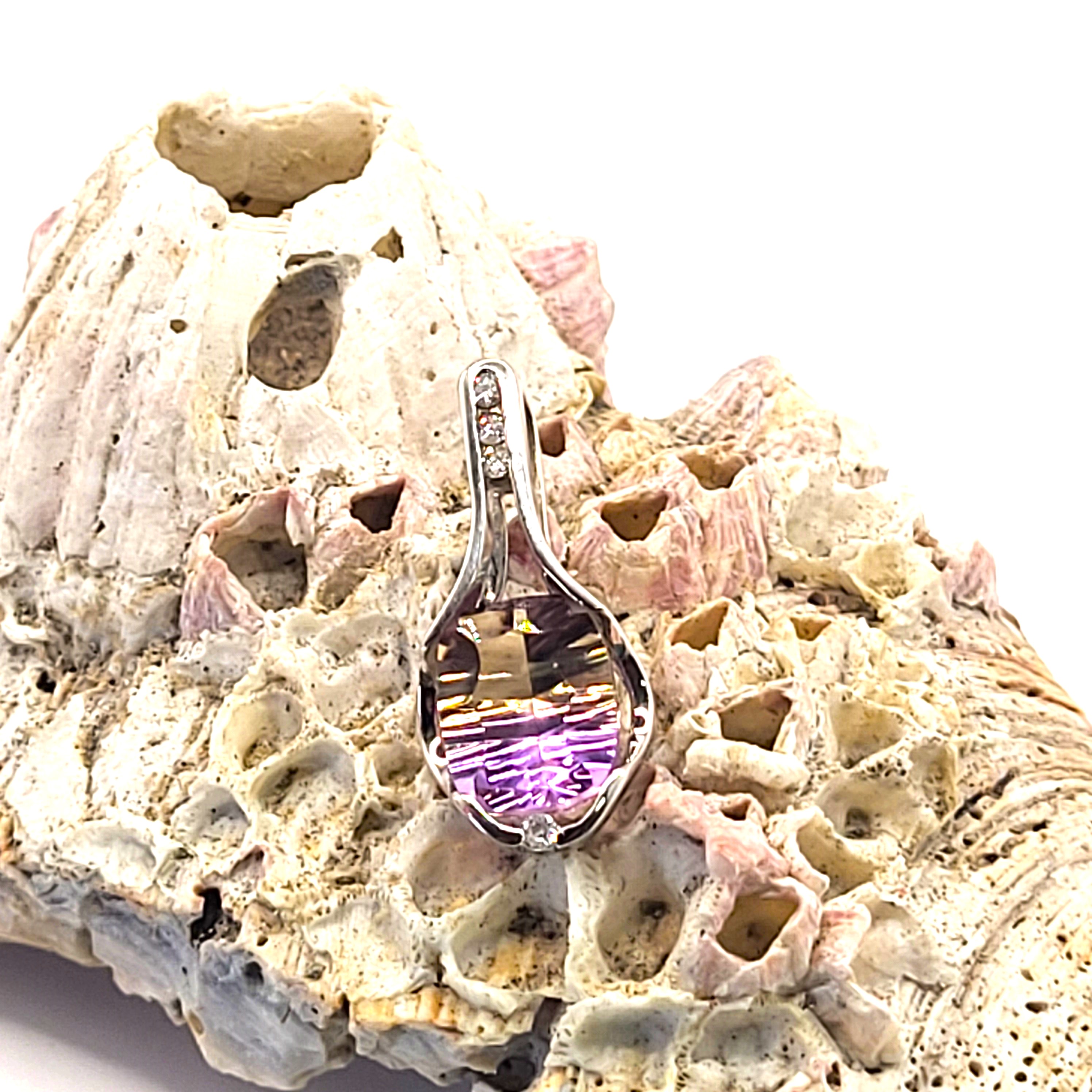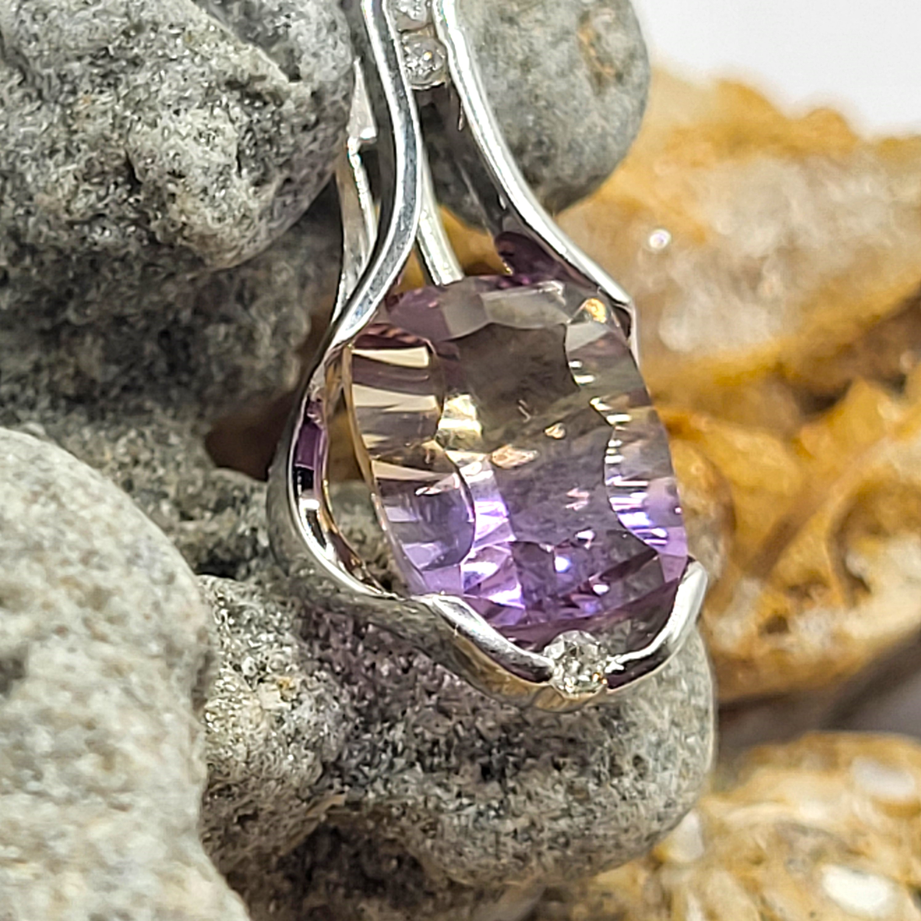 14K White 2.88g Ametrine/4 Carat Bi-color Likely Brazil .08ctw H/SI2