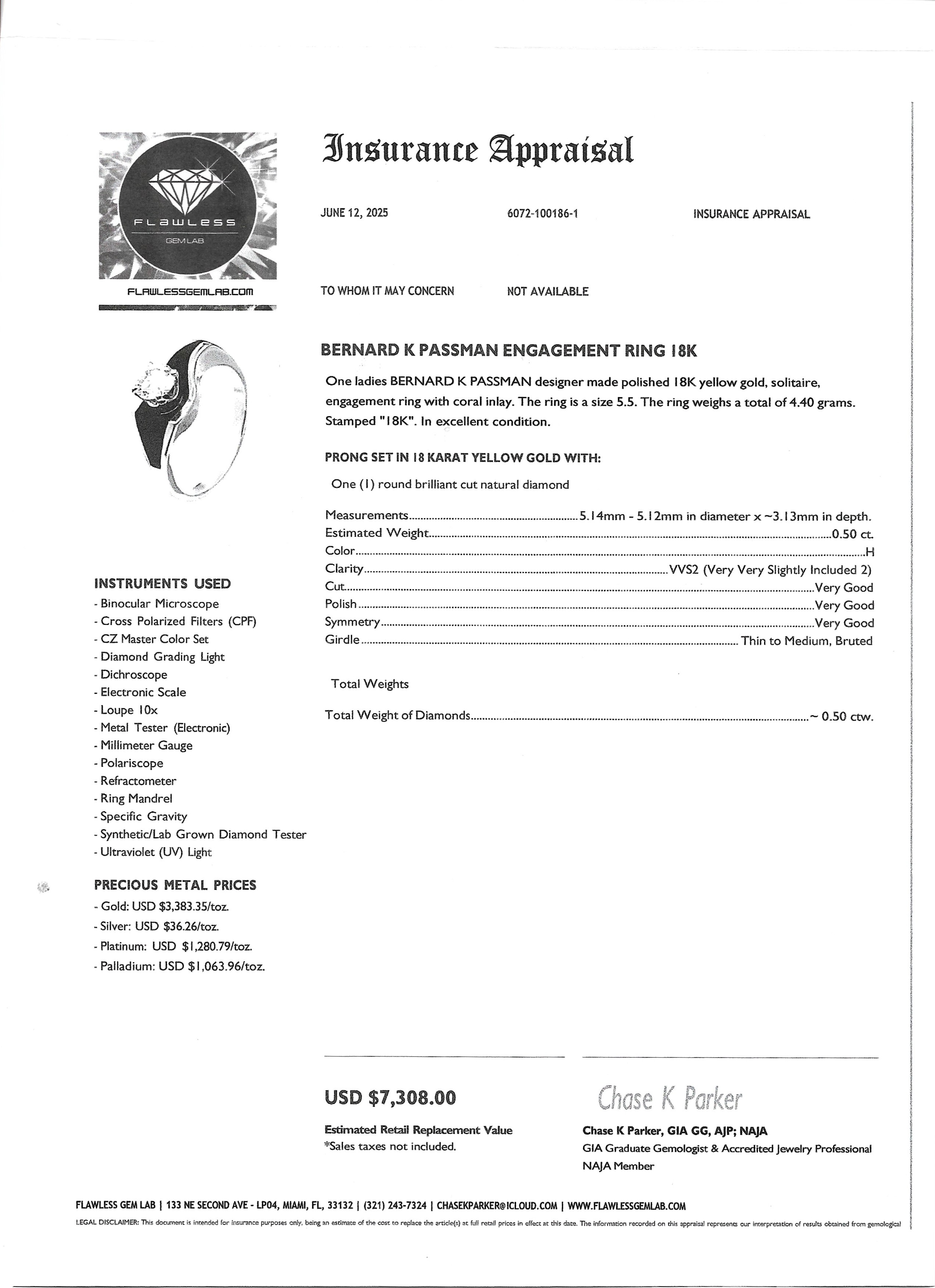 4) The appraisal is provided by the consignor and Bidfair Fine Jewelry is not responsible for any discrepancies therein.
