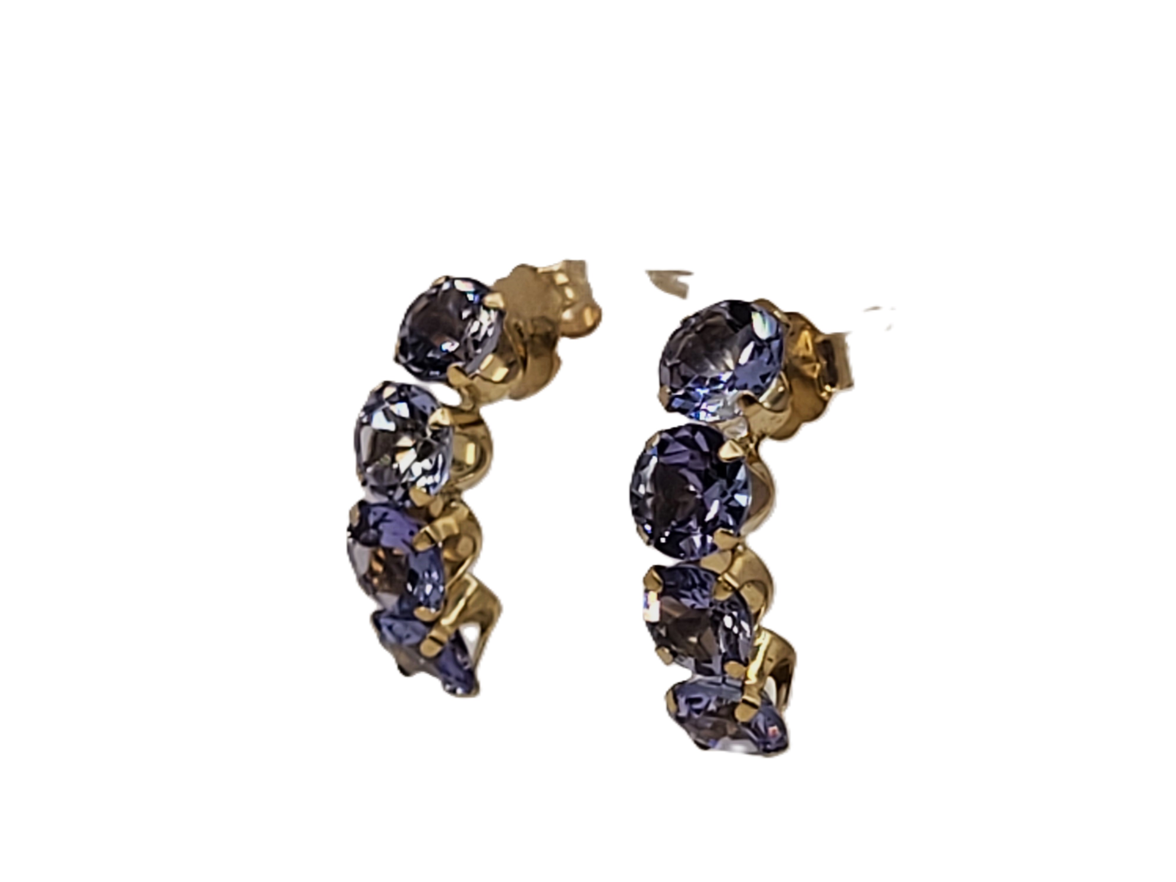 These 14 karat yellow gold earrings feature 2.00 carats total weight of round, faceted, prong-set, genuine tanzanite that are the perfect color for either winter or summer! They are approximately 5/8" long and 3/16" wide and attach to the earlobe with posts and friction backs. Admin:G11241/29brt