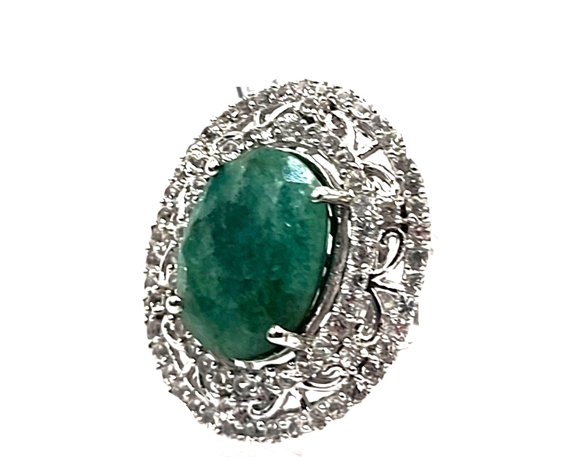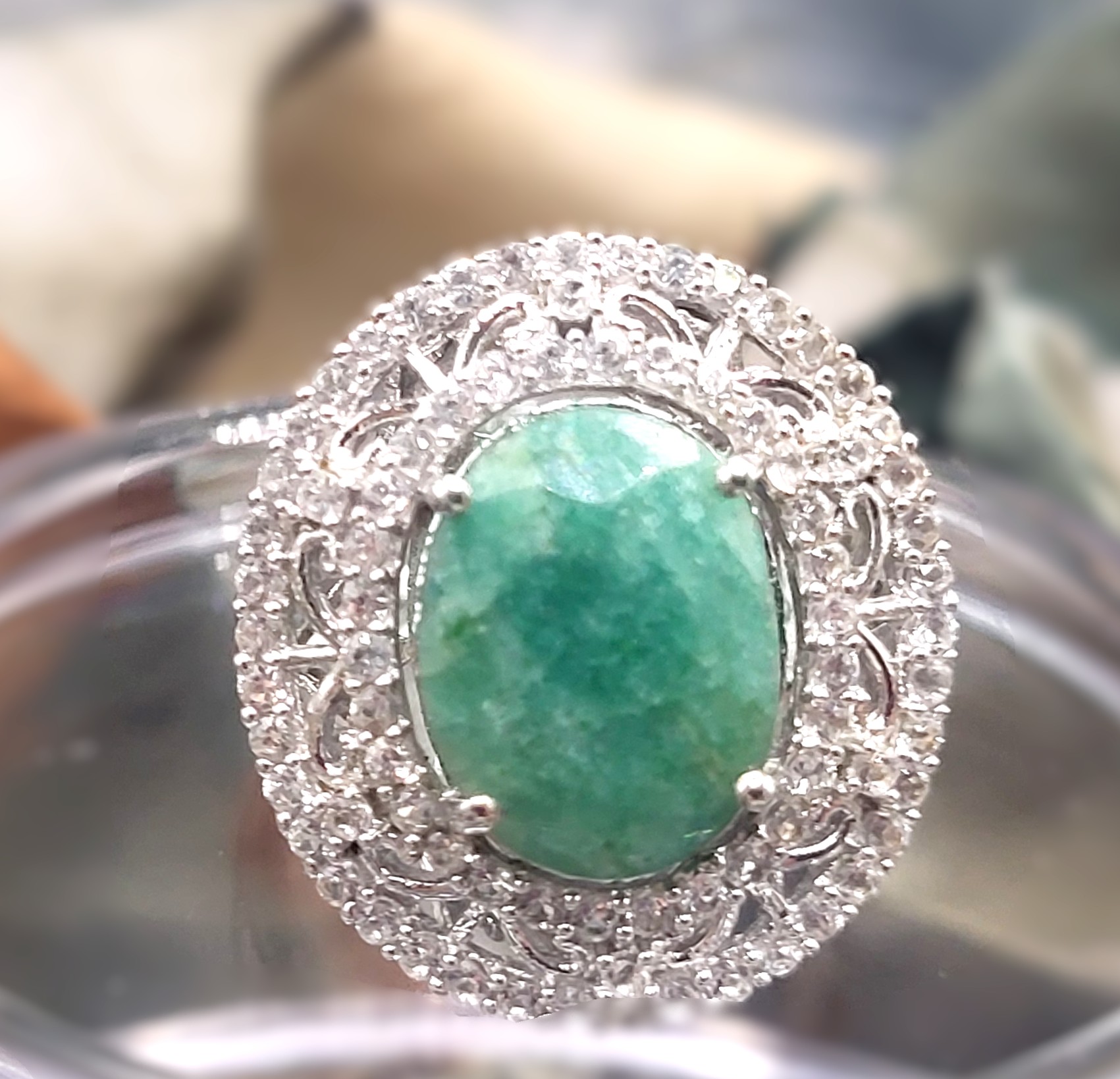 #emeraldfamily#berylstone#emeraldcousin#opaq uestone#sterlingsilver#statementring#clearsapphire #whitesapphire#cruisering#funjewelry#auction