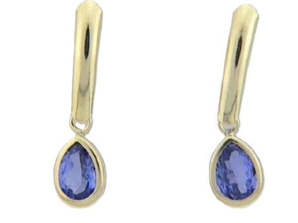 This pair of casually elegant earrings has 1.30 carats total weight of pear-cut, genuine tanzanite and hang approximately 7/8" . They attach to the earlobe with posts and friction backs. Admin: G11241/31lrt