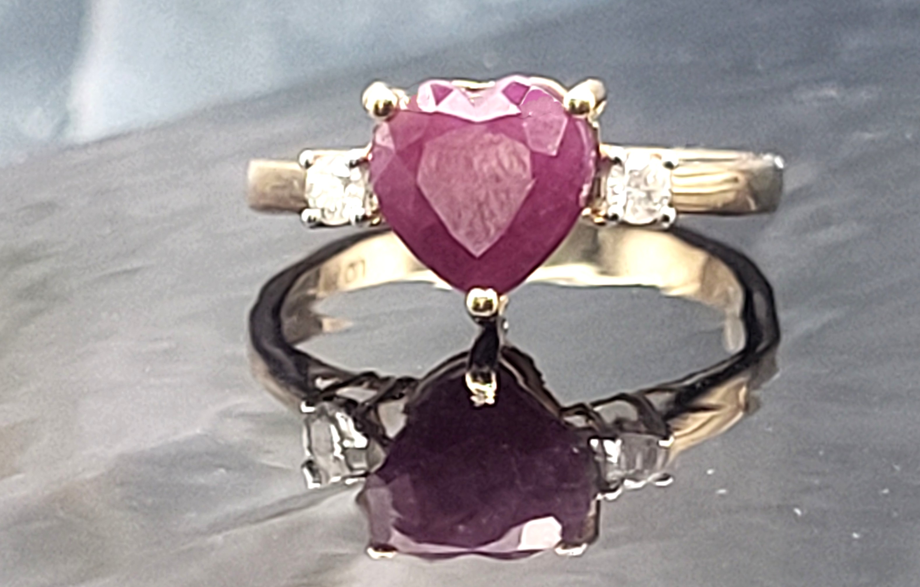 While heart-shaped natural gems are beautiful and romantic, you more often see lab-grown rubies cut into heart shapes, making this sweet ring more of a rarity!