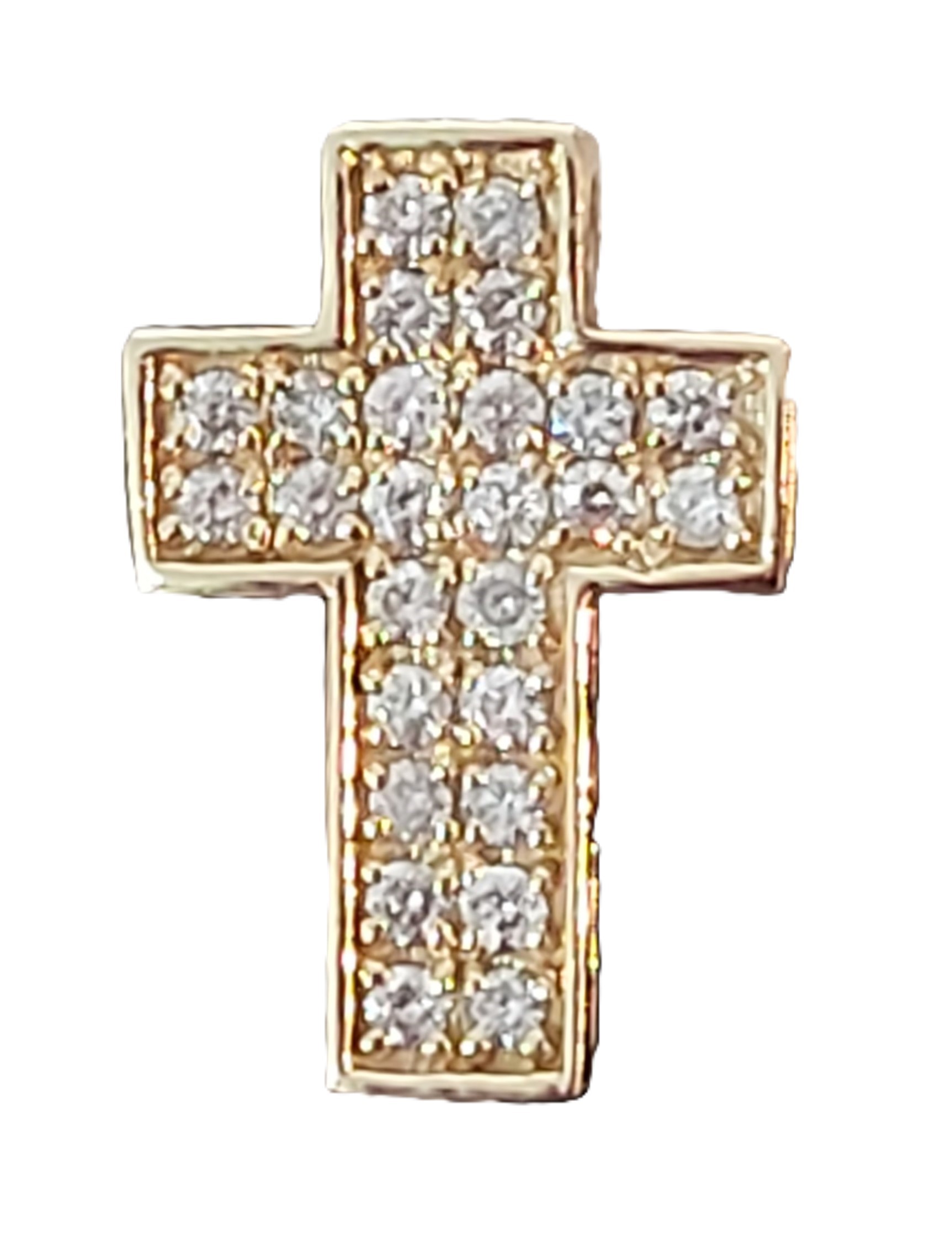 This is a 14 karat yellow gold religious pendant that is set with nearly a carat (.99 carats total weight) of round, brilliant, I color, SI2- I1 clarity diamonds. The pendant is approximately 1"L x 5/8"W x 2.25mm thick. This is a pendant only and does NOT include a chain. This is a brand new item with manufacturer’s approval to sell in a public auction. It is in excellent condition, but may have fine scratches from shipping or storage. Admin: G11241/18tt