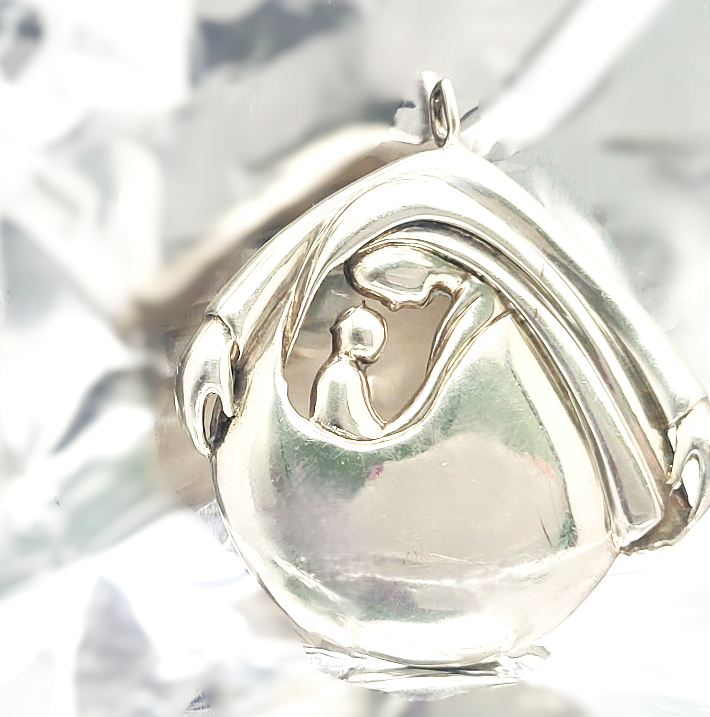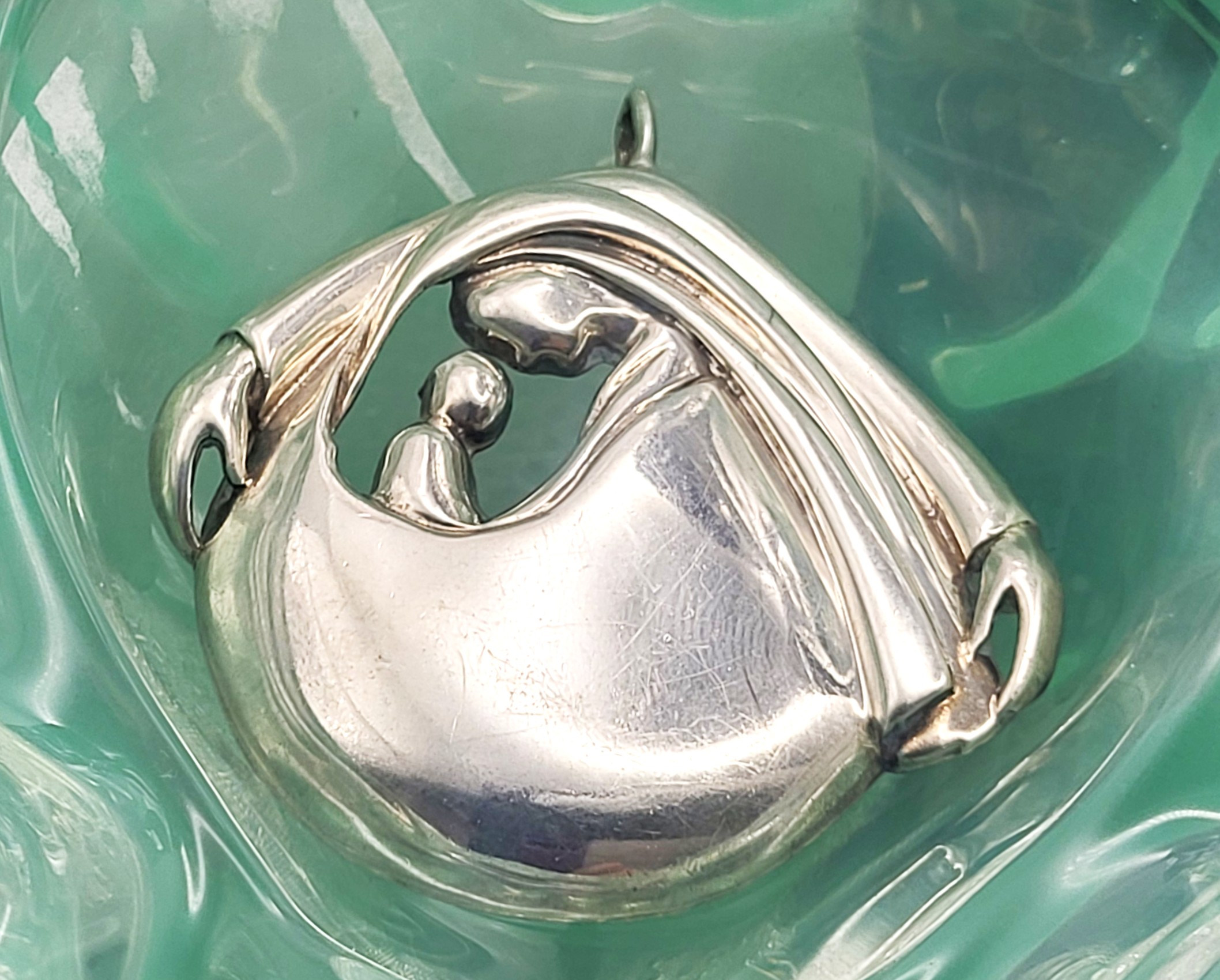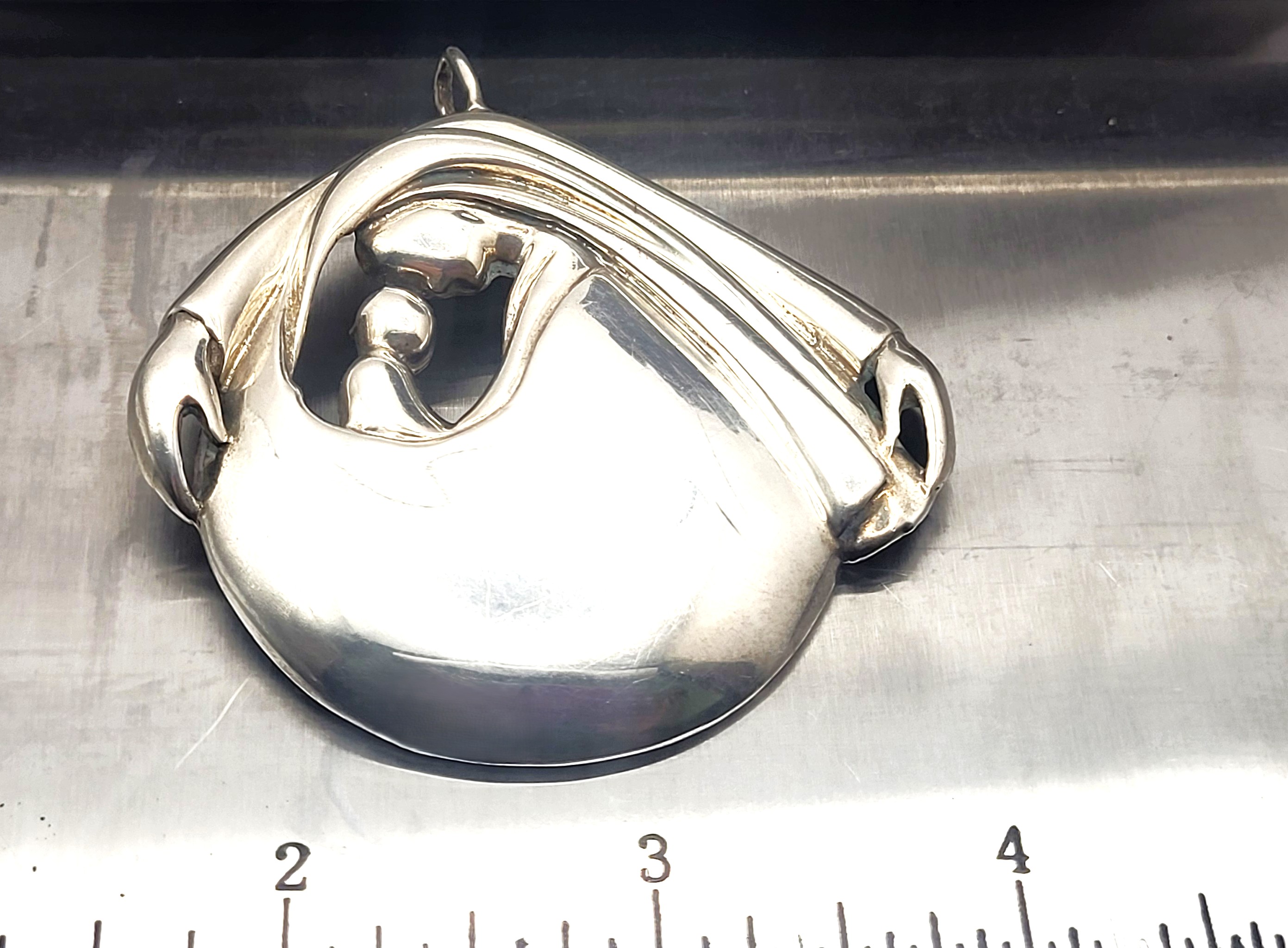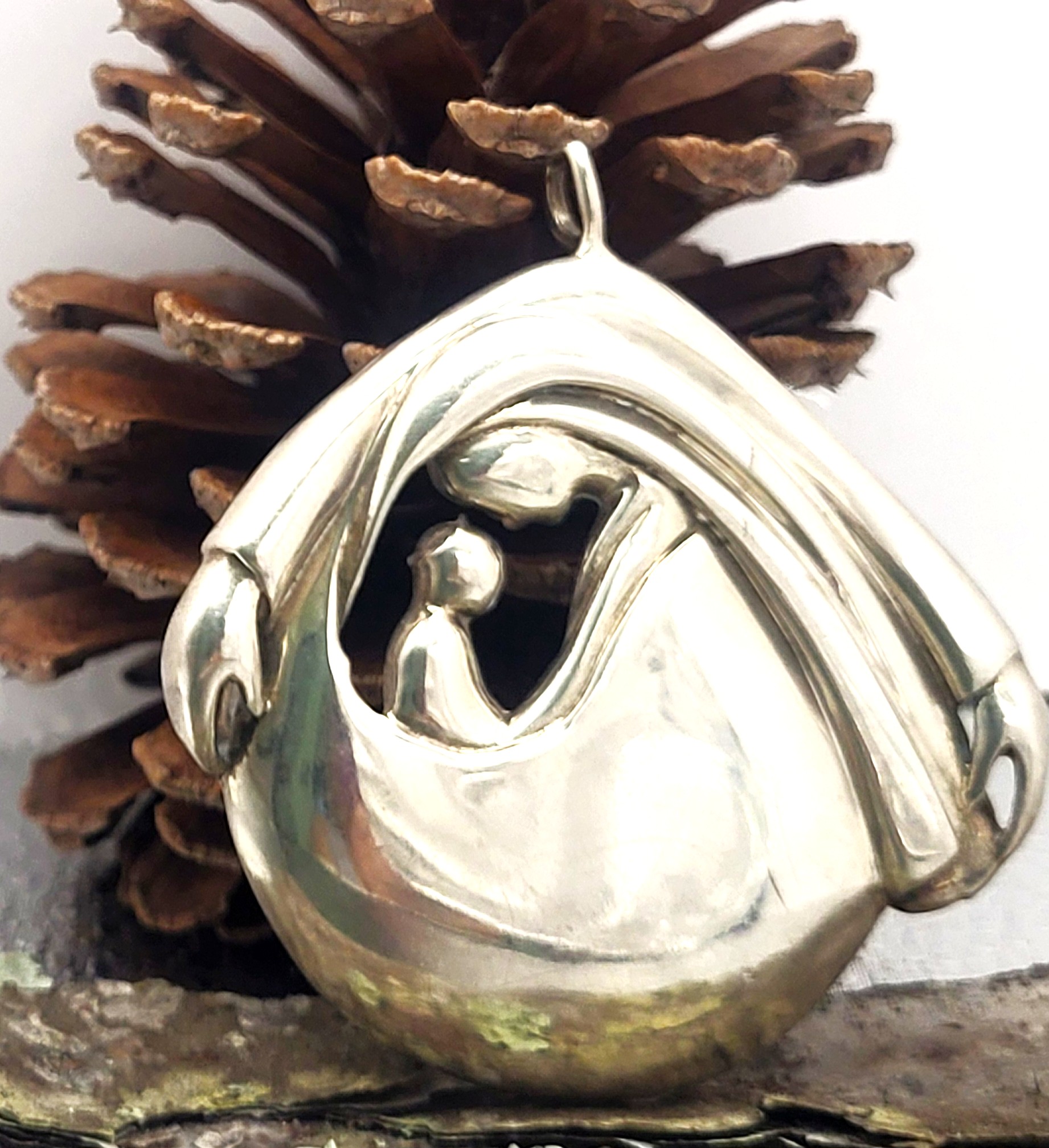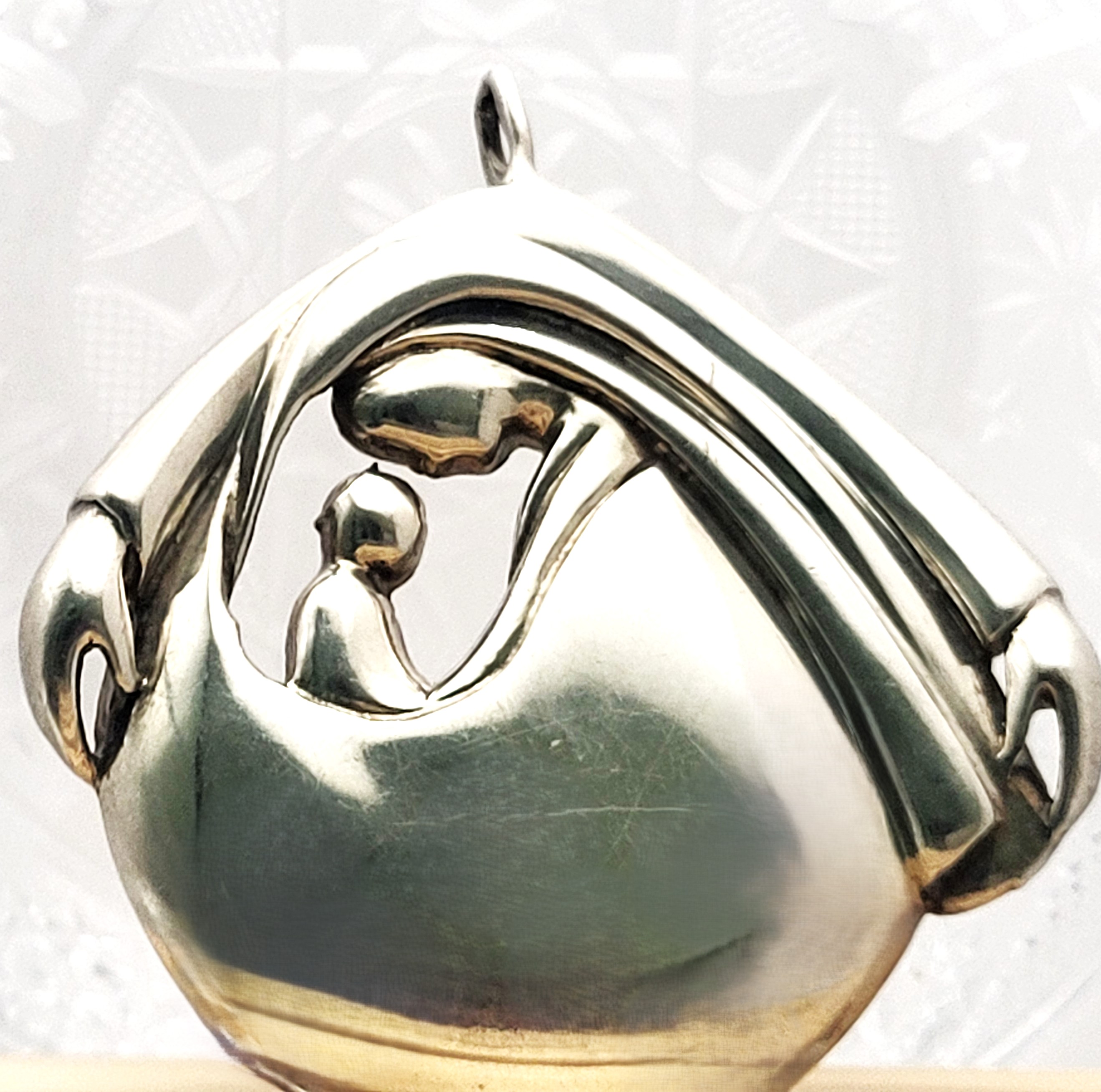 This is just in time for the 30th anniversary of the Sterling silver ornament called "Circle of Hope" by renowned artist, Susan Gorman. Released in 1996 as a limited edition item, this piece is marked as 990. Unknown how many were made in this collection. This ornament measures approximately 3.5" in diameter and has a ring affixed at the top that has an approximate 3.80mm opening for a ribbon or hook or chain. This sterling silver ornament is marked on a tag on the back with "925" the number of the item 990, the year "1996" and the Susan Gorman hallmark ". Admin: Khh/29.brr