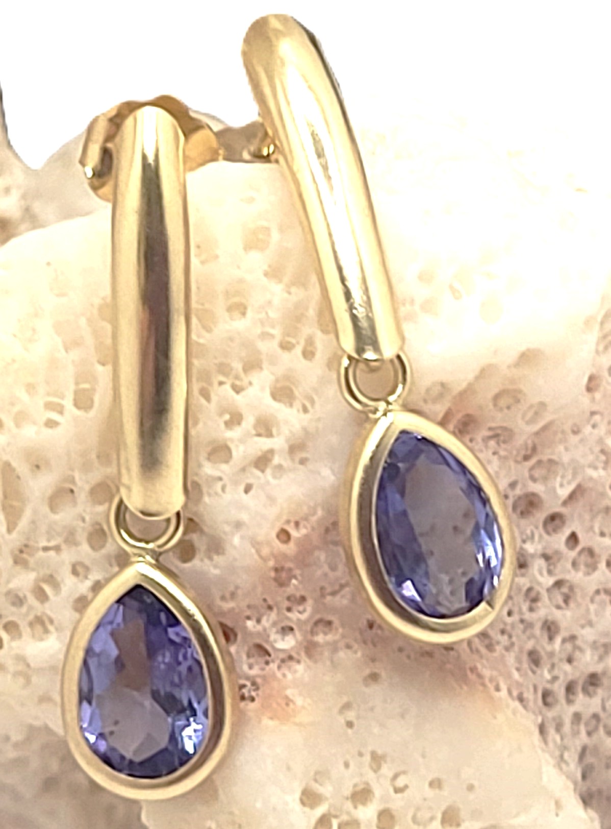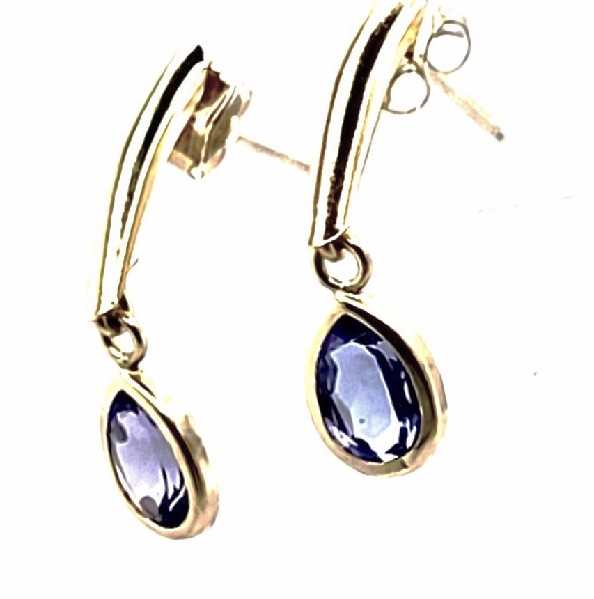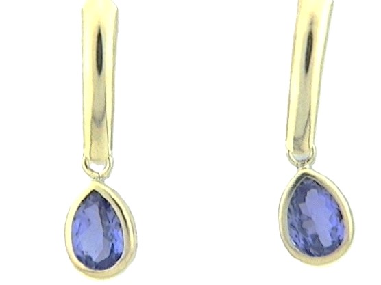 This pair of casually elegant earrings has 1.30 carats total weight of pear-cut, genuine tanzanite and hang approximately 7/8" . They attach to the earlobe with posts and friction backs. Admin: G11241/31lrt