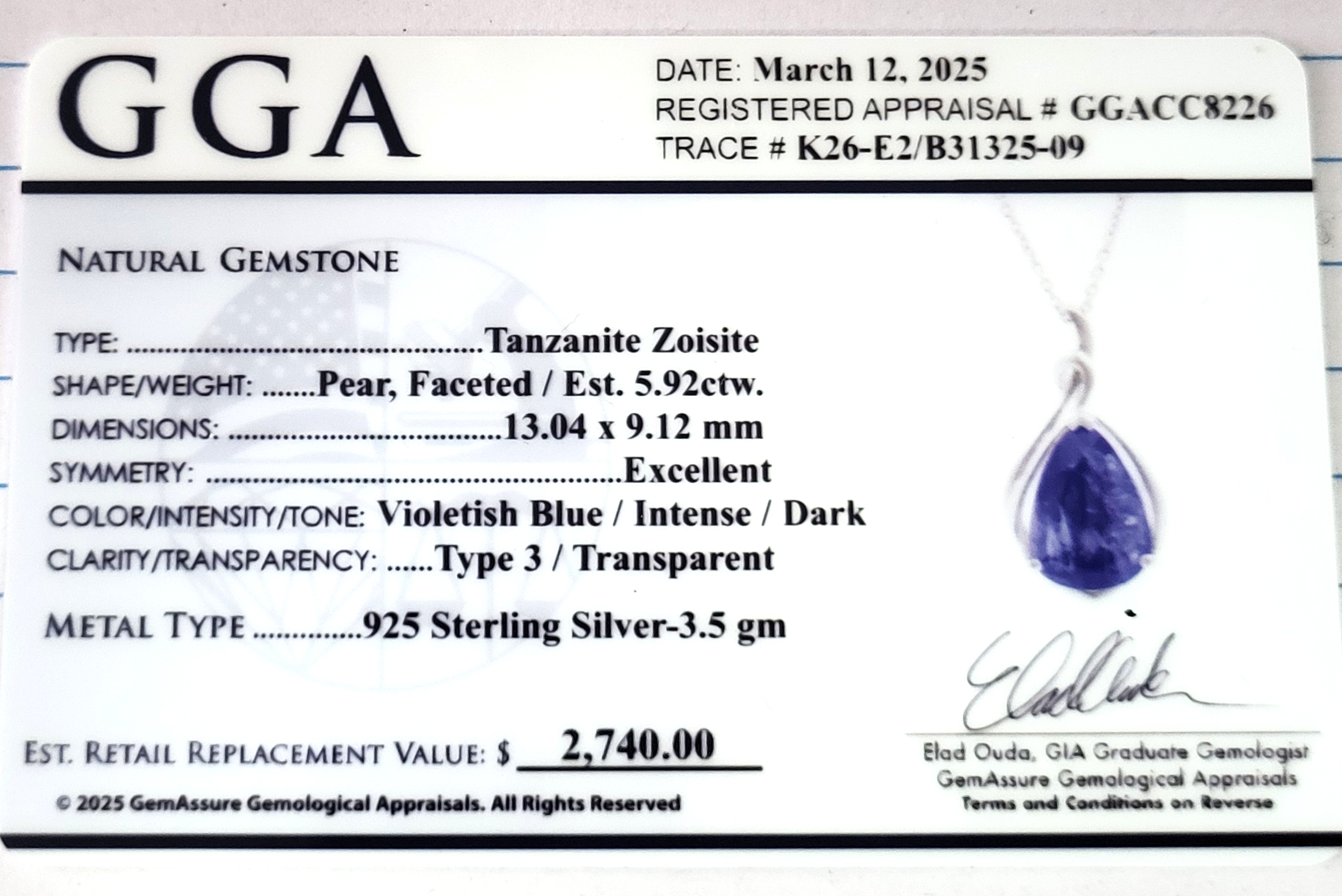 Main Gemstone: Genuine Tanzanite (Zoisite)