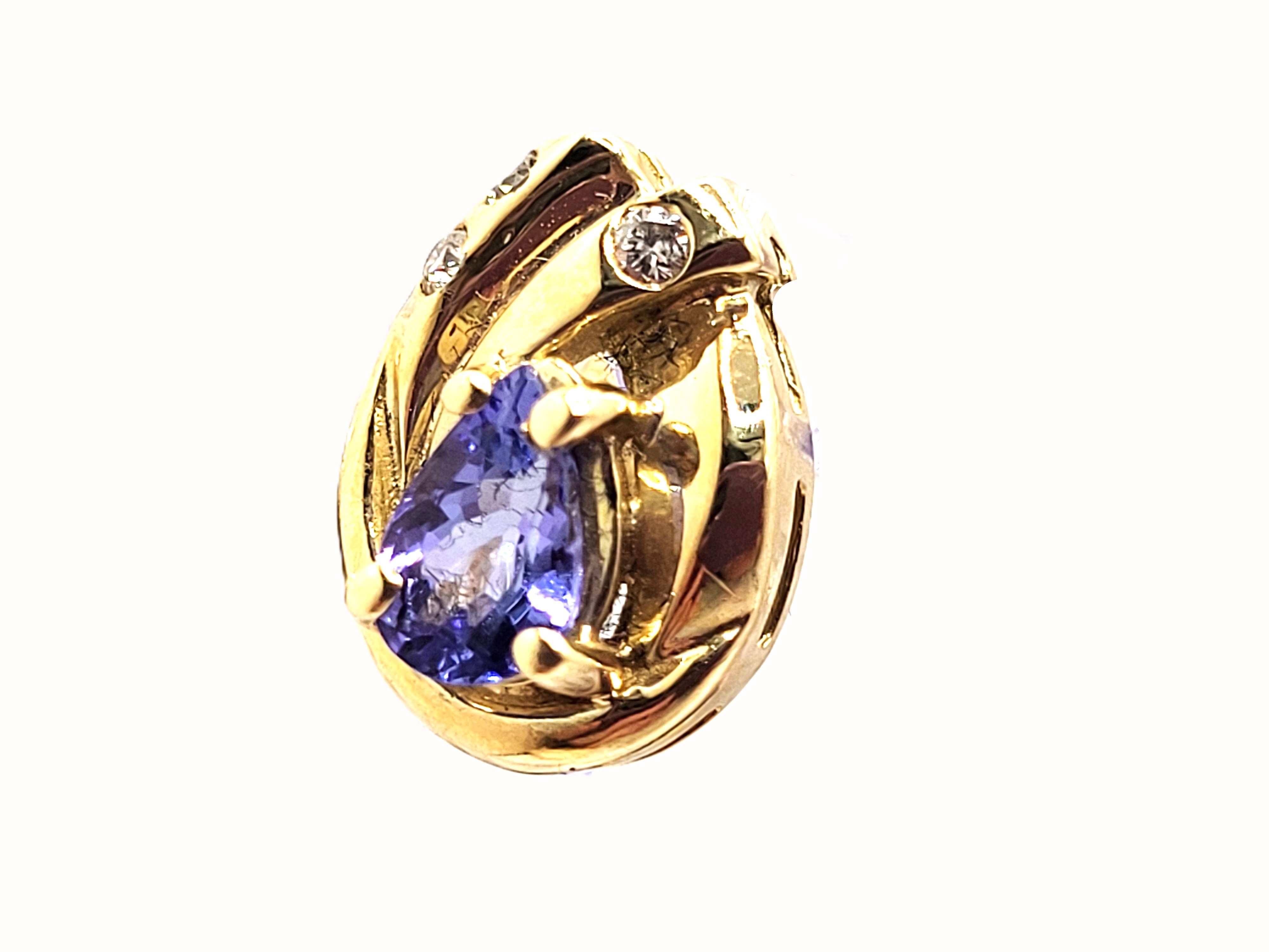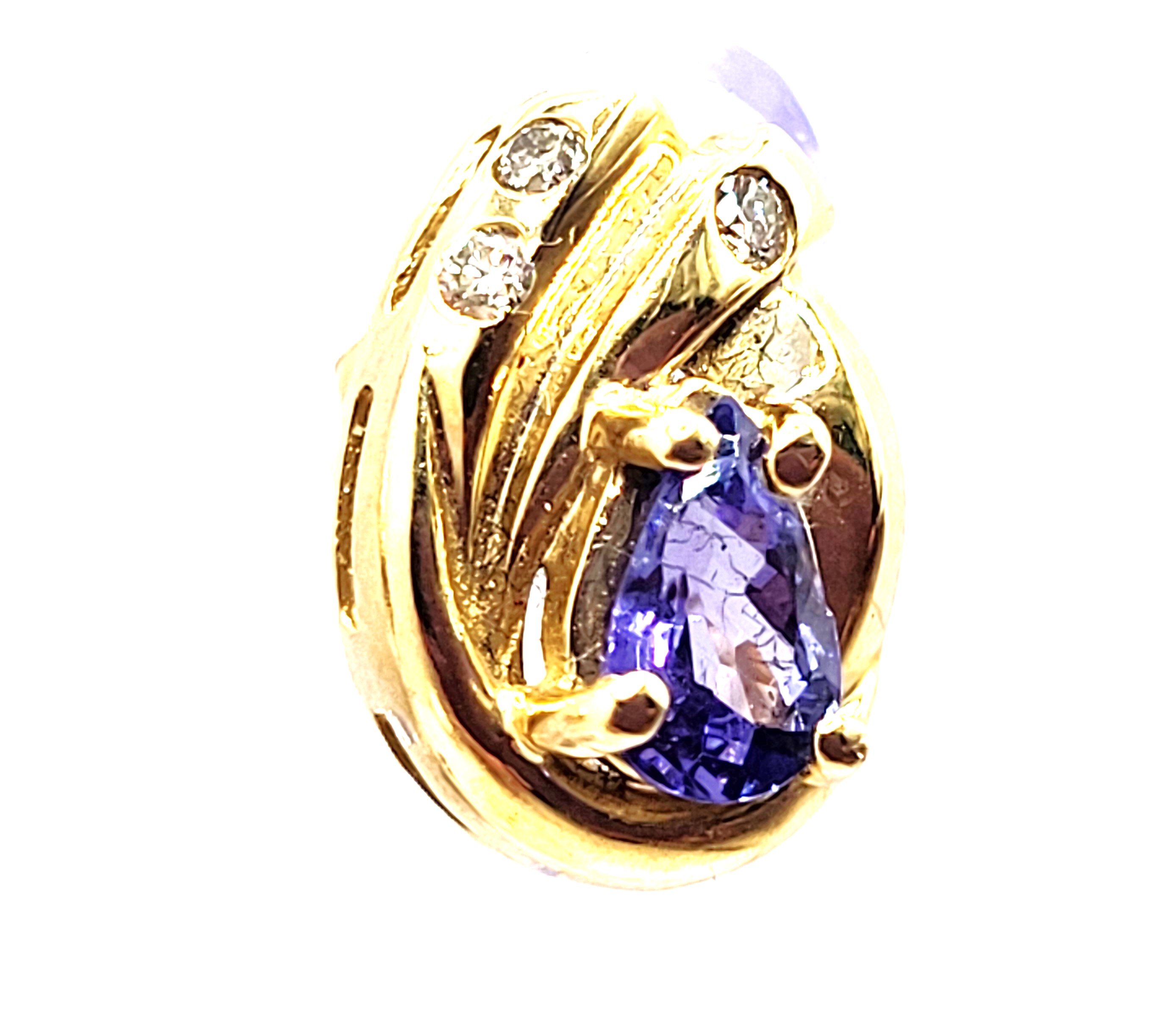 This pair of 14 karat yellow gold earrings are ones you will want to (and can) wear everyday! They feature .80 carats total weight of pear-cut, prong-set, genuine purple tanzanites with .09 carats total weight of round, brilliant-cut, H-I color, SI2-I1 clarity, flush-set, accent diamonds. The earrings are approximately 5/8" long, 3/8" wide, 6mm deep (including the gemstone), and they attach to the earlobe with posts and friction backs. Admin: G11241/34nlt