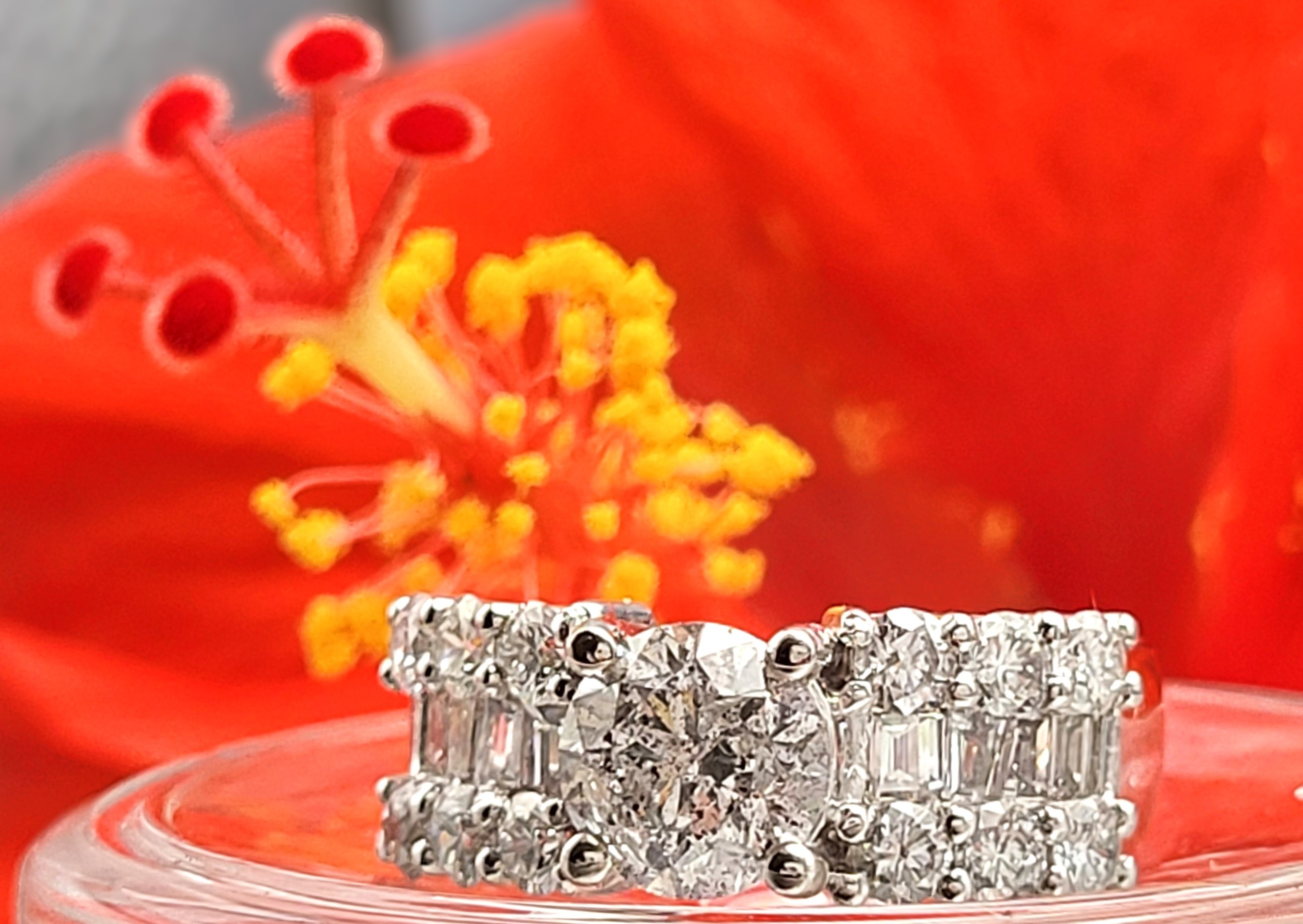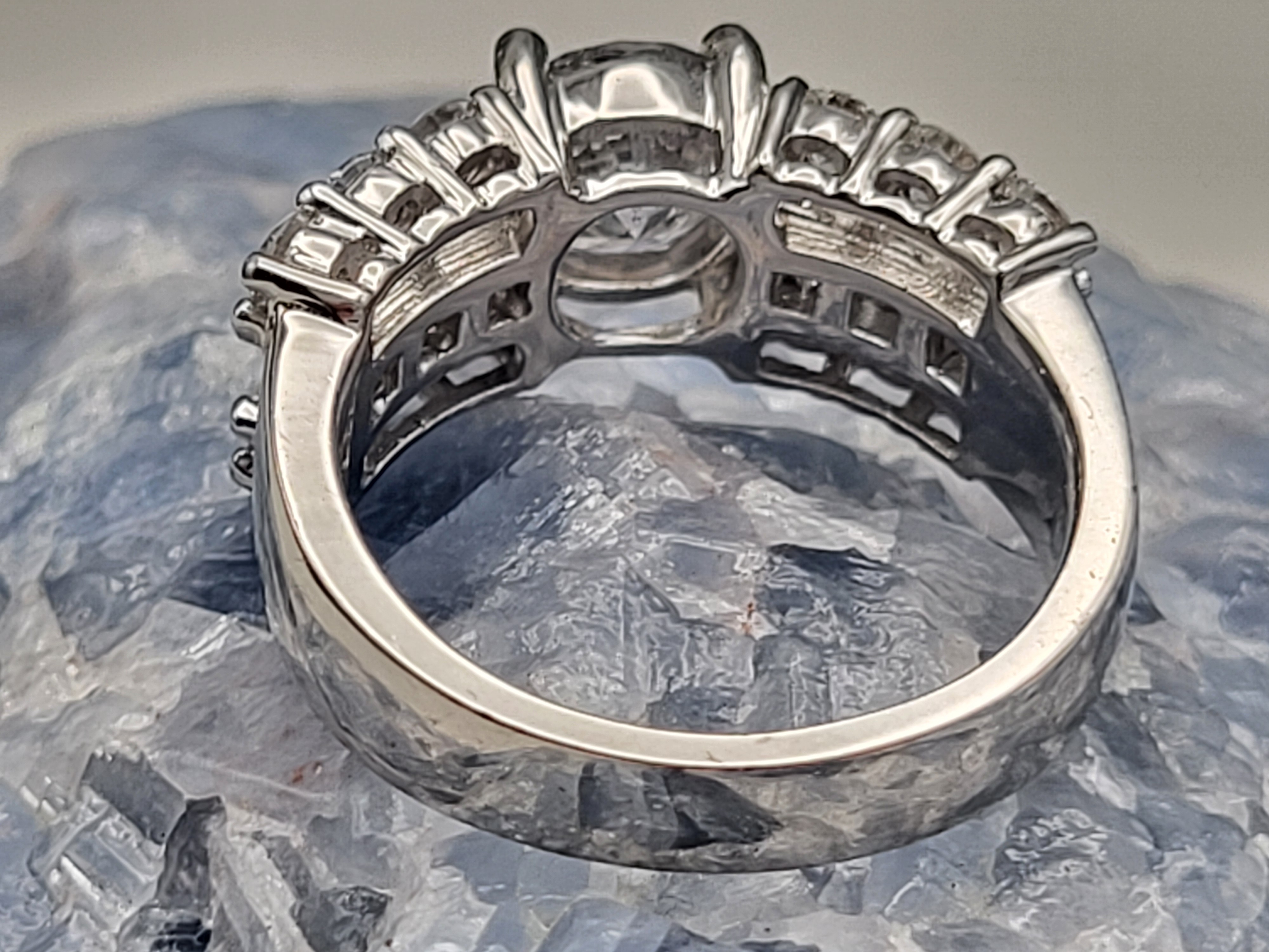 (This ring is perfect for the woman who has busy hands! The low profile design prevents some of the hard hits rings take by simply doing everday chores, and the very strong platinum lessens the chance of serious damage when hits are unavoidable!)
