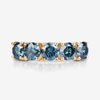If blue diamonds formed 4 times deeper within the earth, now that they are out, shouldn’t you take them out and show them off four times more often? This 14 karat yellow gold ring is stunning and features 1.83 carats total weight of round, brilliant-cut, blue color, I1 clarity diamonds that are prong-set in a row that shoulders up to a polished shank, tapering to 2.5mm. The ring is US size 7. See below for sizing details and other information.