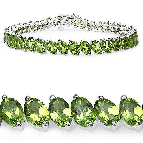 This sterling silver bracelet offers a lush green glow that evokes nature’s vitality with 19.35 carats of genuine, oval-cut peridot. Each of the 6x4mm peridots is prong-set in a gemstone basket setting and represents one hinged link. The bracelet is protected with a tarnish-resistant, rhodium finish and it is 7.5" long. It closes with a hidden box clasp and 2 safety clips. Oh, what a bold tribute to August birthdays and fresh elegance. AdminCode: Q/bni