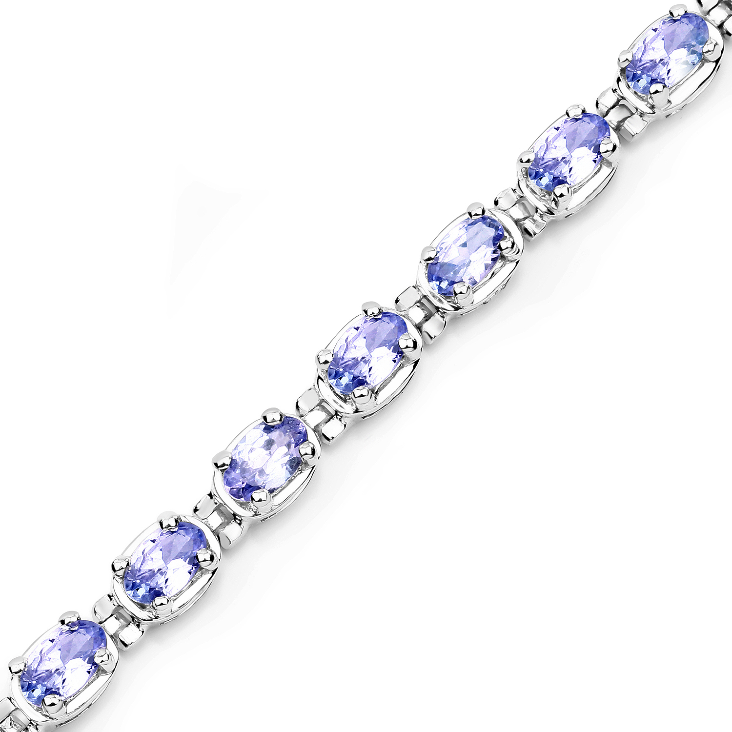 A cascade of deep violet hues, this 6.00 carat genuine tanzanite bracelet is set in .925 sterling silver with a tarnish-resistant rhodium finish. Its cool-toned brilliance evokes twilight skies and timeless sophistication. The tanzanites are prong-set on individual, hinged links and measure 7x5mm each.The bracelet is 7-7.25" long with a lobster clasp. AdminCode: Q/bgi