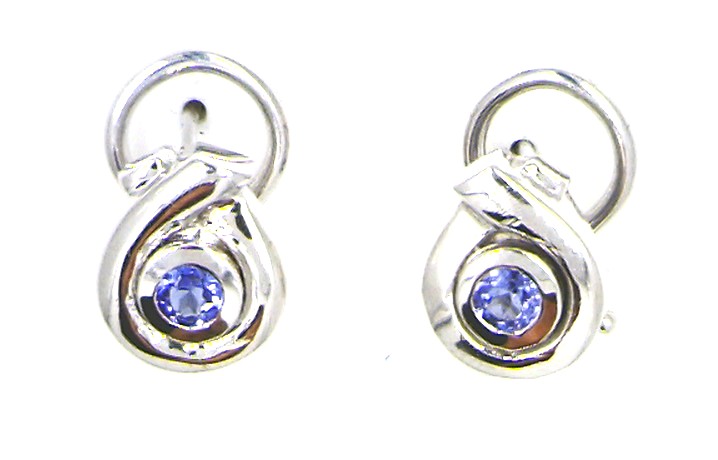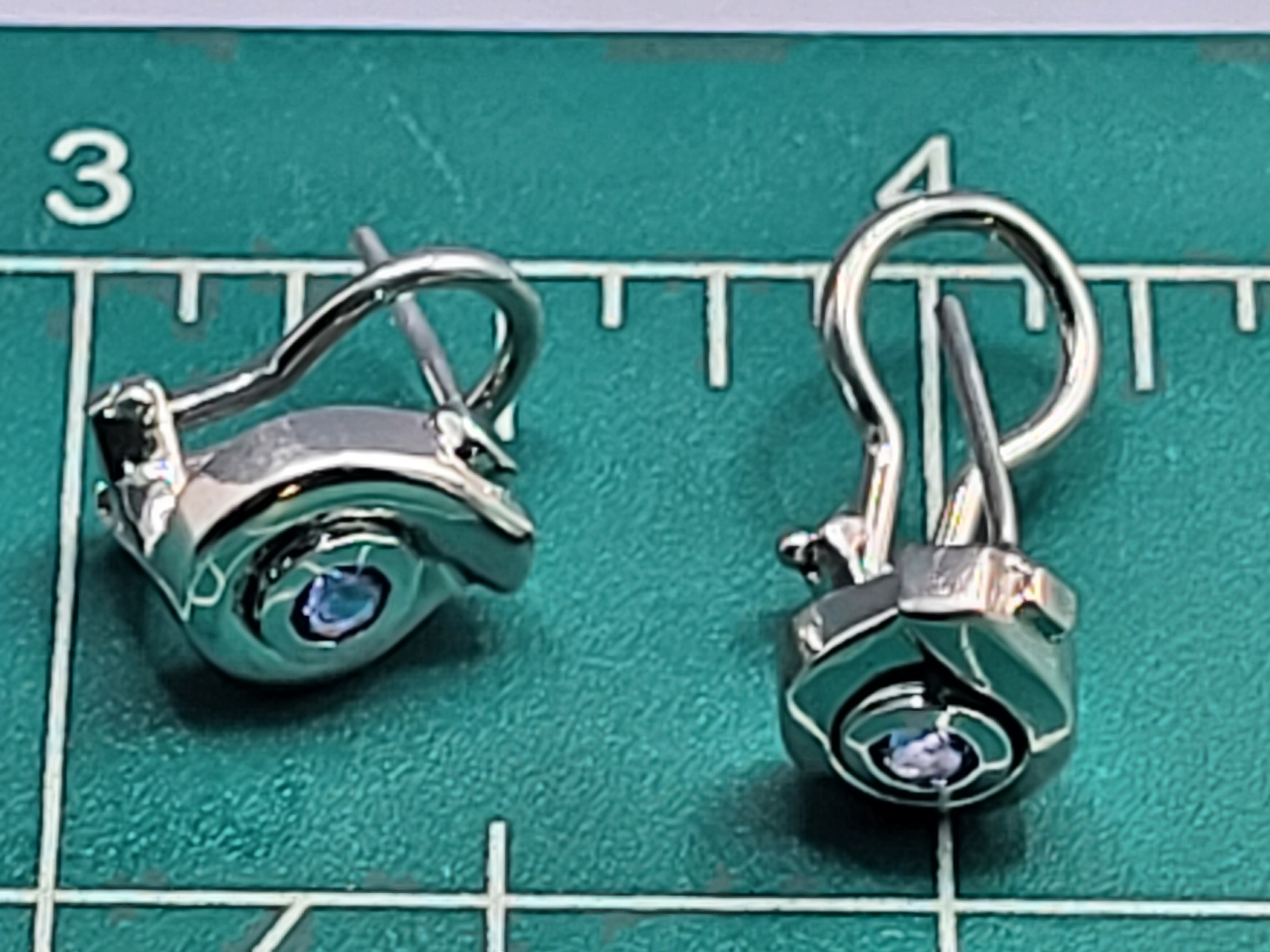 This pair of earrings have "stand-out beauty" on their own, but they also carry a compassionate symbol of awareness with the overlapping ribbon design. They are crafted in 14 karat white gold and feature .30 carats total weight of round, faceted, bezel-set, genuine tanzanites. The earrings are approximately 3/8" long and attach to the earlobes with posts and outstanding Omega backs. So, whether you are wearing these earrings for their natural beauty, or to support Alzheimer’s Disorder Awareness, you will certainly love them. They are also eligible for appraisal at a discounted rate, from an independent appraiser (with qualifying credentials from GIA) with no affiliation to Bidfair Fine Jewelry. Please contact Bidfair Fine Jewelry for more information on appraisals. Admin: G11241/27ltt