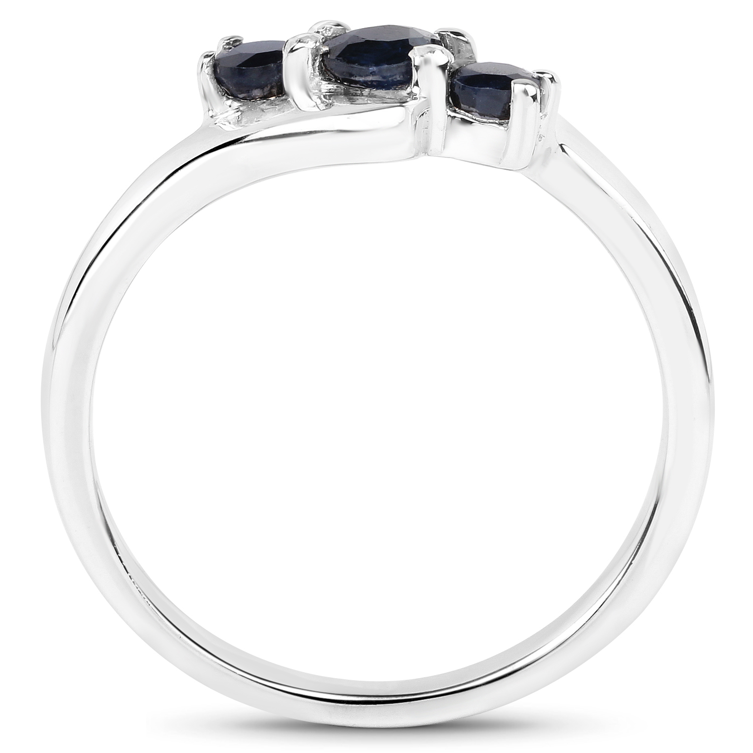 This 14 karat white gold over sterling silver ring is fashioned in a bypass and a three-stone style. Featuring .61 carats total weight of round, faceted, genuine black sapphires that can easily represent your past, present, and future, with polished bypass swirls. The ring is US size 7.5. Admin: K86371/13br
