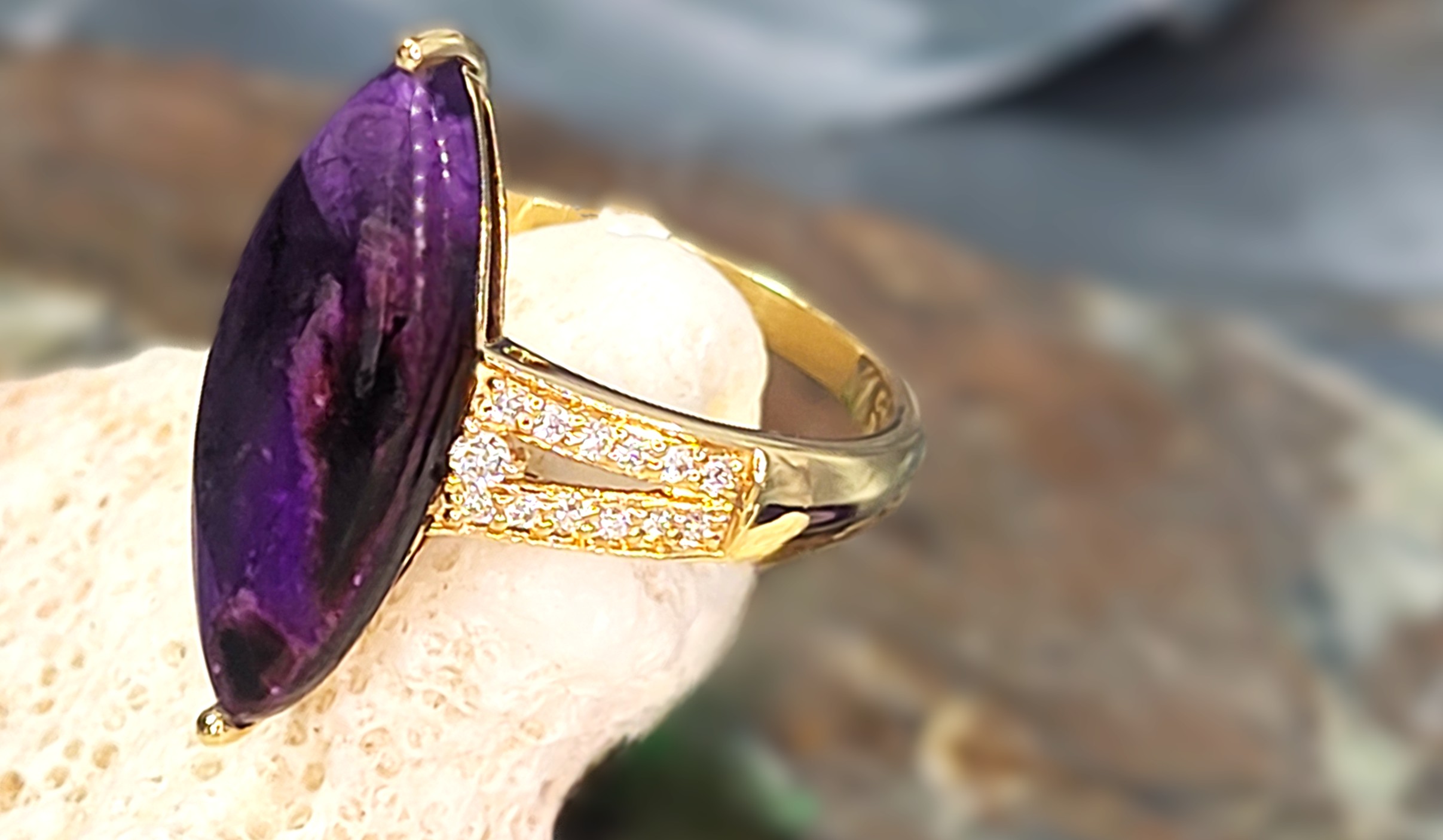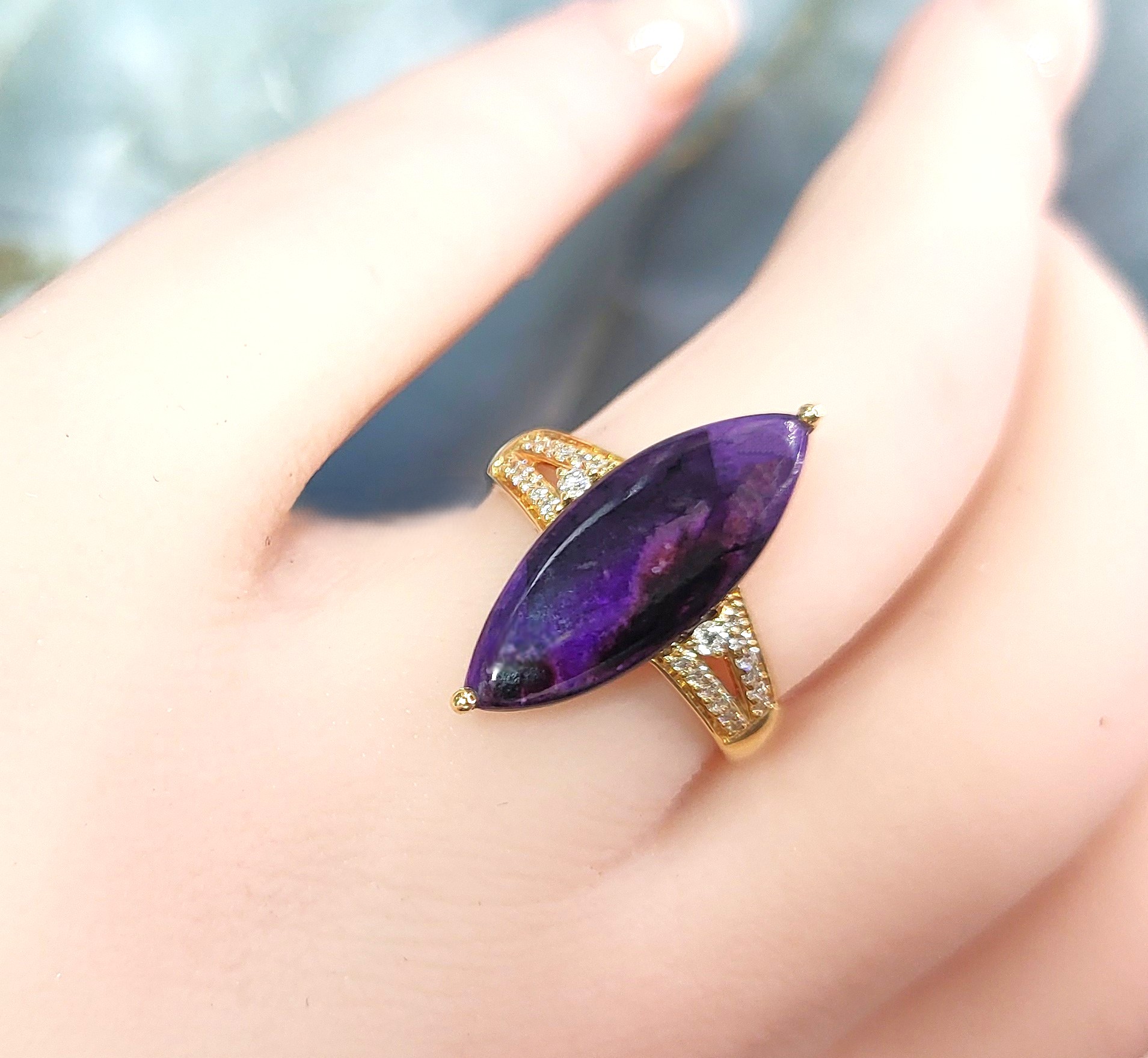 #Auction13 #SugiliteGem #NavetteRing #DiamondAccent #FineJewelry #LuxuryRing #18KGold #BidFairTreasures #CollectorGem #PurpleElegance