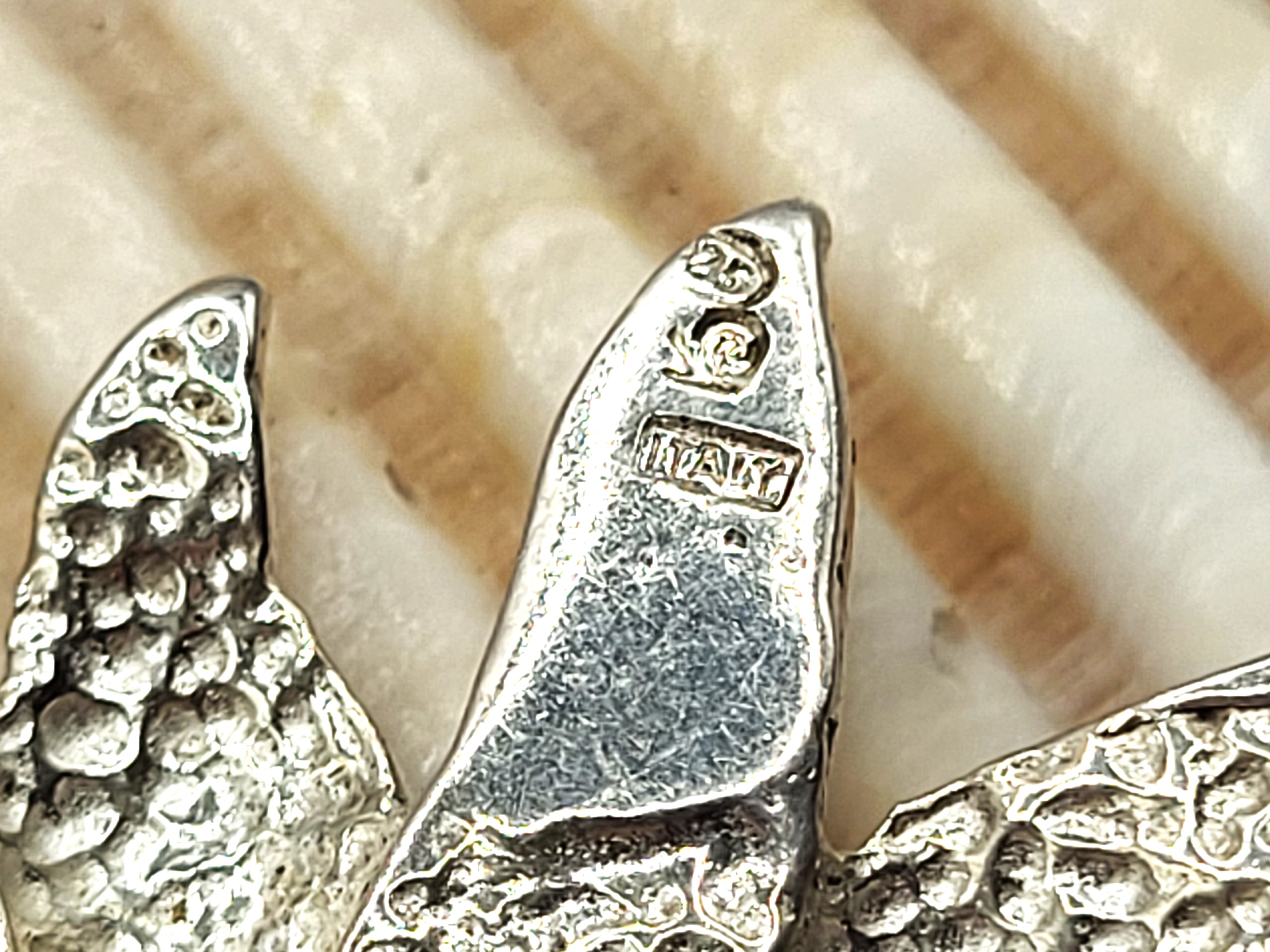This is a beautiful sterling silver (.925) pendant, depicting a sunflower with full petals in the wind. The pendant is approximately 1.75" diameter and is dimensional with textured and polished rays. The pendant has a large jump ring. The hallmark is located at the end of one of the petals, and appears to be a "swan". Admin: KF3312/16hhh