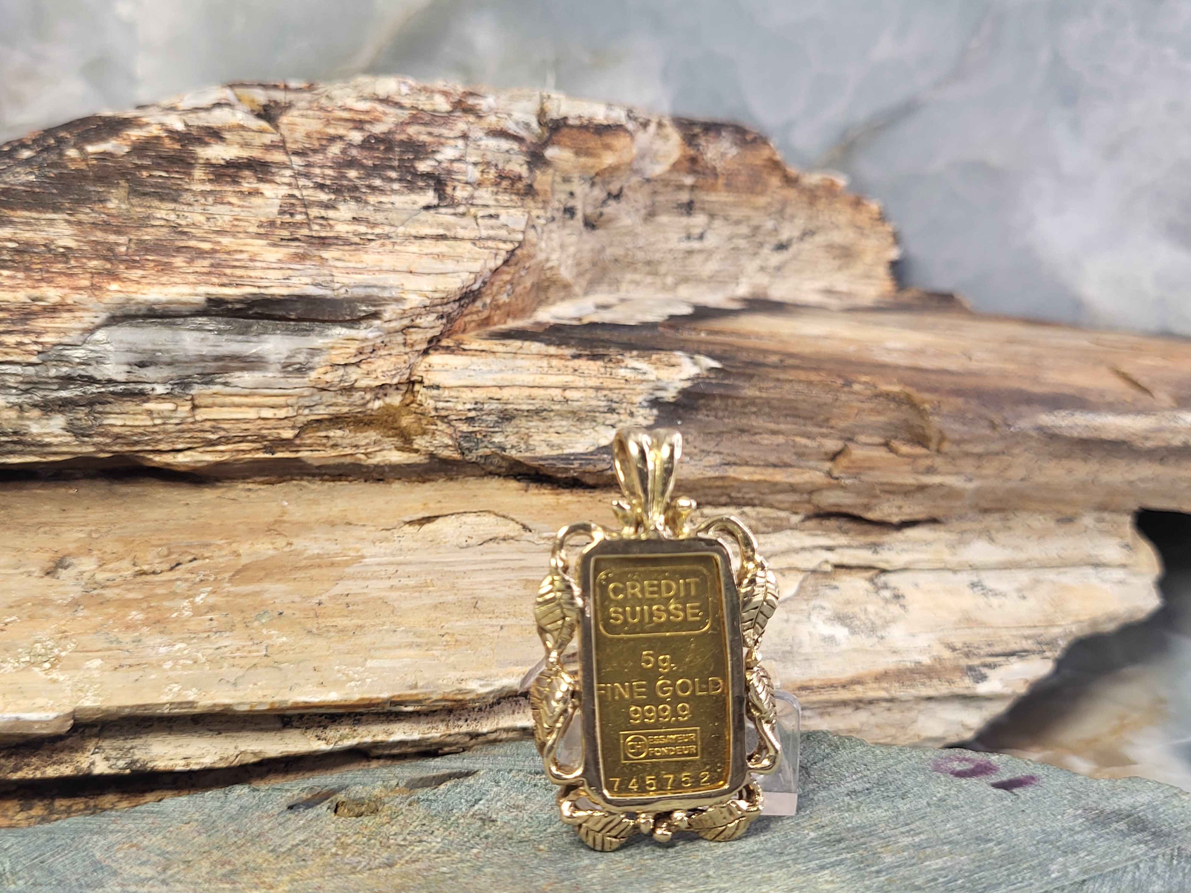 #VintageGold #CreditSuissePendant #FineGold9999 #GoldBarJewelry #TimelessTreasure #LovedAndWorn #GoldWithCharacter #PreciousMetalStyle #InvestmentJewelry #BidFairFinds
