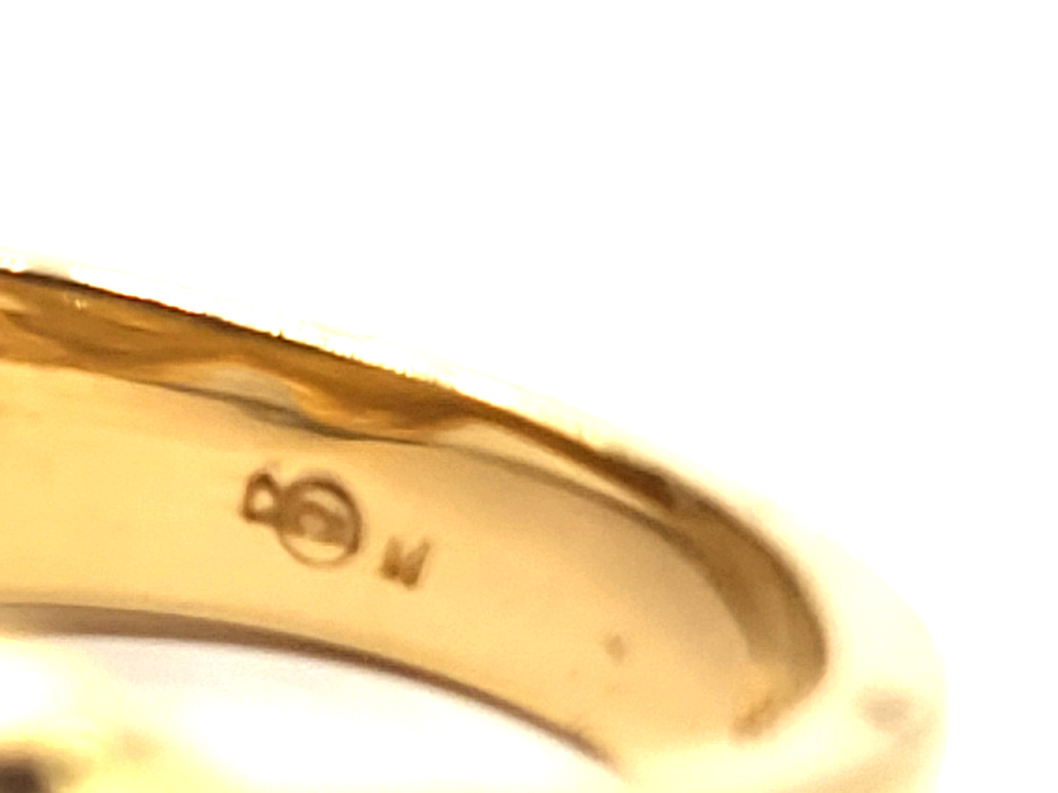 This 14 karat yellow gold ring is set with .54 carats total weight round, brilliant-cut, H color, SI2-I1 clarity, earth-mined diamonds. The "kiss" in the center of the channel-set diamonds is like a strong embrace the bonds each side together, as one. The ring is approximately 9.75mm at the top and tapers to approximately 3.8mm shank. It is US size 6.5 and can be sized for an additional charge. Please contact Bidfair Fine Jewelry for sizing details. Admin: G11241/1grt