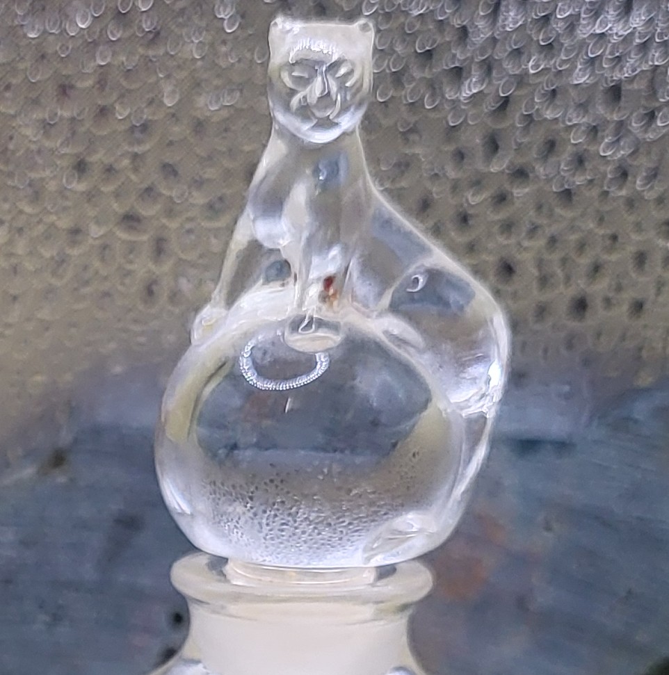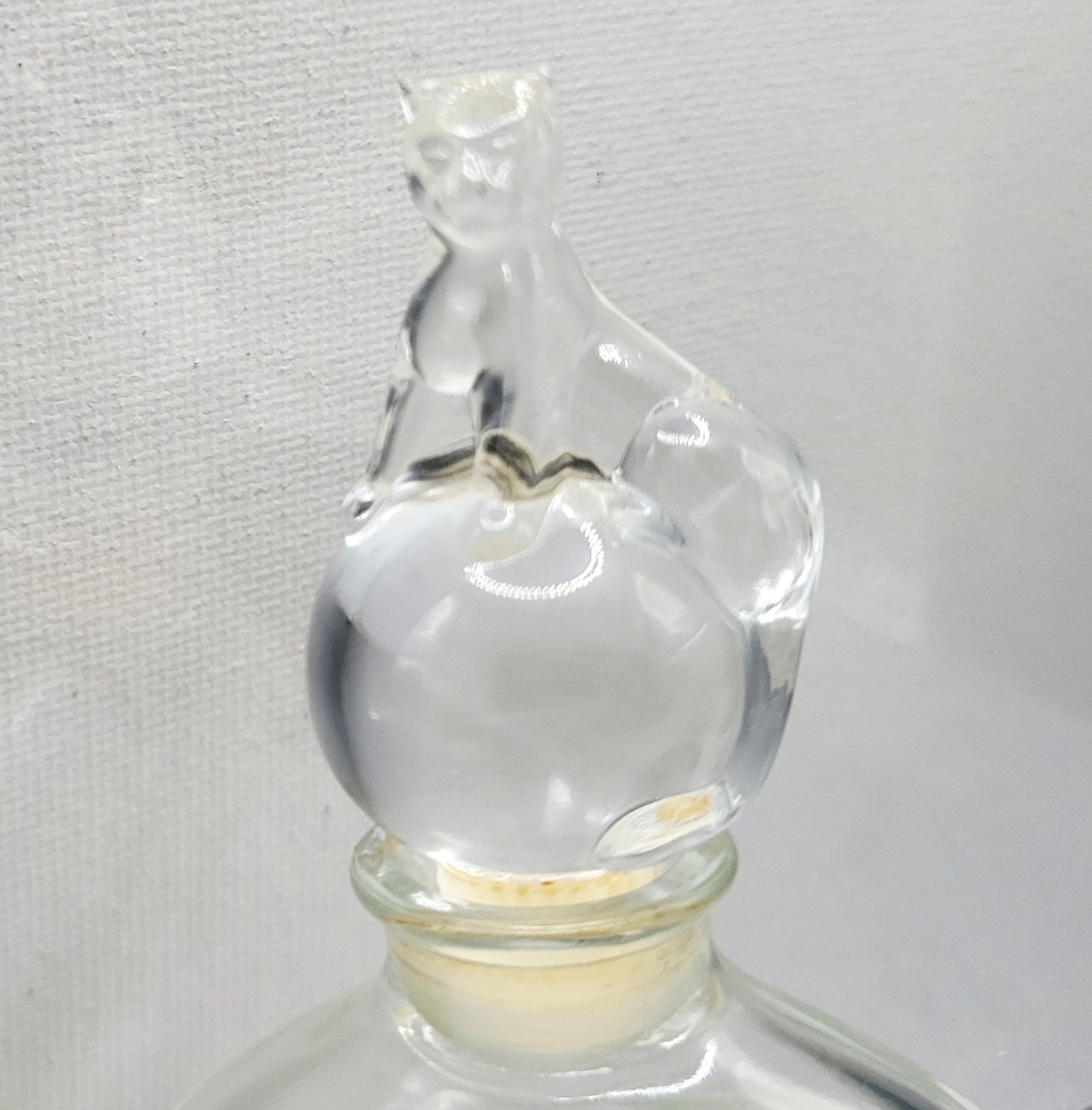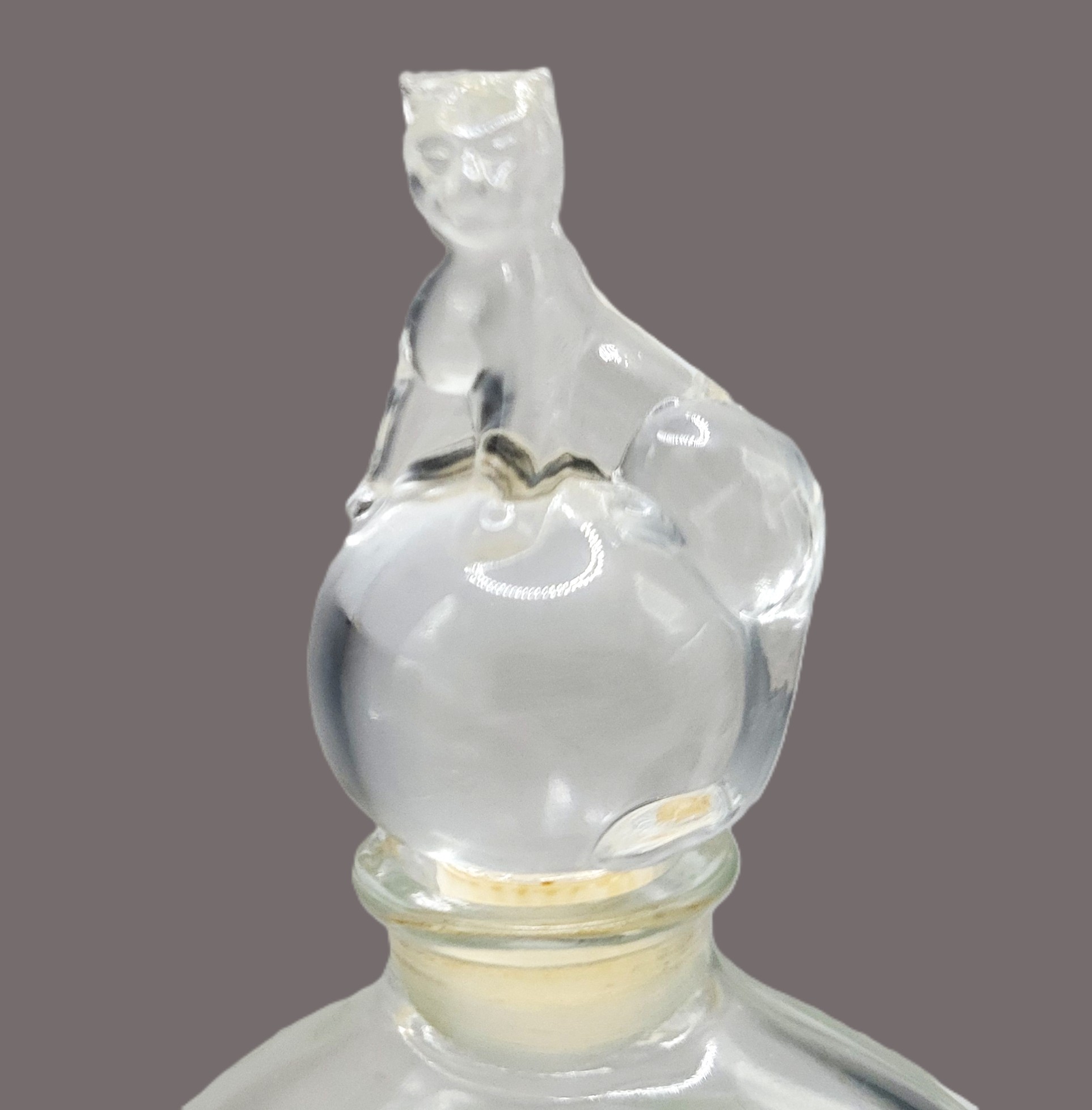 This is an authentic empty decanter-style bottle that once held mL of Eau de Toilette Pantere’ by Cartier of France. The glass decanter-style bottle is desired by collectors for the iconic Cartier panther on the stopper top, which is in excellent condition. The date code on the bottom indicates this bottle was made in 2000 or 2010. The original owner states it was purchased approximately in 2002. AdminCode: CAJ1/ne