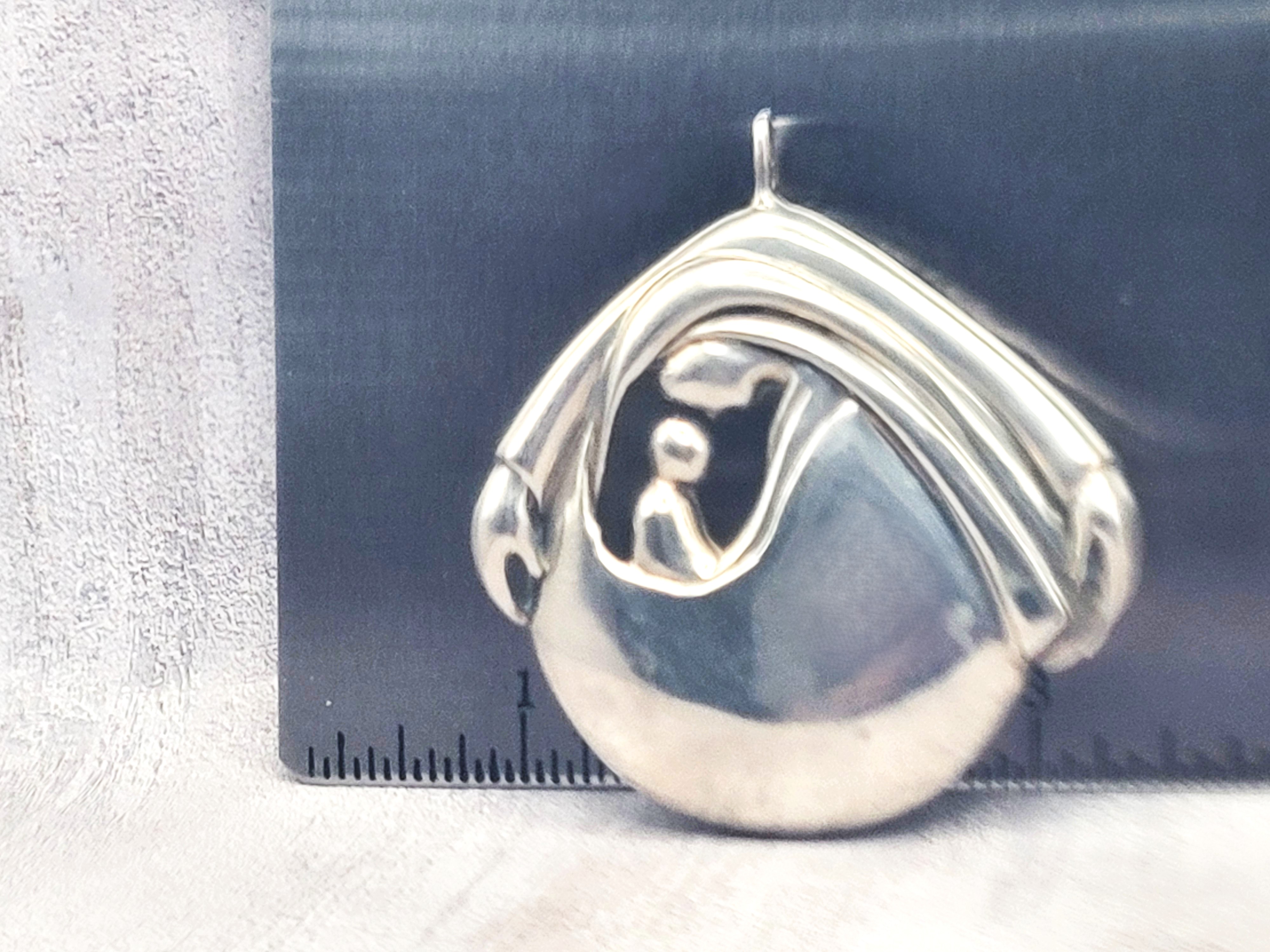 This is just in time for the 30th anniversary of the Sterling silver ornament called "Circle of Hope" by renowned artist, Susan Gorman. Released in 1996 as a limited edition item, this piece is marked as 990. Unknown how many were made in this collection. This ornament measures approximately 3.5" in diameter and has a ring affixed at the top that has an approximate 3.80mm opening for a ribbon or hook or chain. This sterling silver ornament is marked on a tag on the back with "925" the number of the item 990, the year "1996" and the Susan Gorman hallmark ". Admin: Khh/29.brr