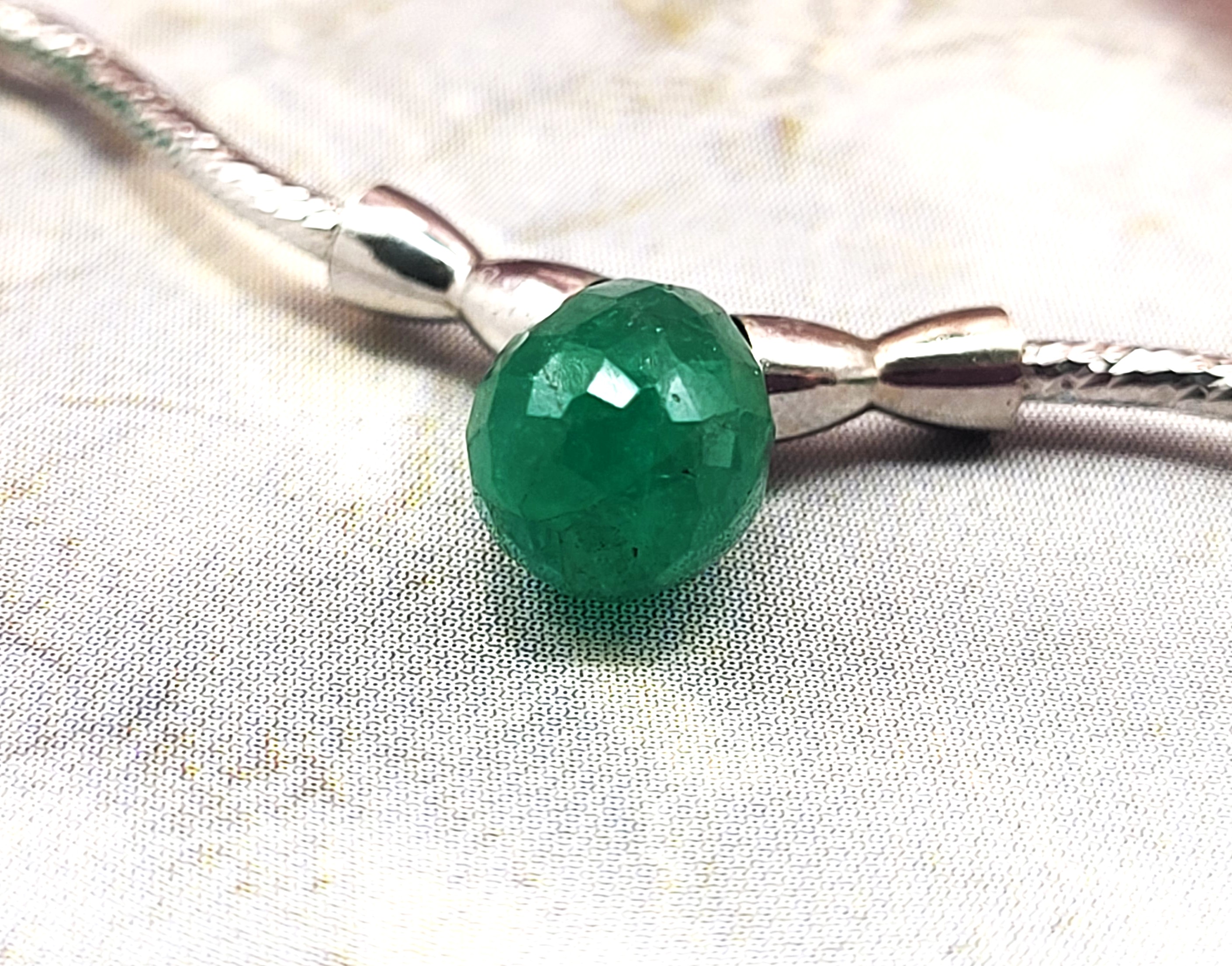 Briolette-Cut Emeralds & Delicate White Gold Ribbon Necklace