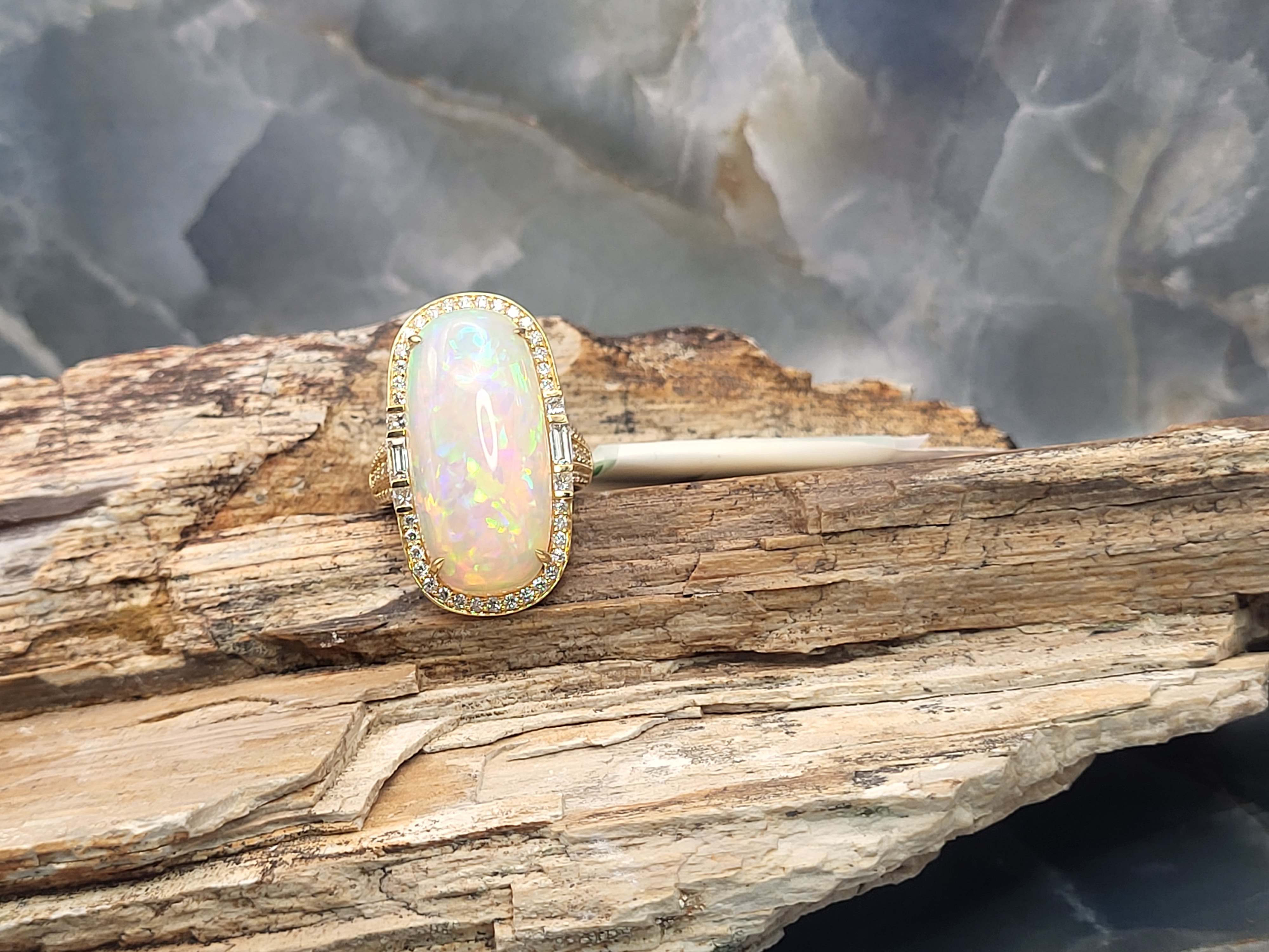 #WeloOpal #CabochonGlow #DiamondHalo #CelestialJewelry #LuxuryStatementRing #OpalQueen #ThreeRowDiamonds #CosmicElegance