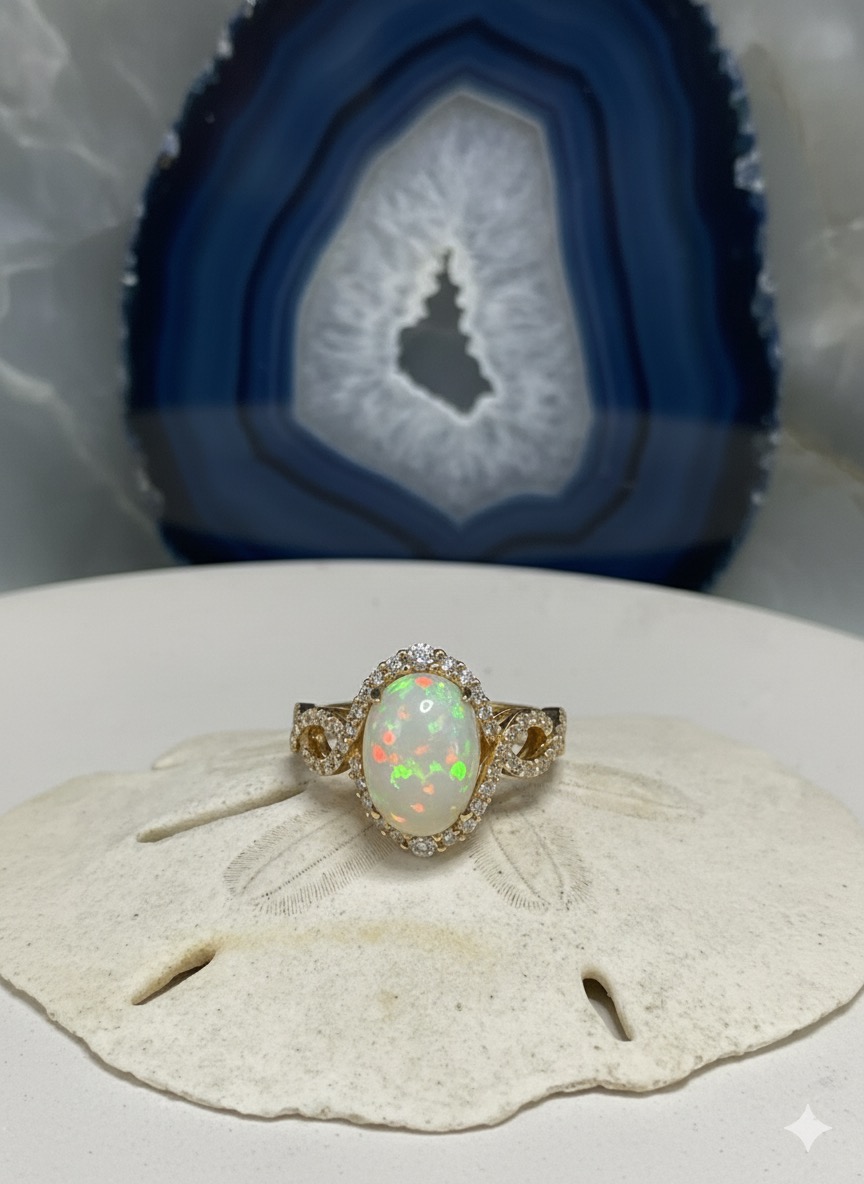 #Auction13 #OrionOpal #EthiopianOpal #DiamondHalo #LuxuryRing #FineJewelry #18KGold #BidFairTreasures #CollectorGem #SwirlDesign #WeloOpal #QueenofGemstones #OctoberBirthstone