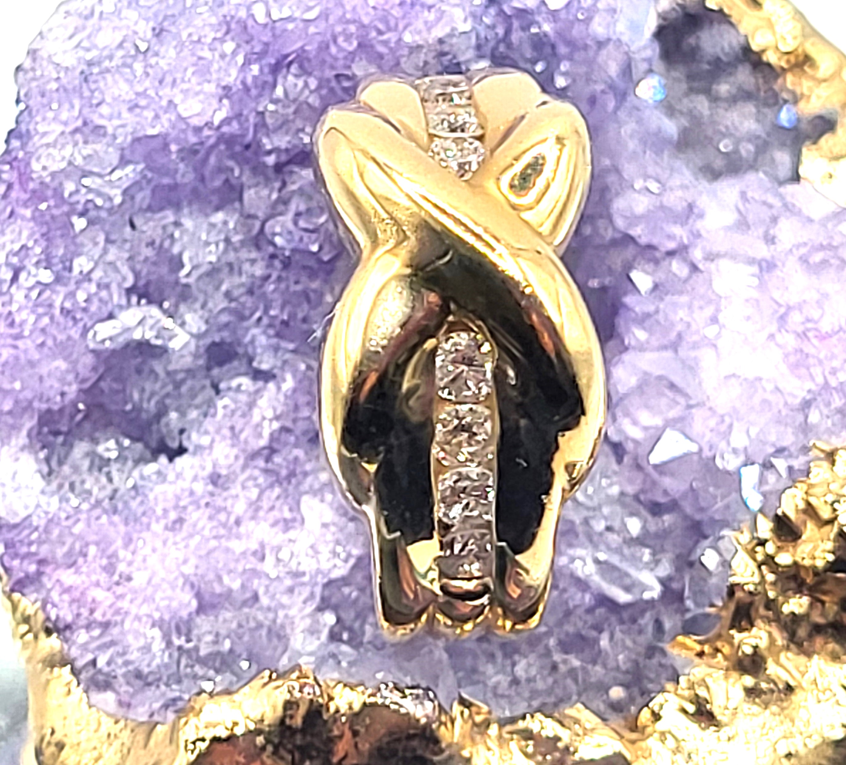 This 14 karat yellow gold ring is set with .54 carats total weight round, brilliant-cut, H color, SI2-I1 clarity, earth-mined diamonds. The "kiss" in the center of the channel-set diamonds is like a strong embrace the bonds each side together, as one. The ring is approximately 9.75mm at the top and tapers to approximately 3.8mm shank. It is US size 6.5 and can be sized for an additional charge. Please contact Bidfair Fine Jewelry for sizing details. Admin: G11241/1grt