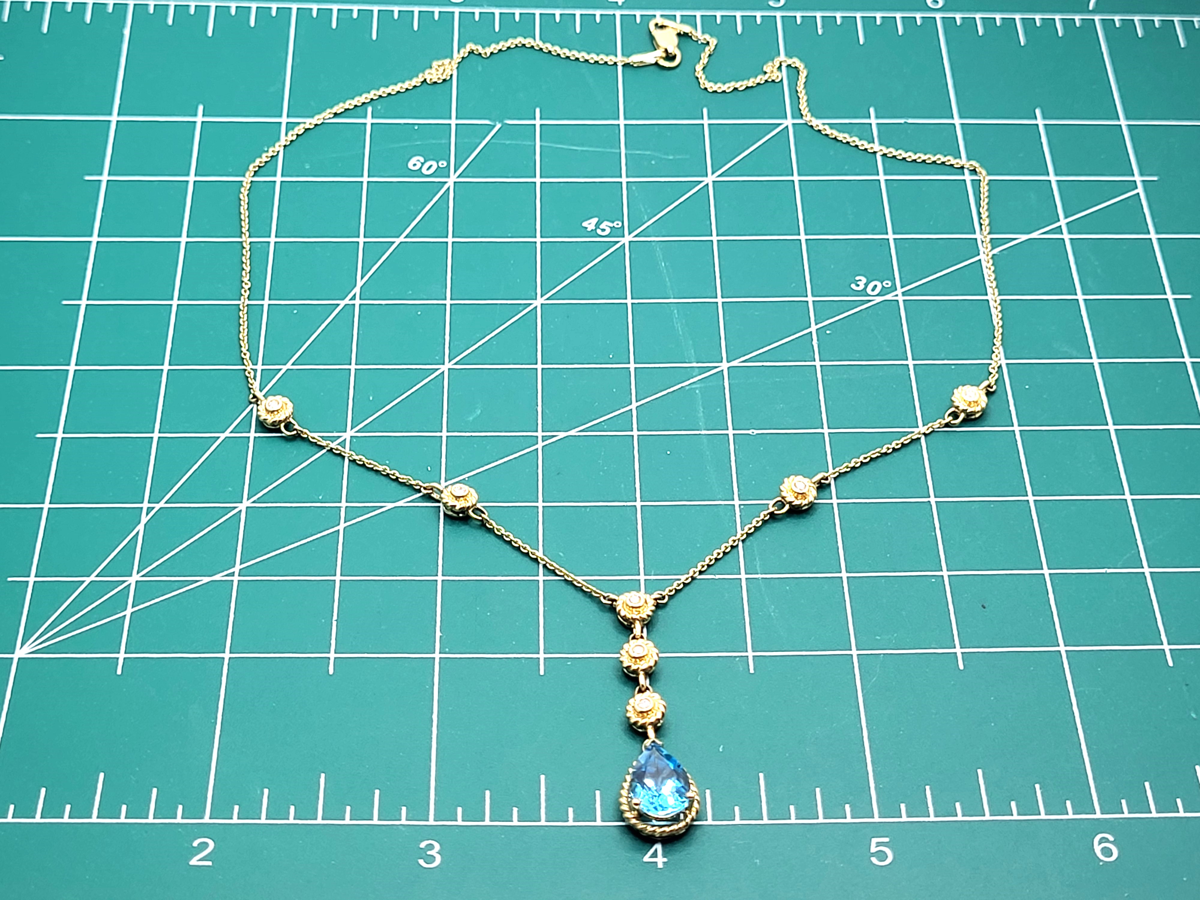 Swiss Blue Topaz and Diamond Lavalier Drop Necklace