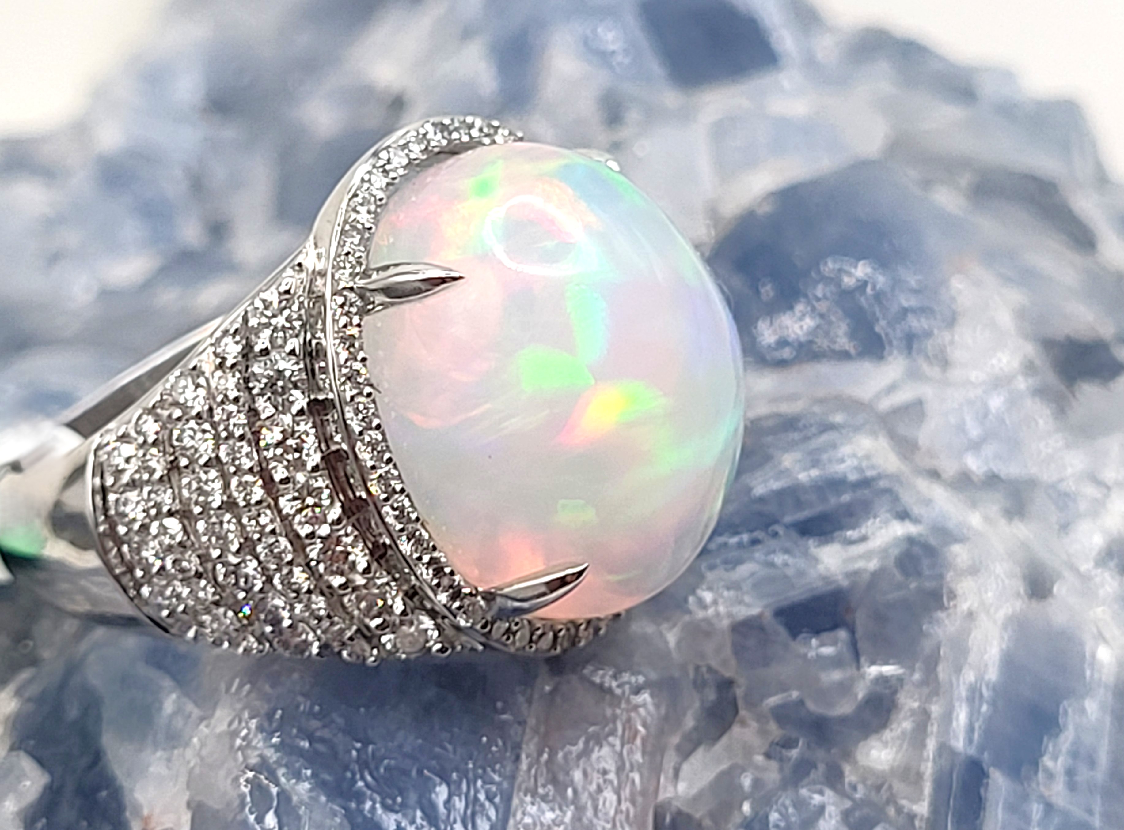 #Auction13 #OrionOpal #EthiopianOpal #DiamondHalo #LuxuryRing #FineJewelry #18KWhiteGold #BidFairTreasures #CelestialGem #CollectorElegance #WeloOpal