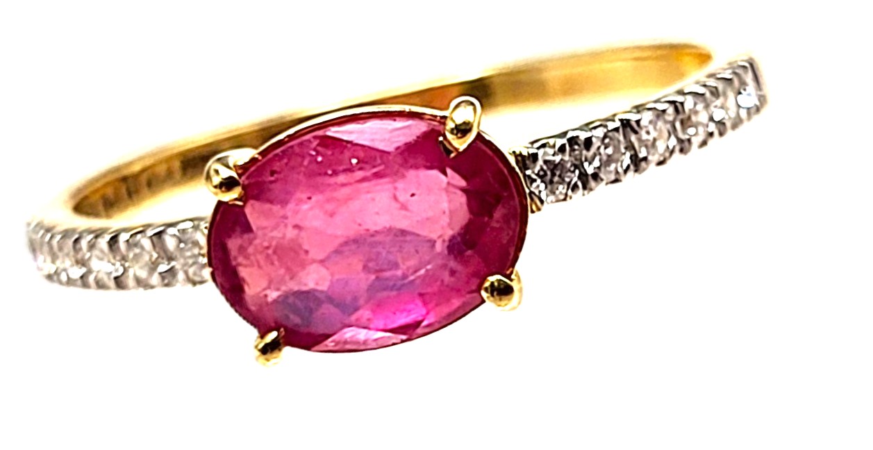 This 14 karat yellow gold ring showcases a 1.20 carat oval, alluring, pink sapphire that is prong-set on sleek diamond shoulders that slope down to an approximate 1.25mm ring shank. The ring is US size 6 and the gold quality and gem weights are inside the shank. See below for sizing details and other important information. Admin AN994/4-1gil